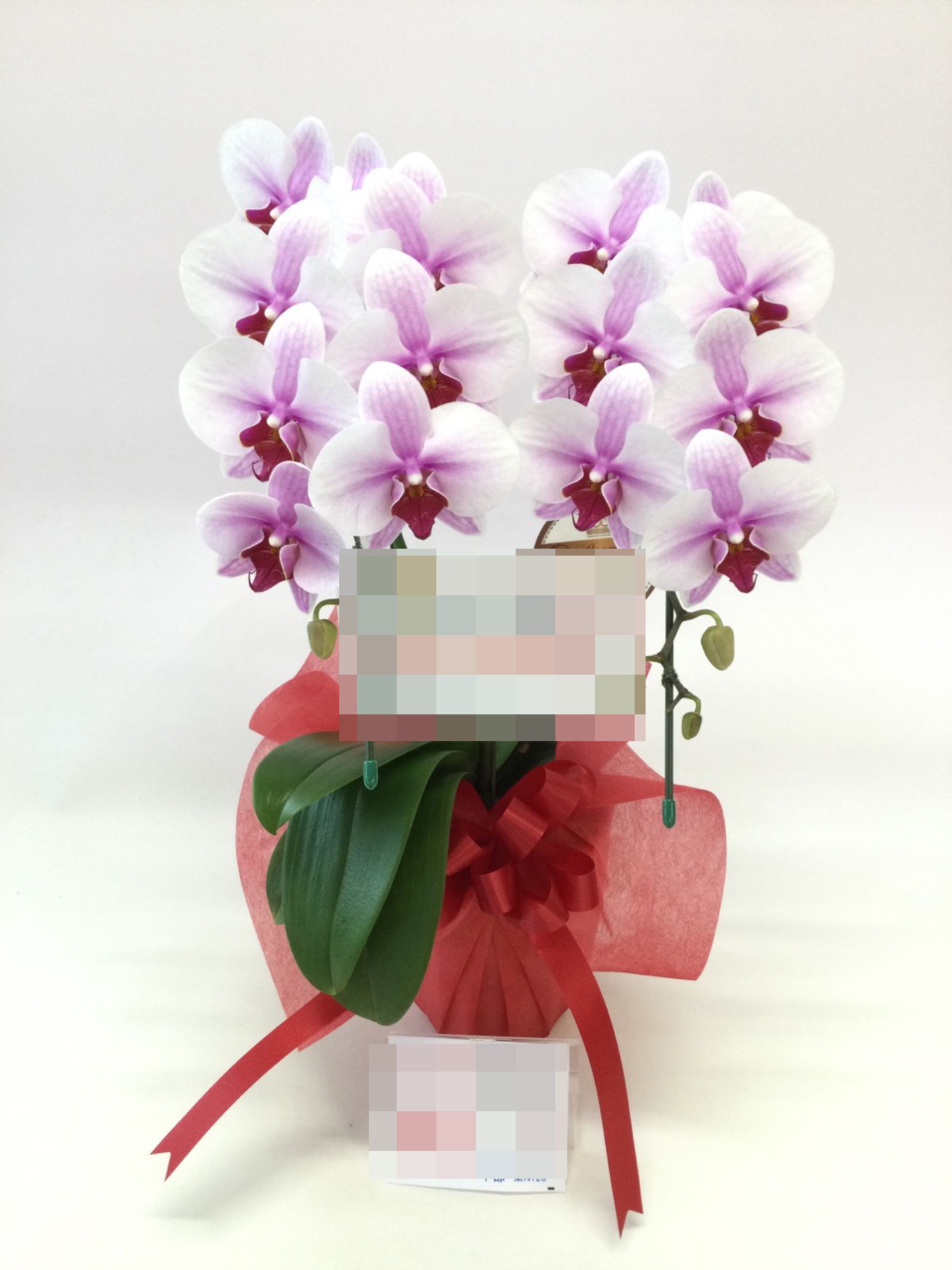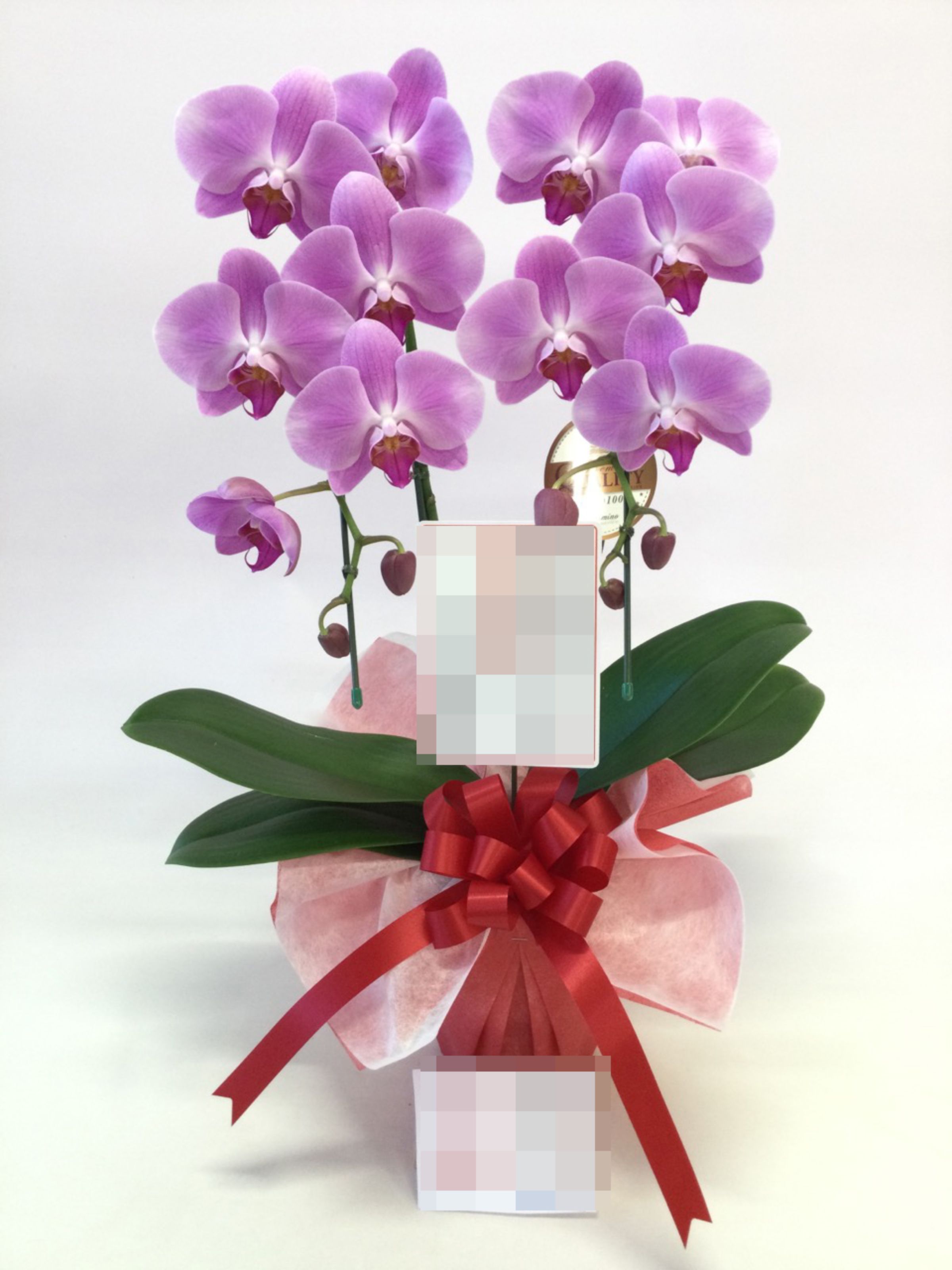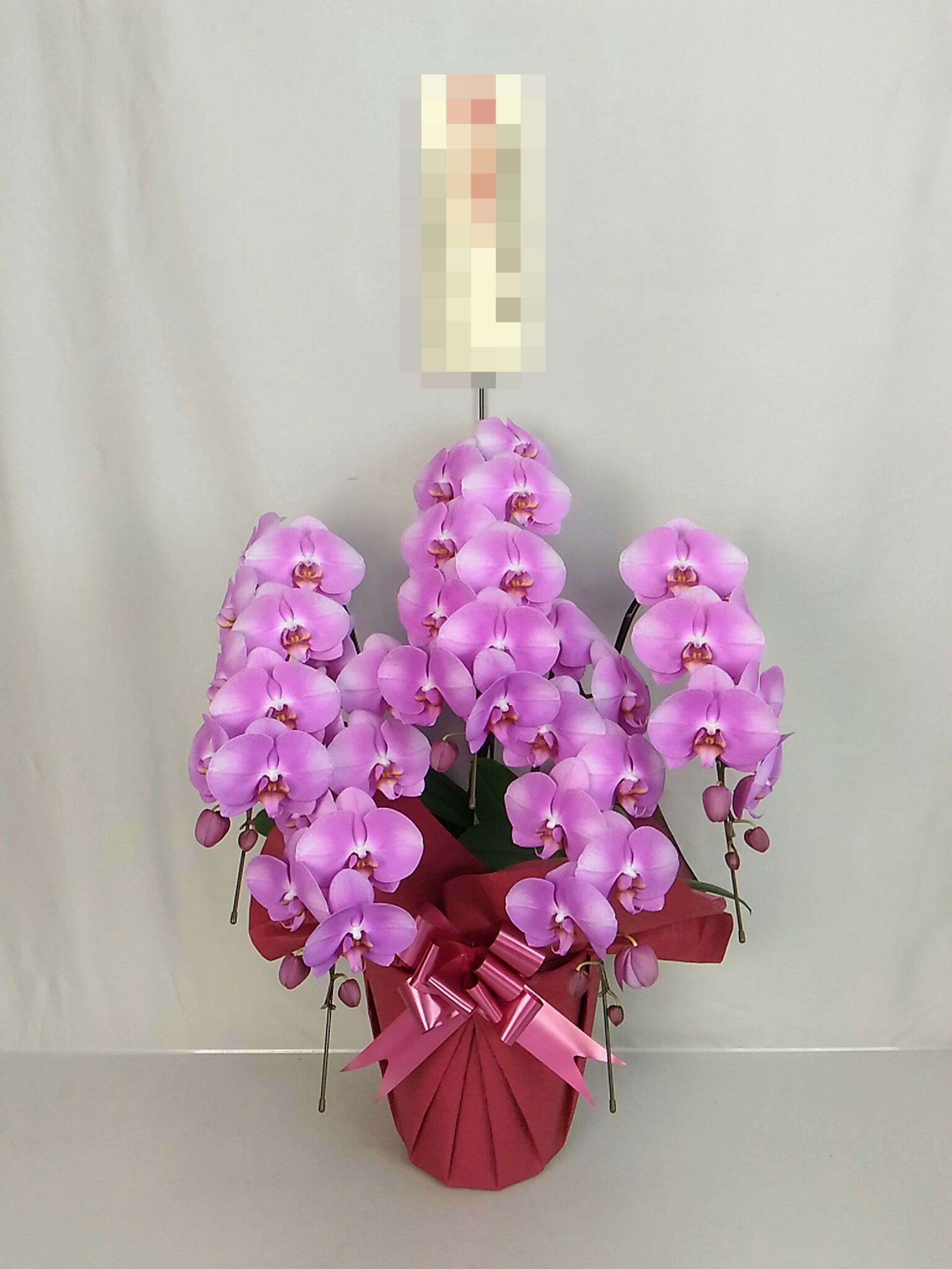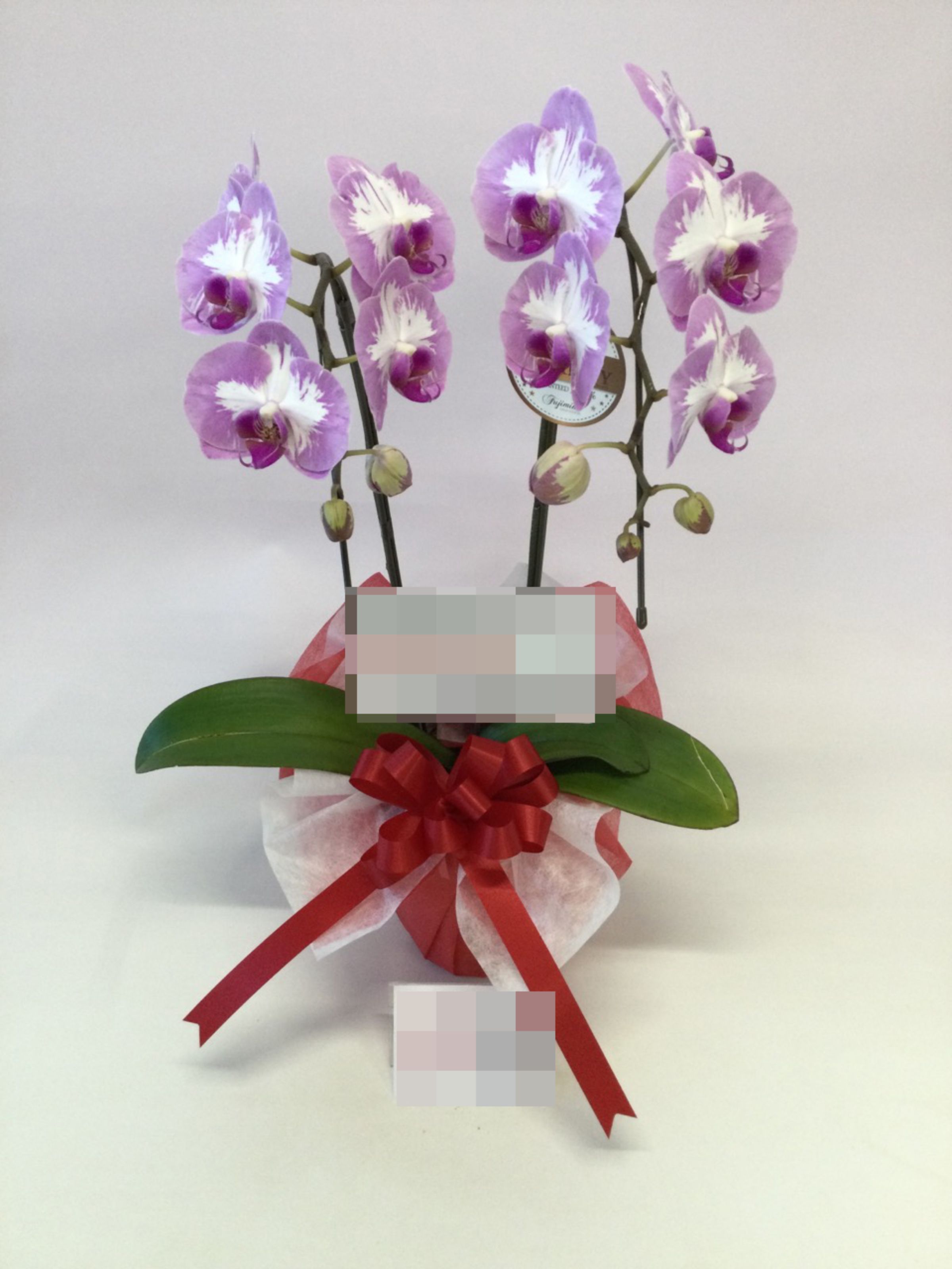 胡蝶蘭の実際にお届けした写真です。花秘書では発送前に写真をメールで送信致しますので安心して大切な顧客や取引様へのギフトにご利用頂けます。