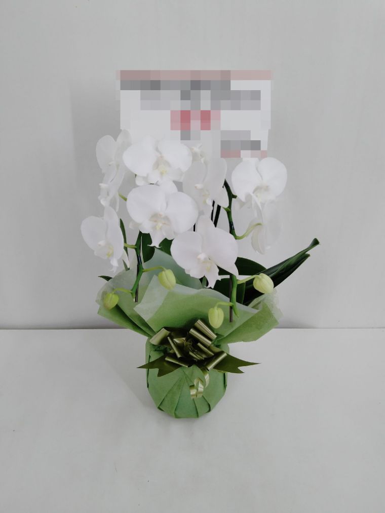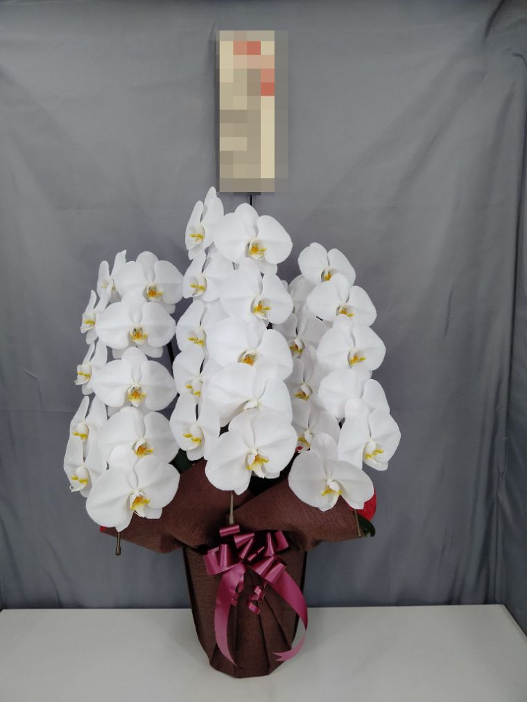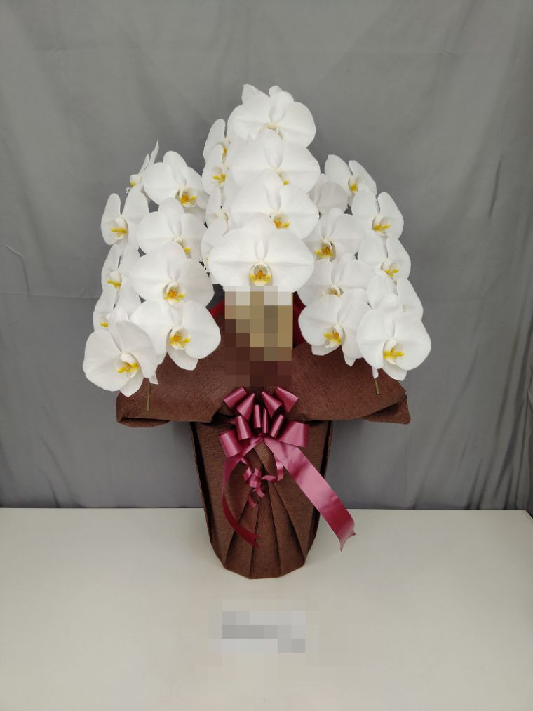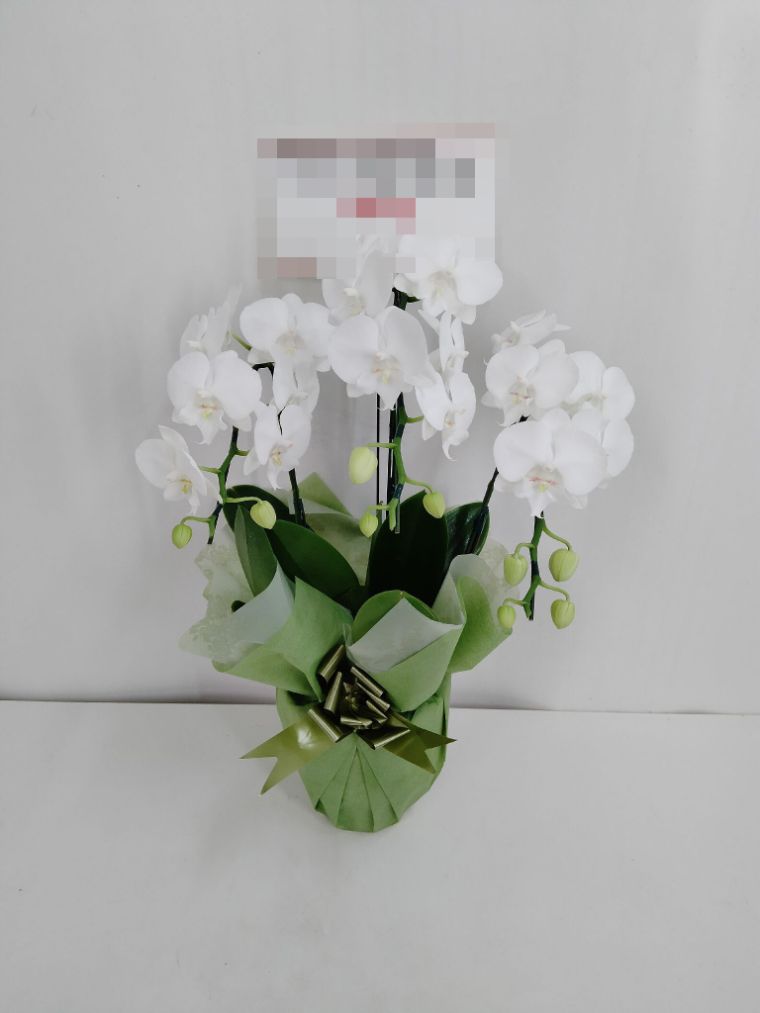 胡蝶蘭の実際にお届けした写真です。花秘書では発送前に写真をメールで送信致しますので安心して大切な顧客や取引様へのギフトにご利用頂けます。