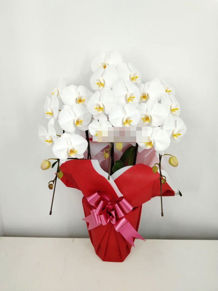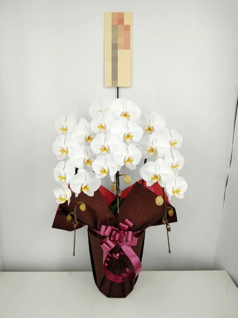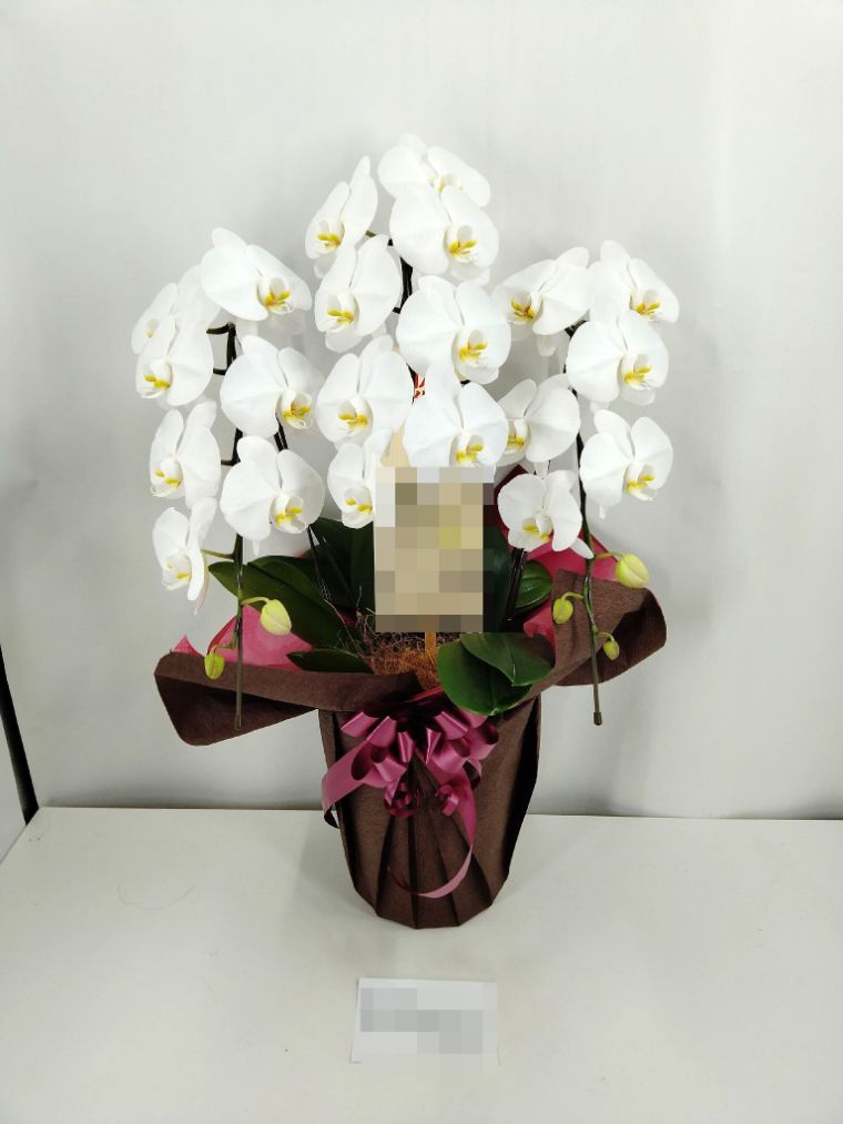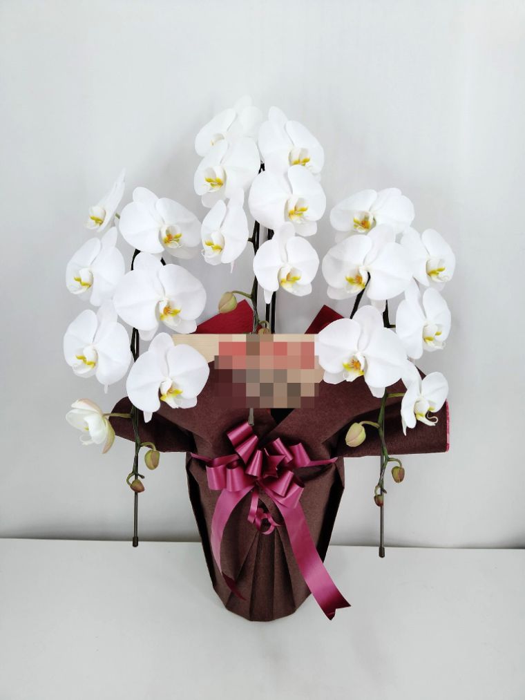 胡蝶蘭の実際にお届けした写真です。花秘書では発送前に写真をメールで送信致しますので安心して大切な顧客や取引様へのギフトにご利用頂けます。