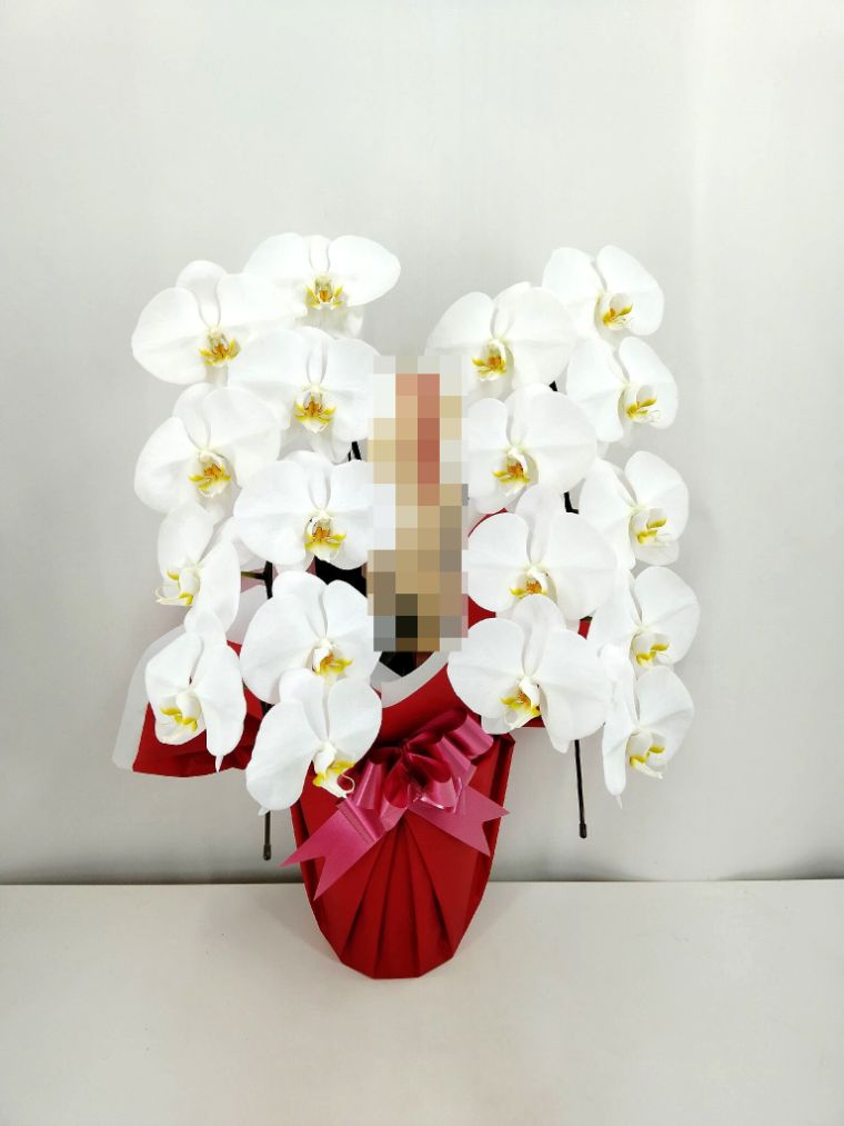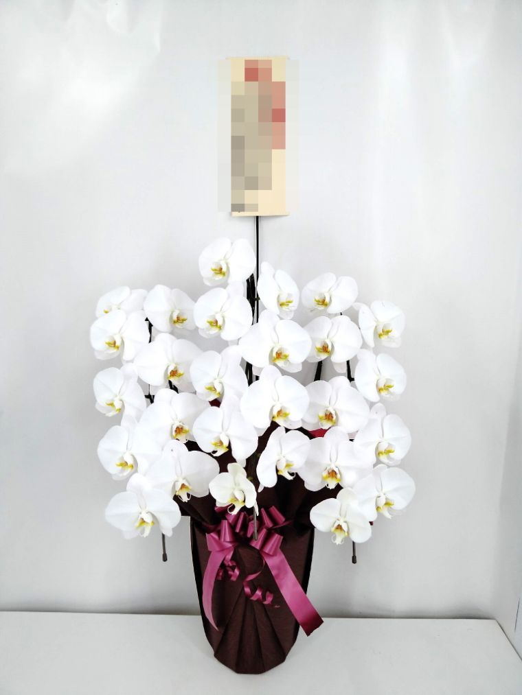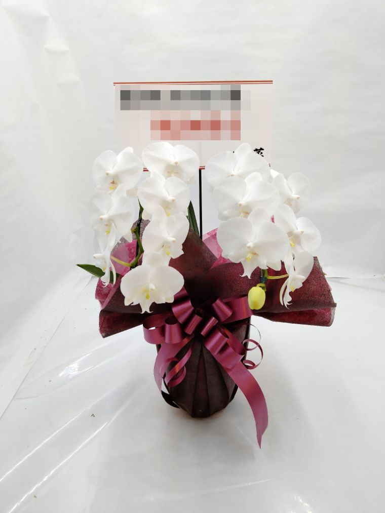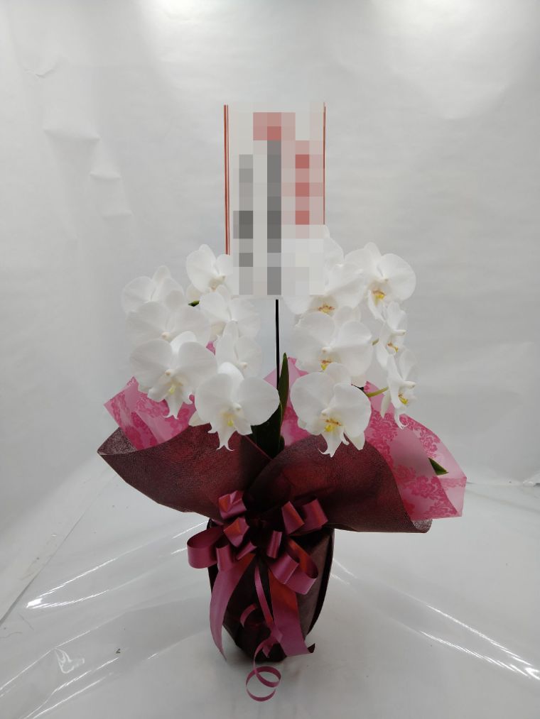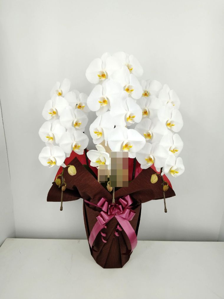 胡蝶蘭の実際にお届けした写真です。花秘書では発送前に写真をメールで送信致しますので安心して大切な顧客や取引様へのギフトにご利用頂けます。