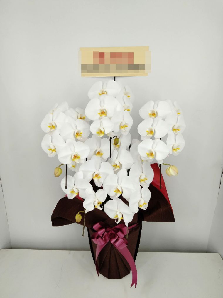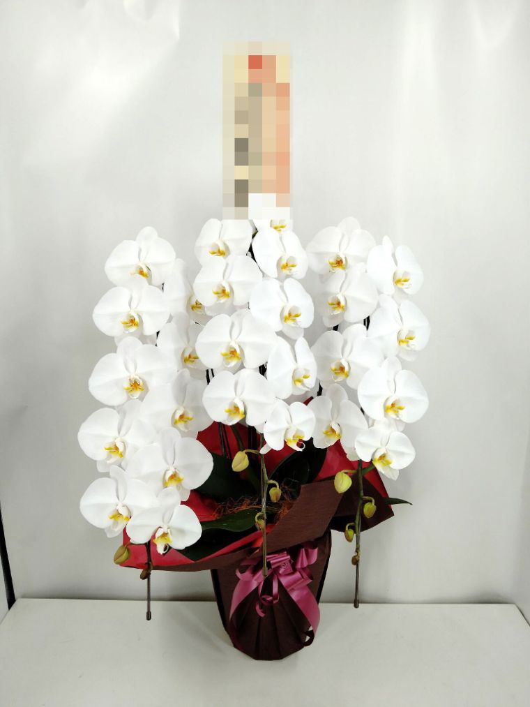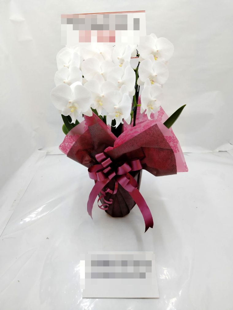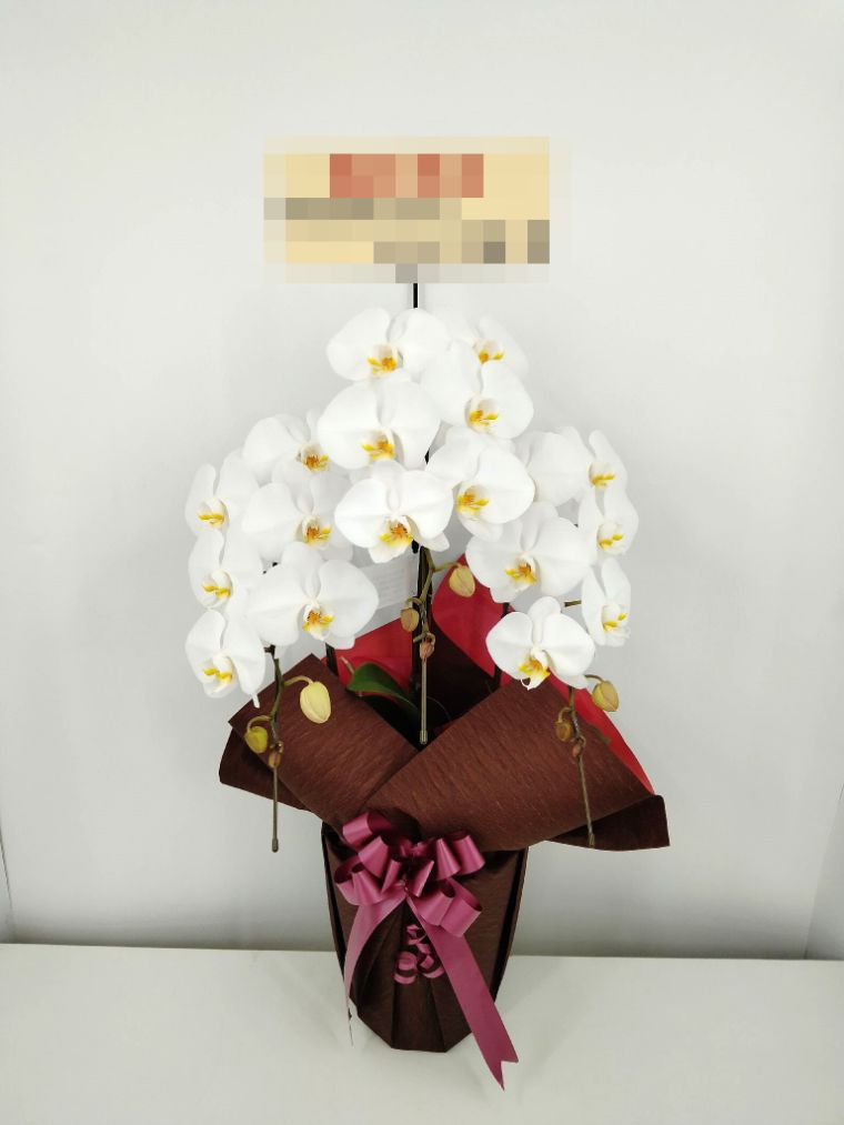 胡蝶蘭の実際にお届けした写真です。花秘書では発送前に写真をメールで送信致しますので安心して大切な顧客や取引様へのギフトにご利用頂けます。