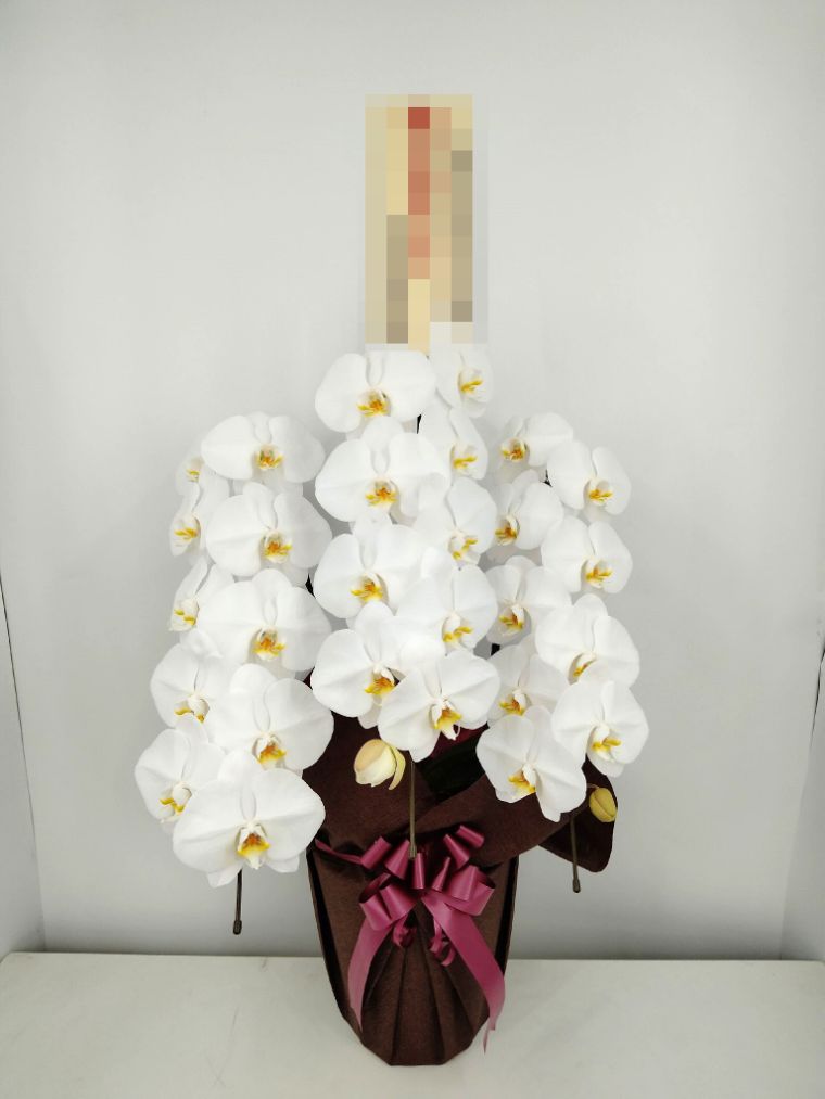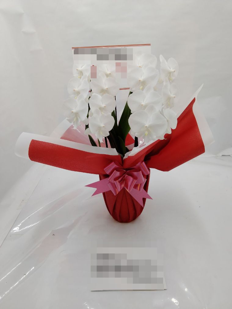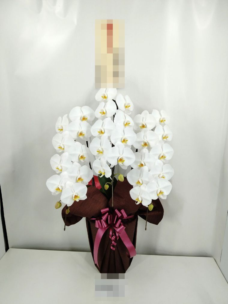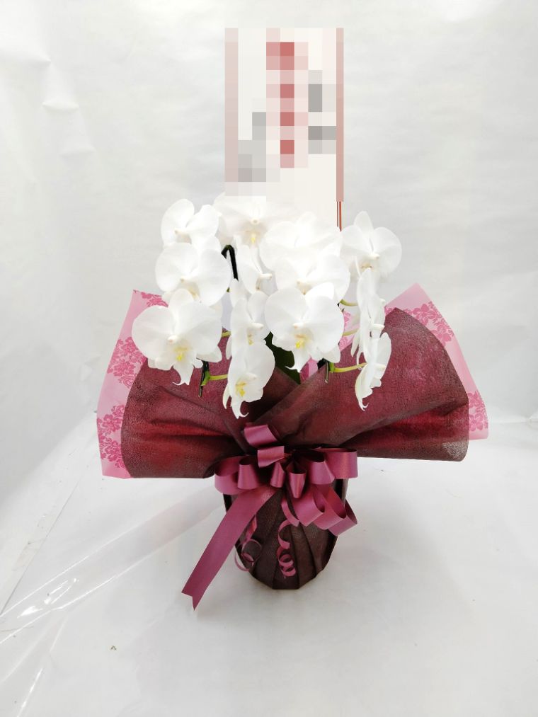 胡蝶蘭の実際にお届けした写真です。花秘書では発送前に写真をメールで送信致しますので安心して大切な顧客や取引様へのギフトにご利用頂けます。