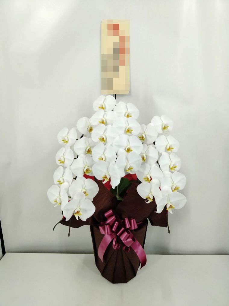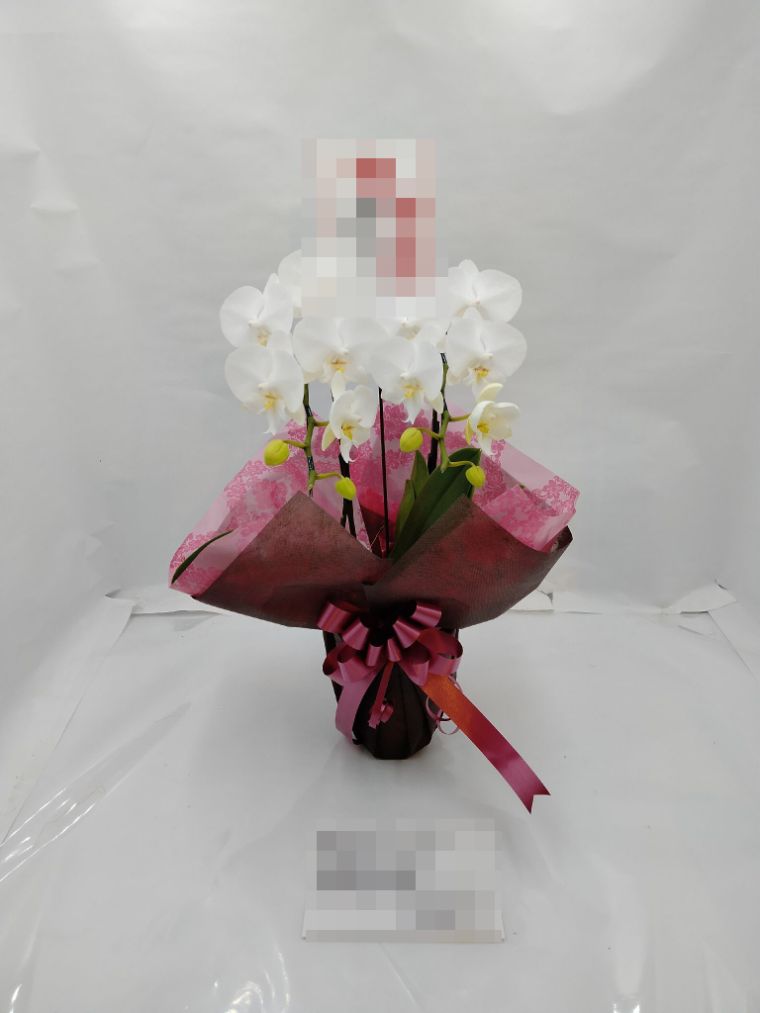 胡蝶蘭の実際にお届けした写真です。花秘書では発送前に写真をメールで送信致しますので安心して大切な顧客や取引様へのギフトにご利用頂けます。