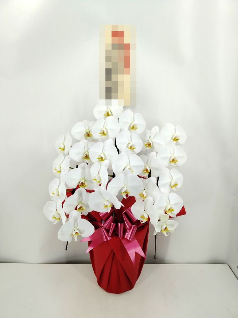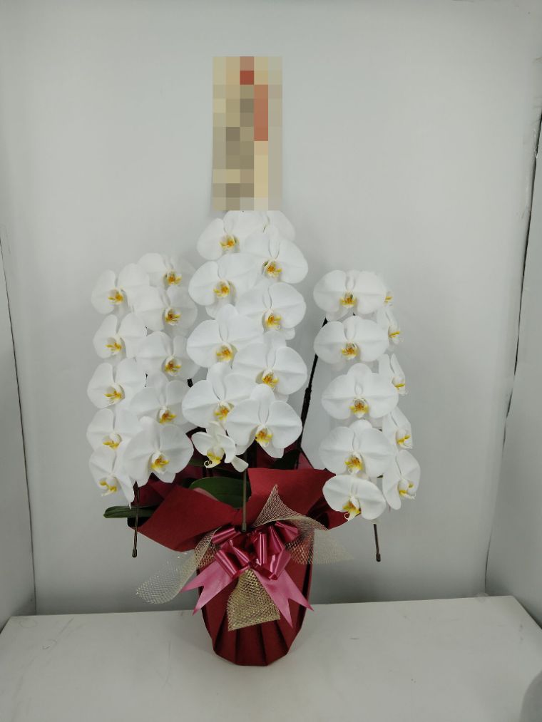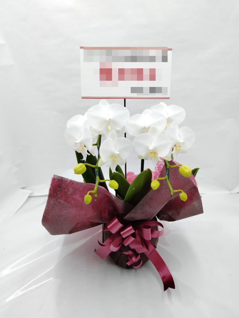 胡蝶蘭の実際にお届けした写真です。花秘書では発送前に写真をメールで送信致しますので安心して大切な顧客や取引様へのギフトにご利用頂けます。