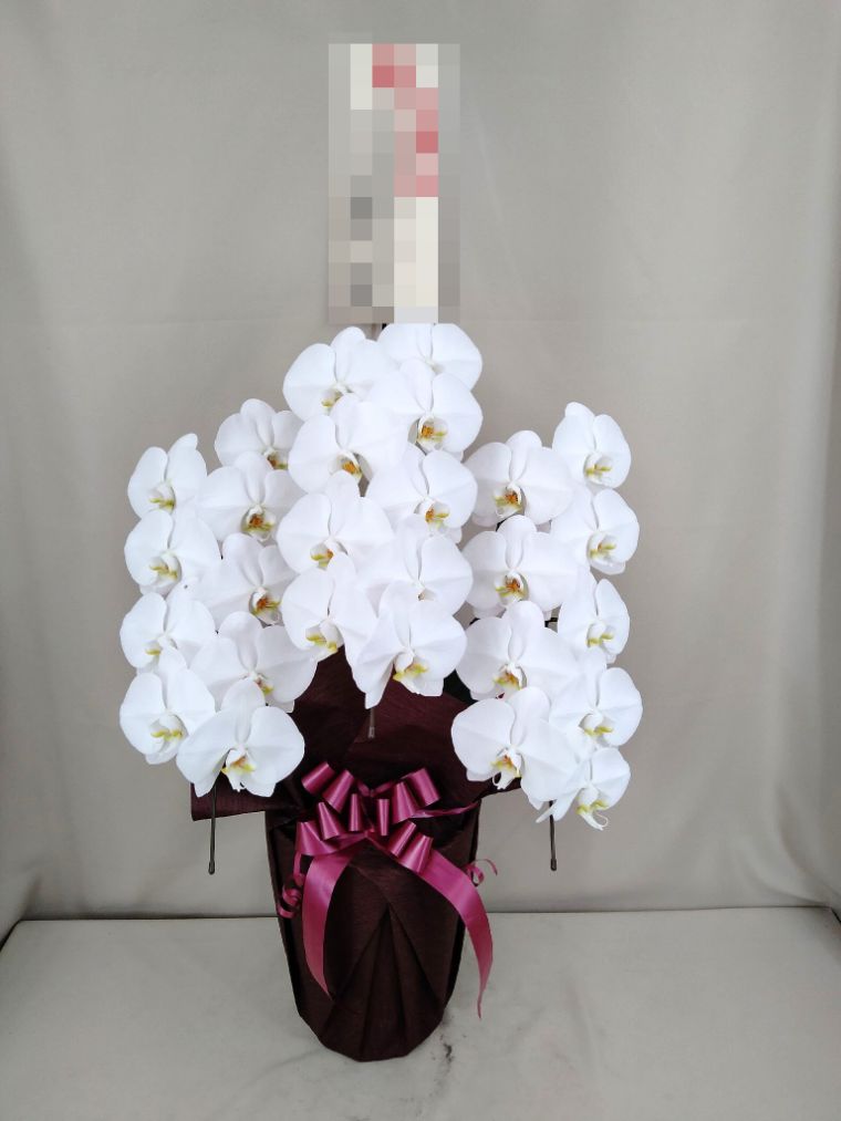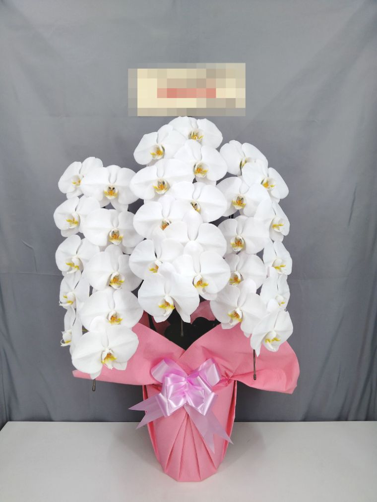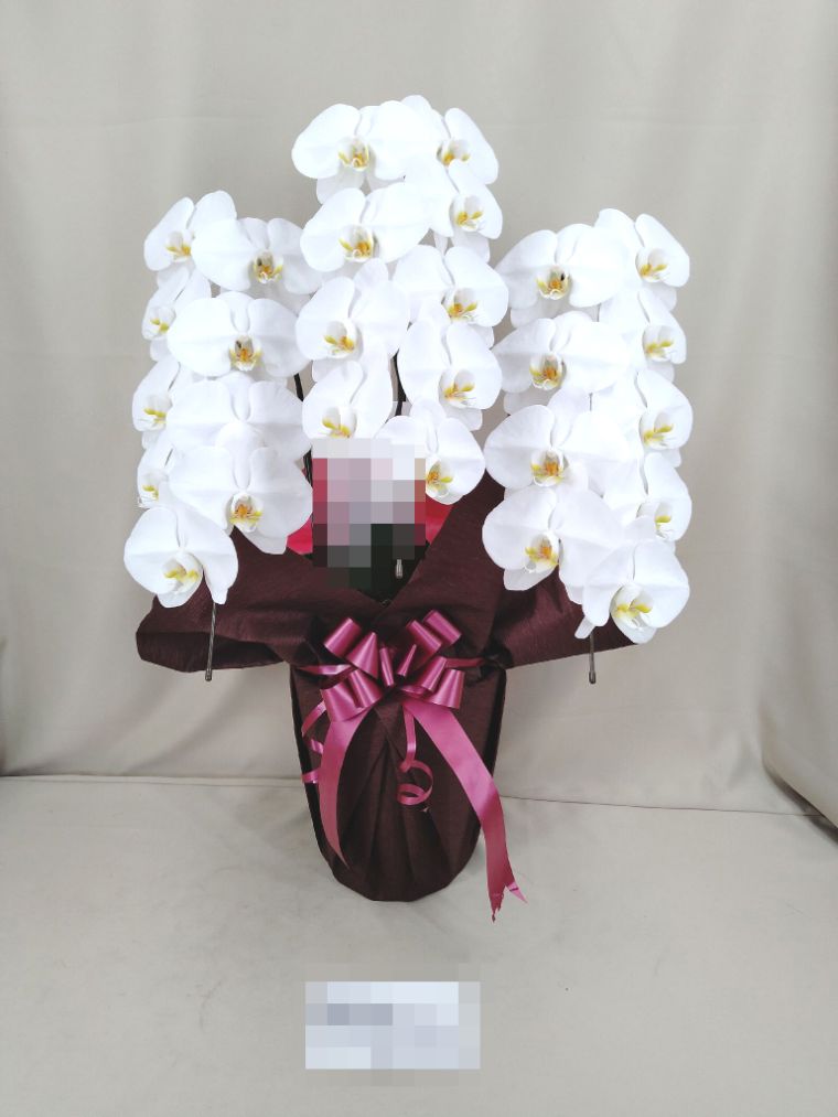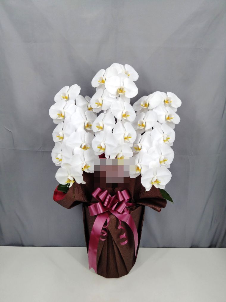 胡蝶蘭の実際にお届けした写真です。花秘書では発送前に写真をメールで送信致しますので安心して大切な顧客や取引様へのギフトにご利用頂けます。