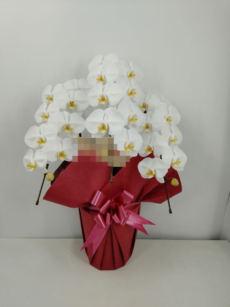 胡蝶蘭の実際にお届けした写真です。花秘書では発送前に写真をメールで送信致しますので安心して大切な顧客や取引様へのギフトにご利用頂けます。