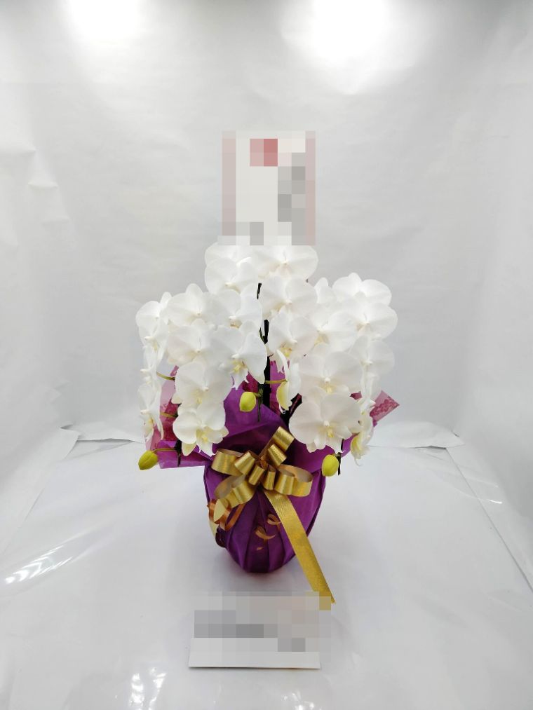 胡蝶蘭の実際にお届けした写真です。花秘書では発送前に写真をメールで送信致しますので安心して大切な顧客や取引様へのギフトにご利用頂けます。