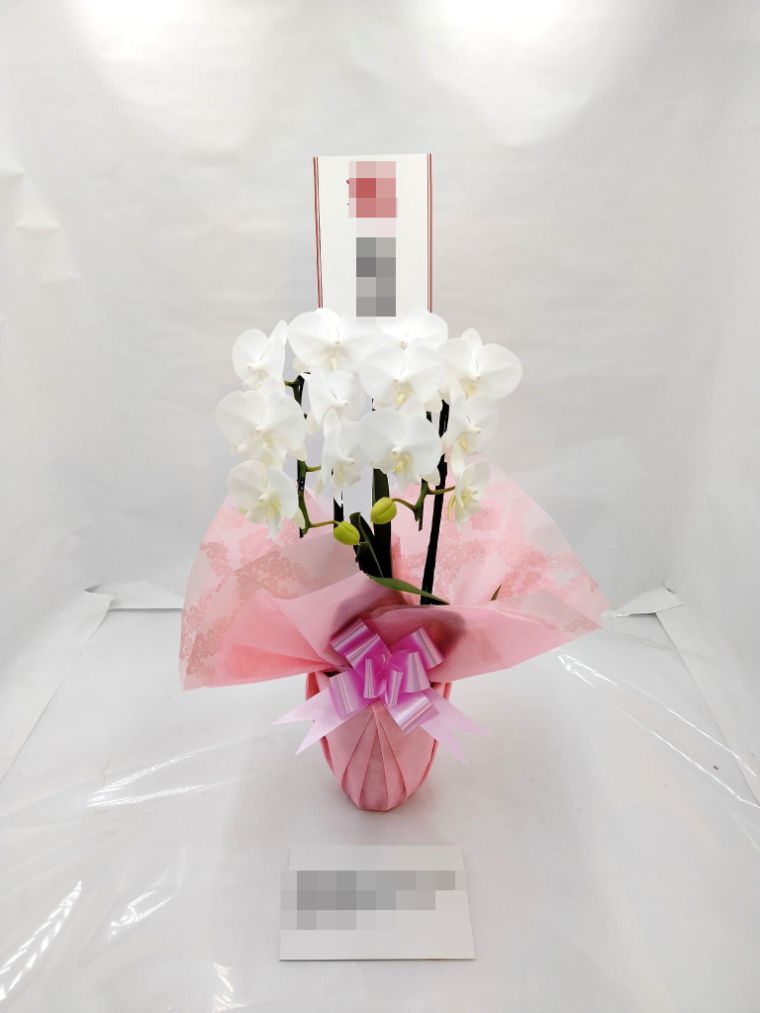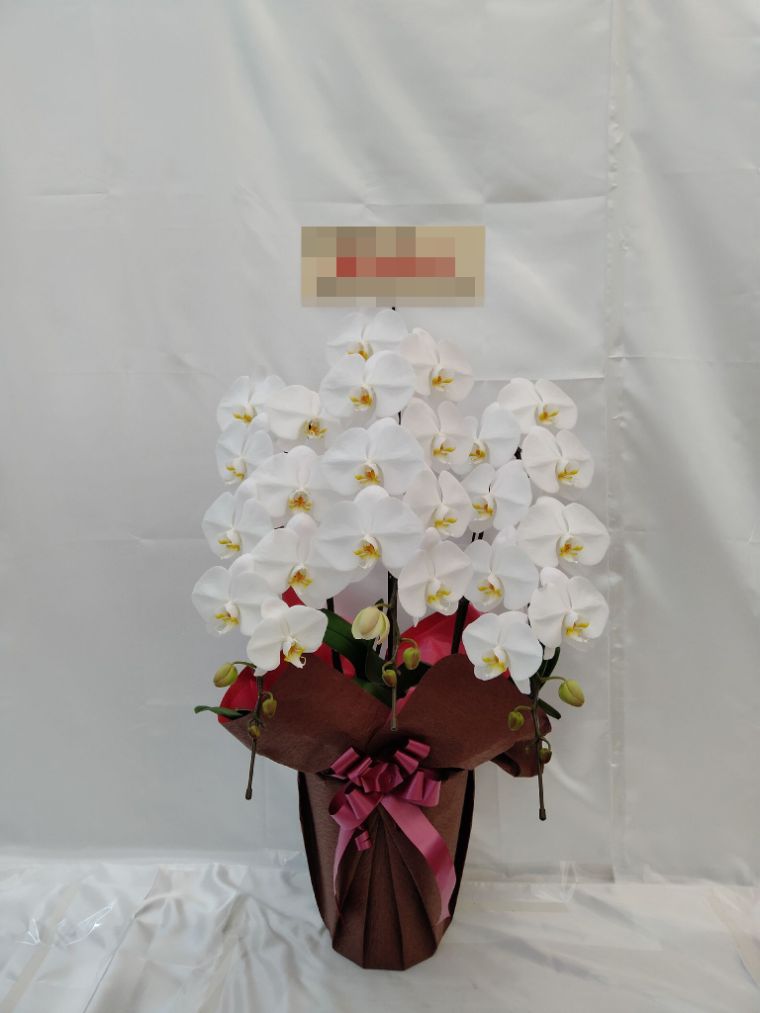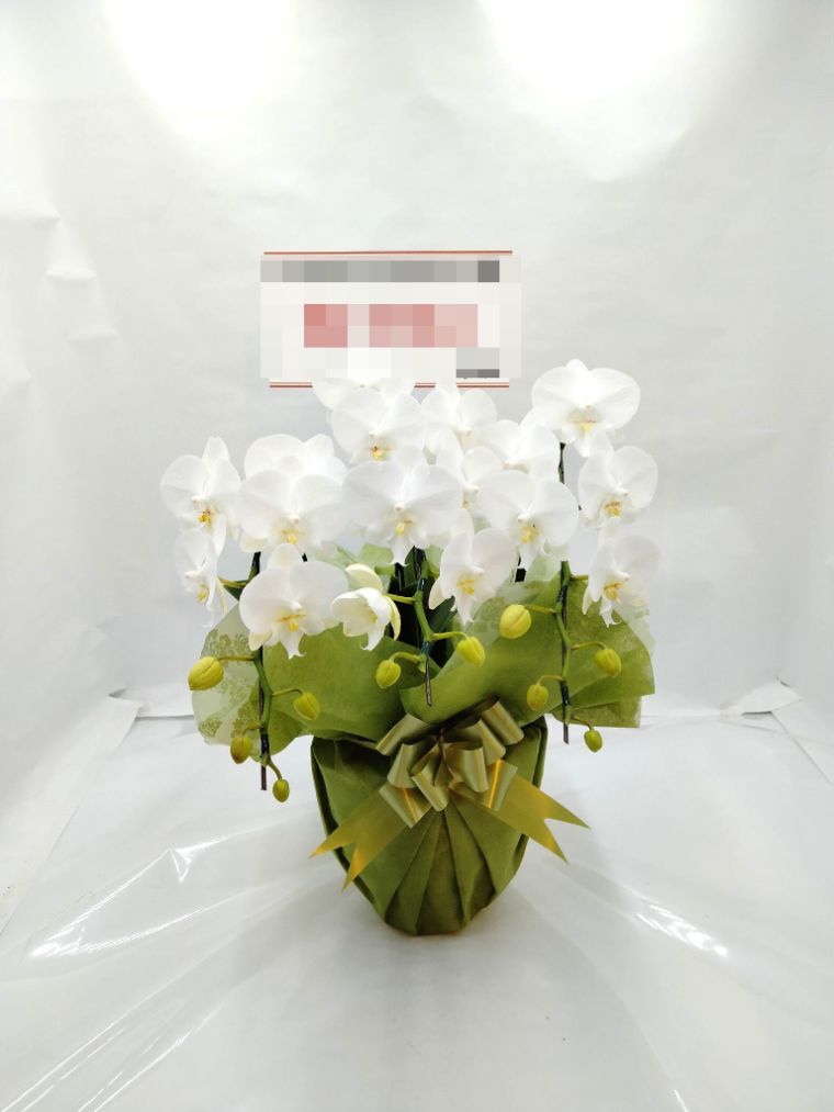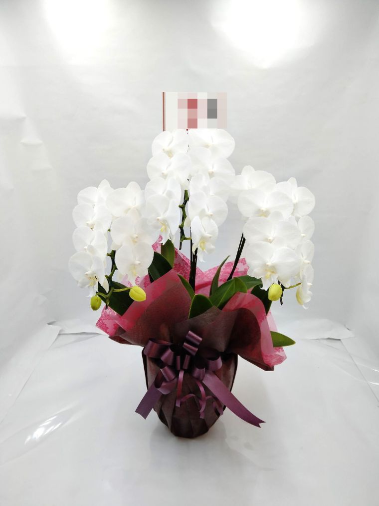 胡蝶蘭の実際にお届けした写真です。花秘書では発送前に写真をメールで送信致しますので安心して大切な顧客や取引様へのギフトにご利用頂けます。