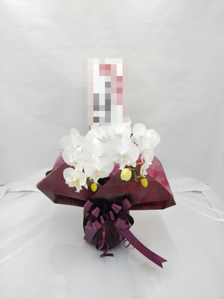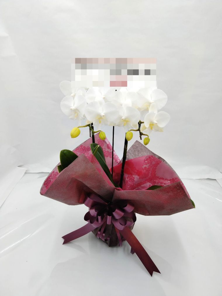 胡蝶蘭の実際にお届けした写真です。花秘書では発送前に写真をメールで送信致しますので安心して大切な顧客や取引様へのギフトにご利用頂けます。