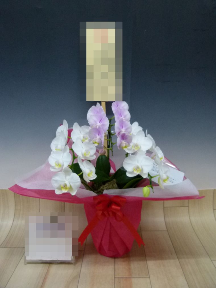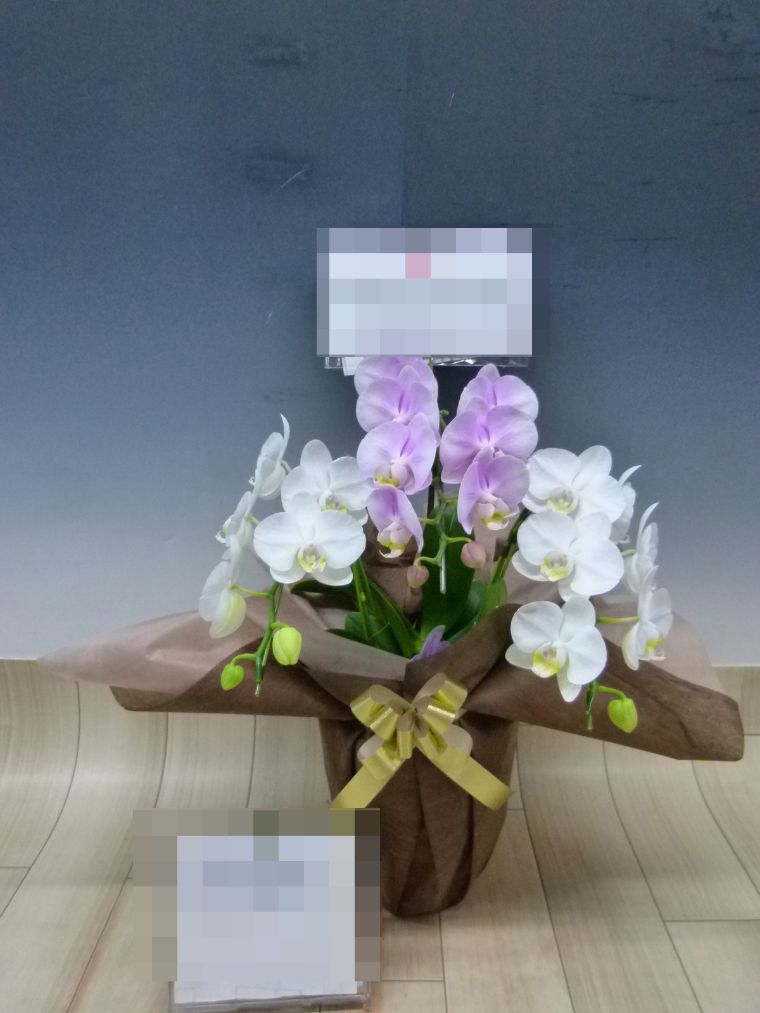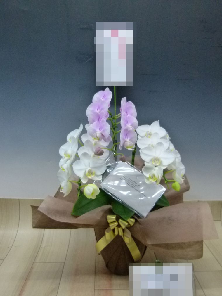 胡蝶蘭の実際にお届けした写真です。花秘書では発送前に写真をメールで送信致しますので安心して大切な顧客や取引様へのギフトにご利用頂けます。