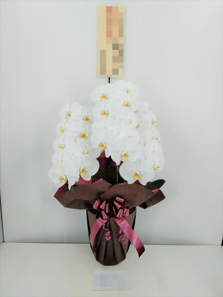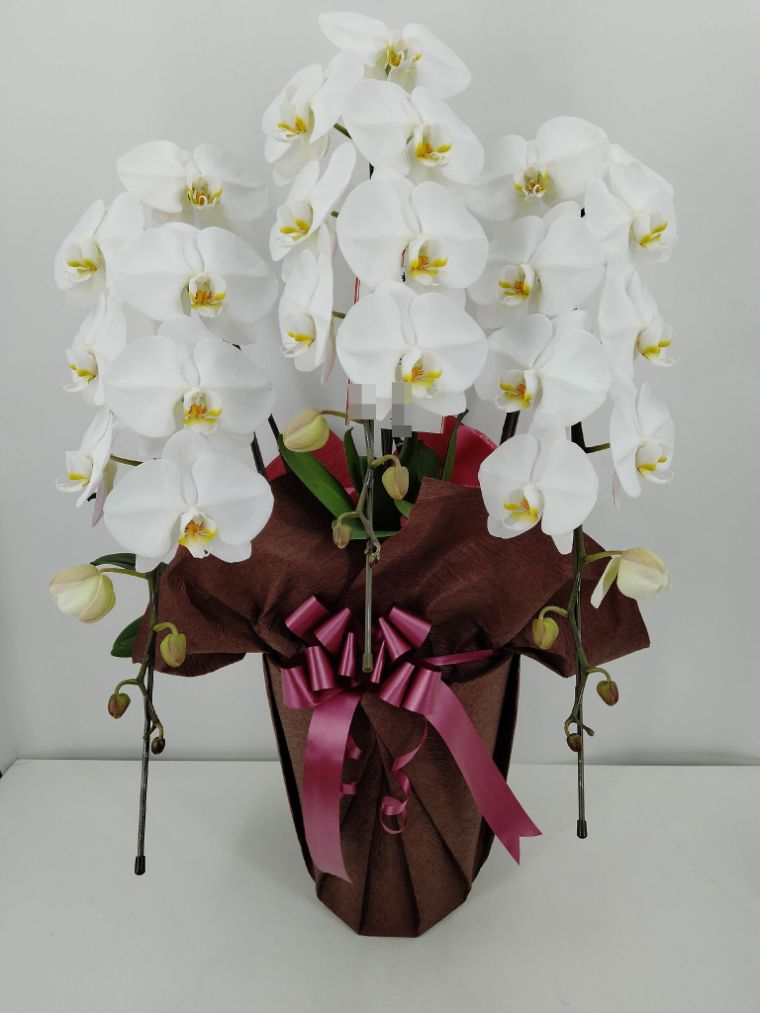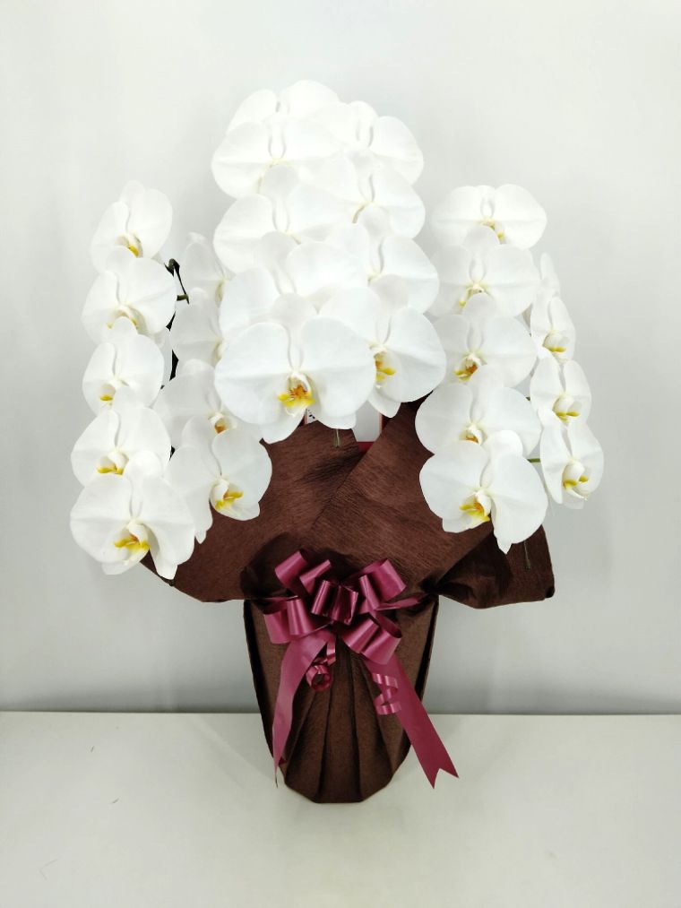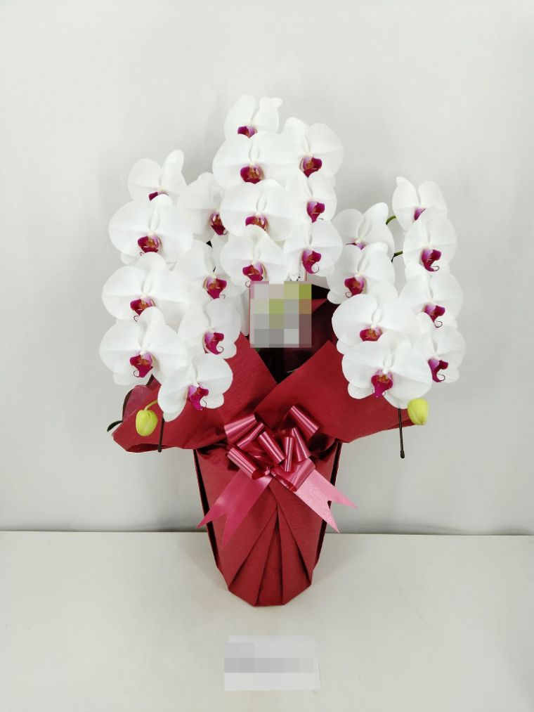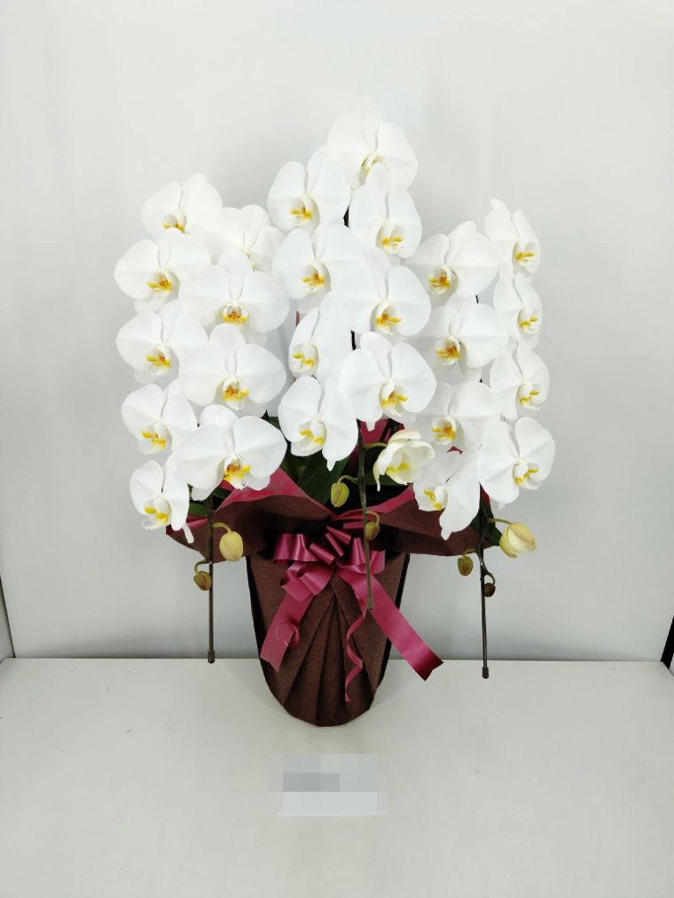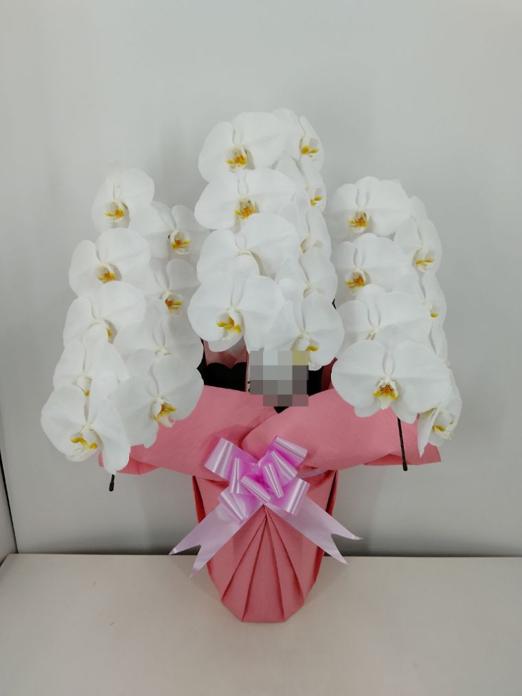 胡蝶蘭の実際にお届けした写真です。花秘書では発送前に写真をメールで送信致しますので安心して大切な顧客や取引様へのギフトにご利用頂けます。