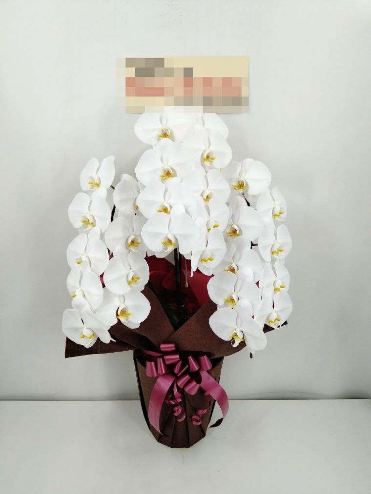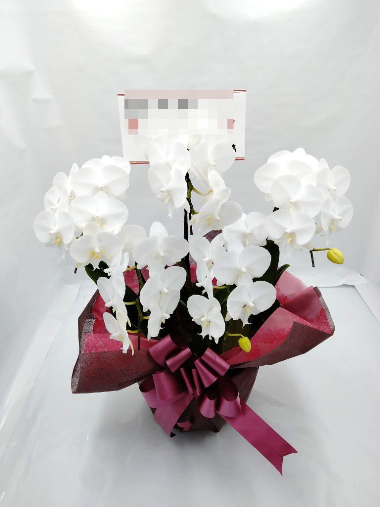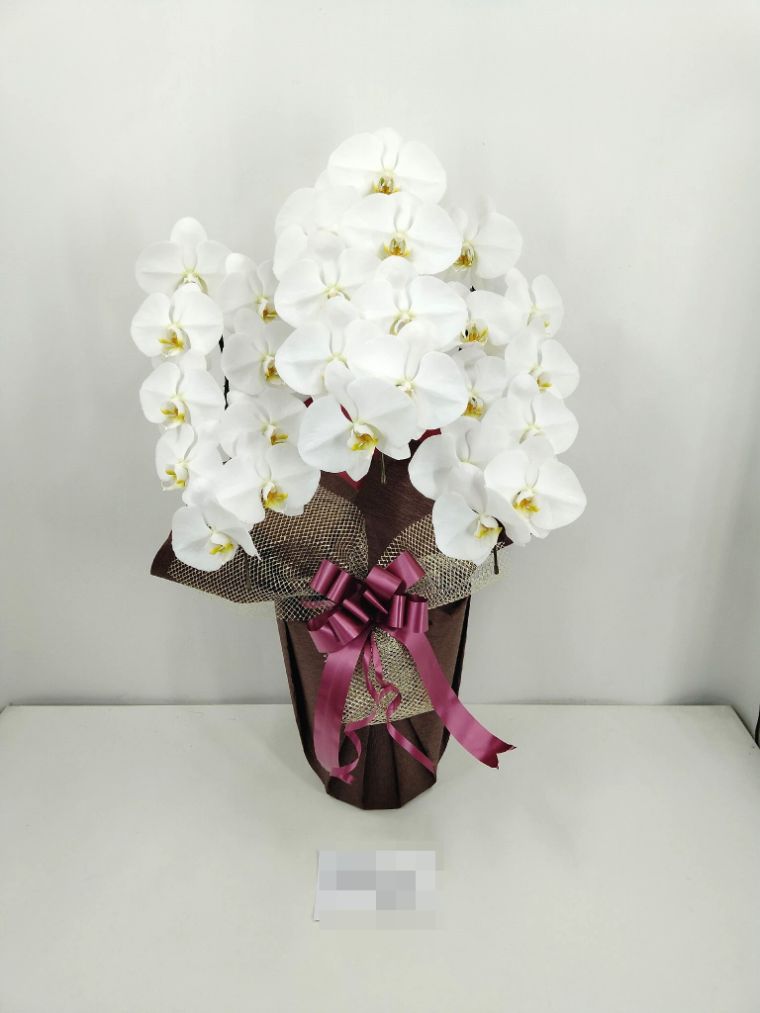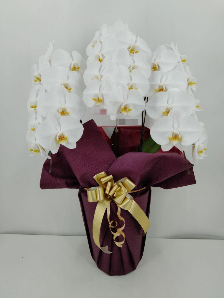 胡蝶蘭の実際にお届けした写真です。花秘書では発送前に写真をメールで送信致しますので安心して大切な顧客や取引様へのギフトにご利用頂けます。