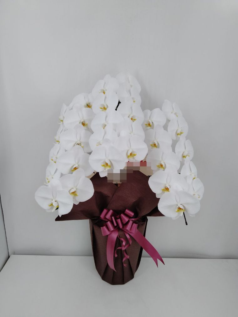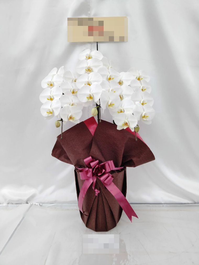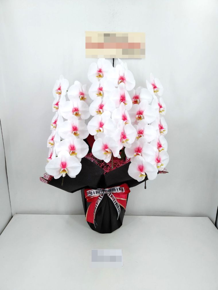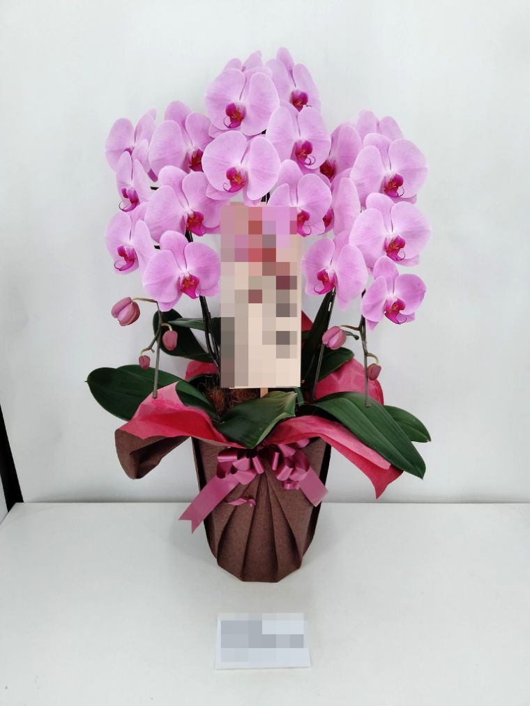 胡蝶蘭の実際にお届けした写真です。花秘書では発送前に写真をメールで送信致しますので安心して大切な顧客や取引様へのギフトにご利用頂けます。