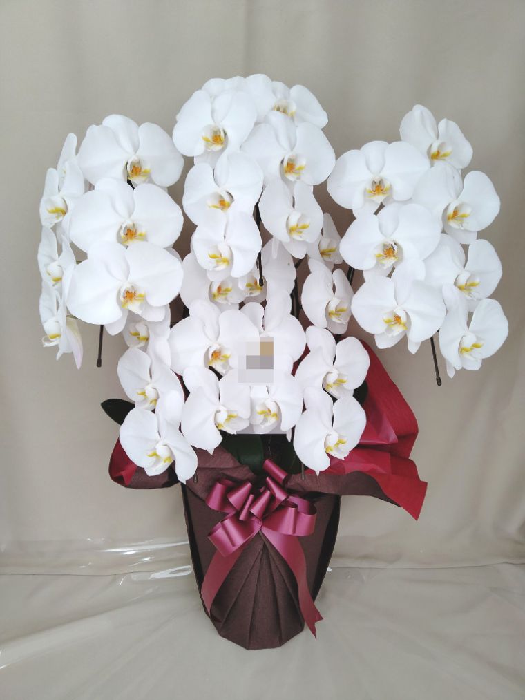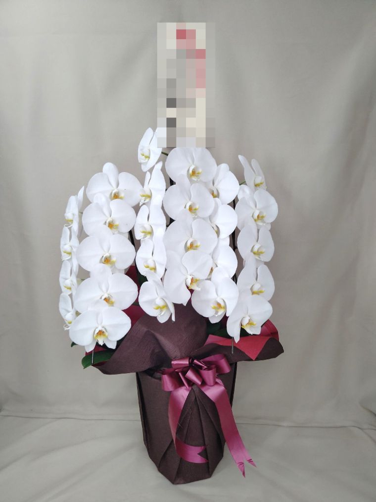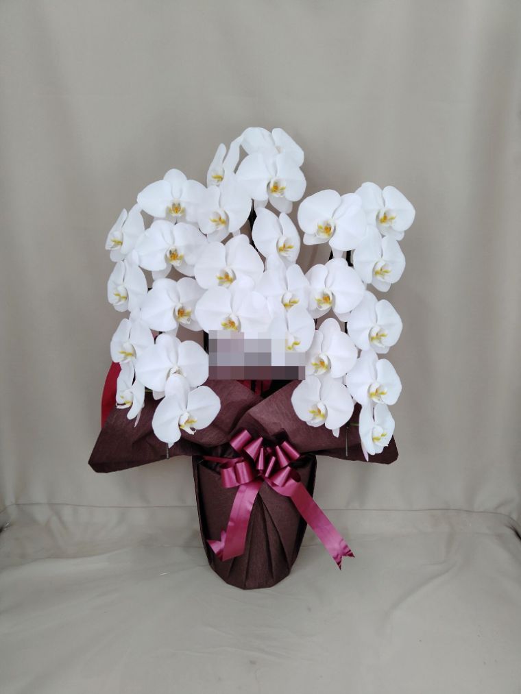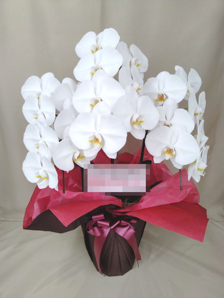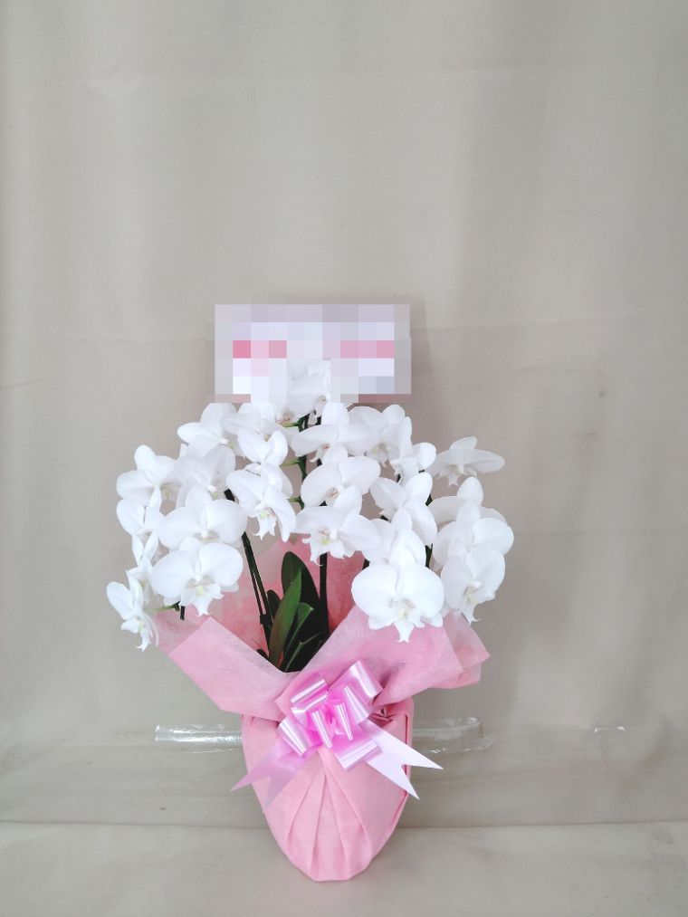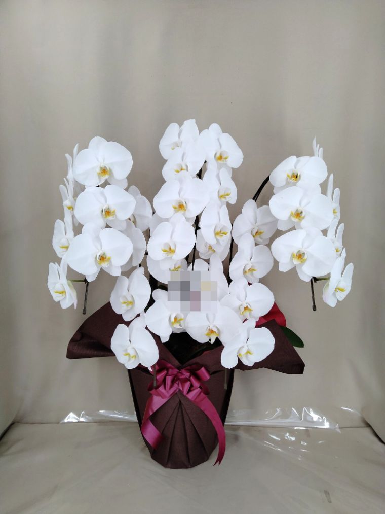 胡蝶蘭の実際にお届けした写真です。花秘書では発送前に写真をメールで送信致しますので安心して大切な顧客や取引様へのギフトにご利用頂けます。