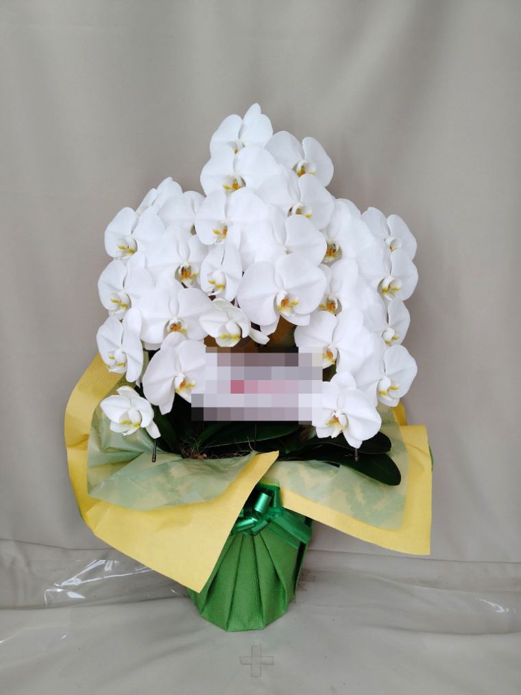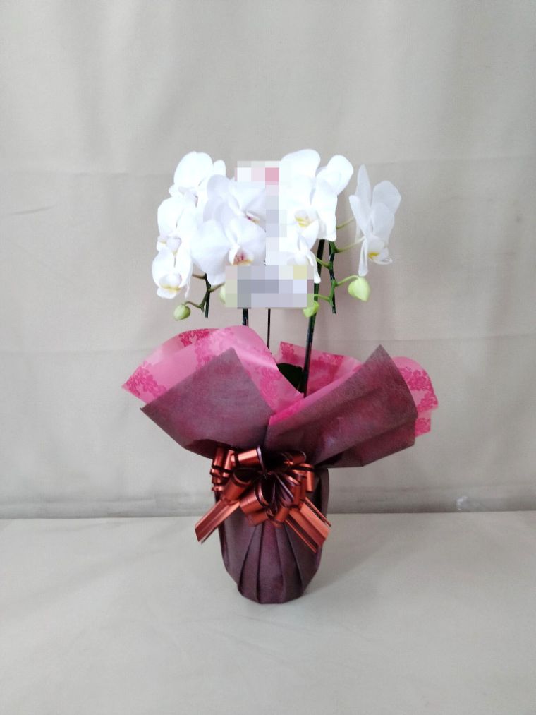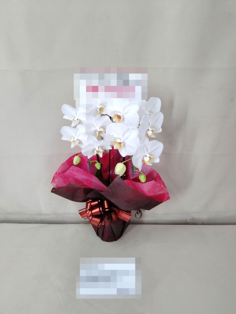 胡蝶蘭の実際にお届けした写真です。花秘書では発送前に写真をメールで送信致しますので安心して大切な顧客や取引様へのギフトにご利用頂けます。