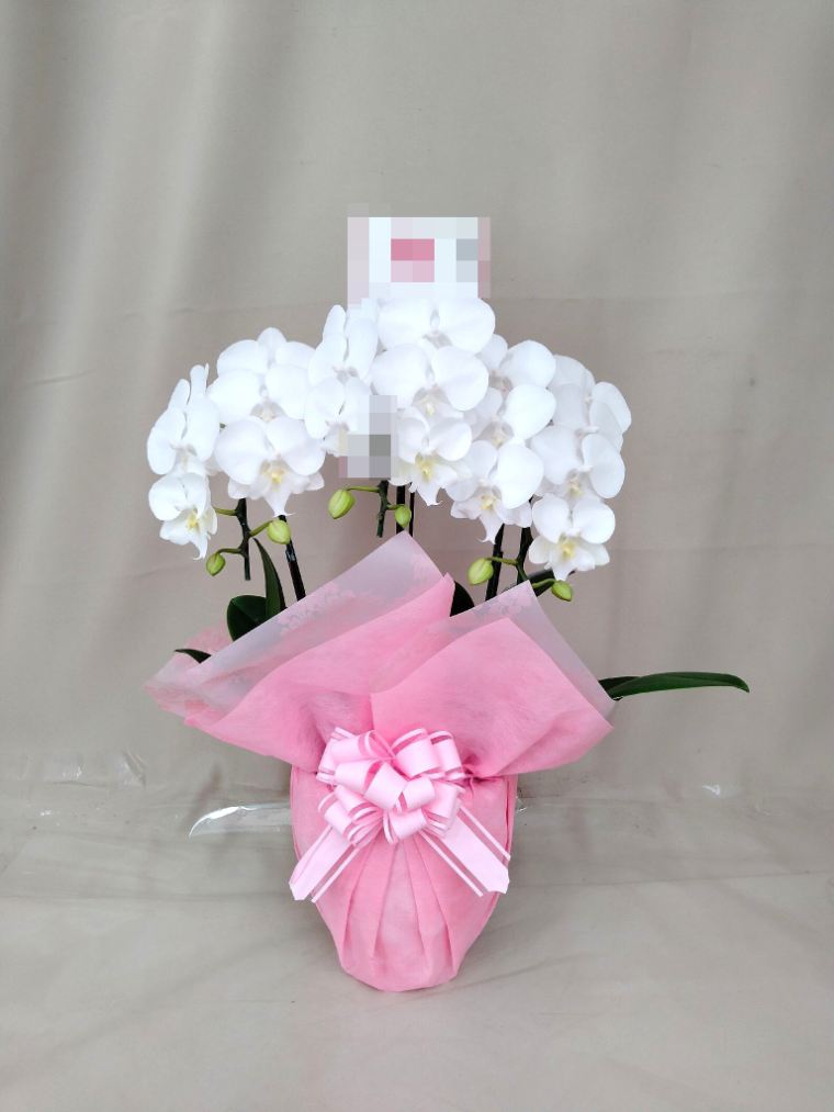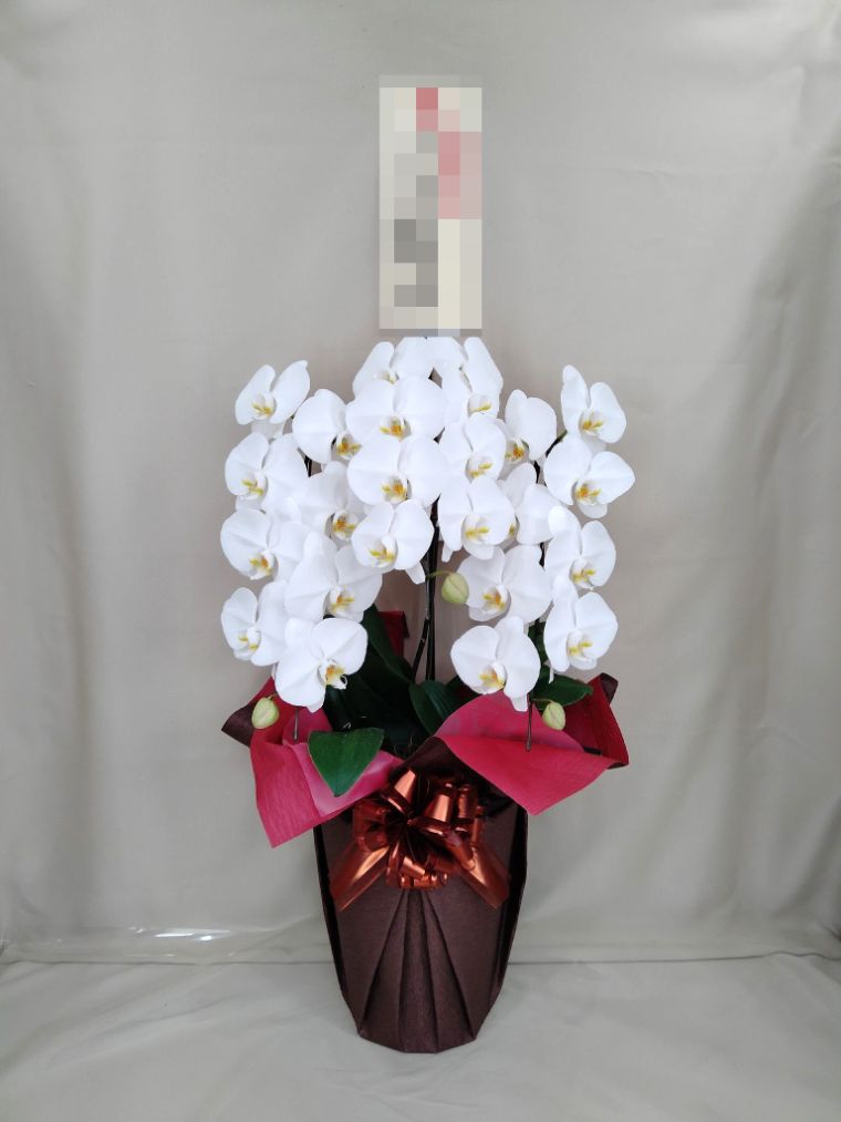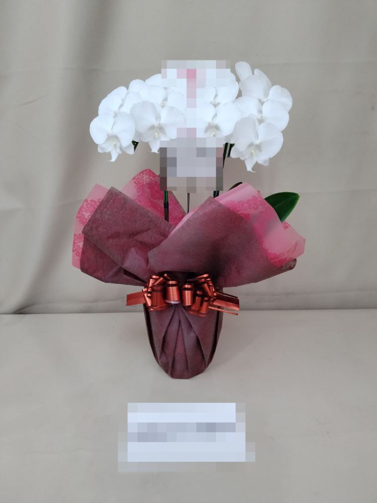 胡蝶蘭の実際にお届けした写真です。花秘書では発送前に写真をメールで送信致しますので安心して大切な顧客や取引様へのギフトにご利用頂けます。