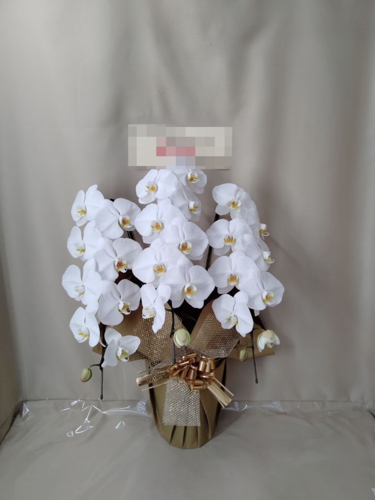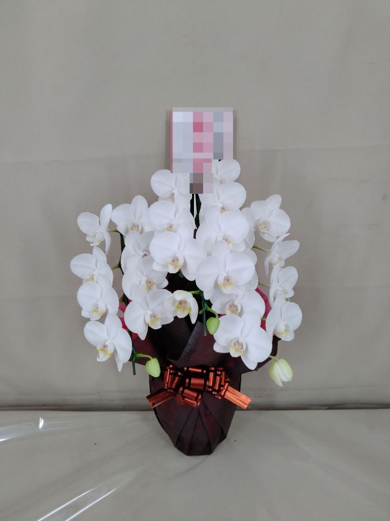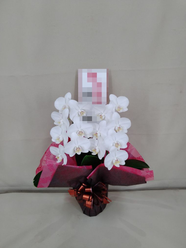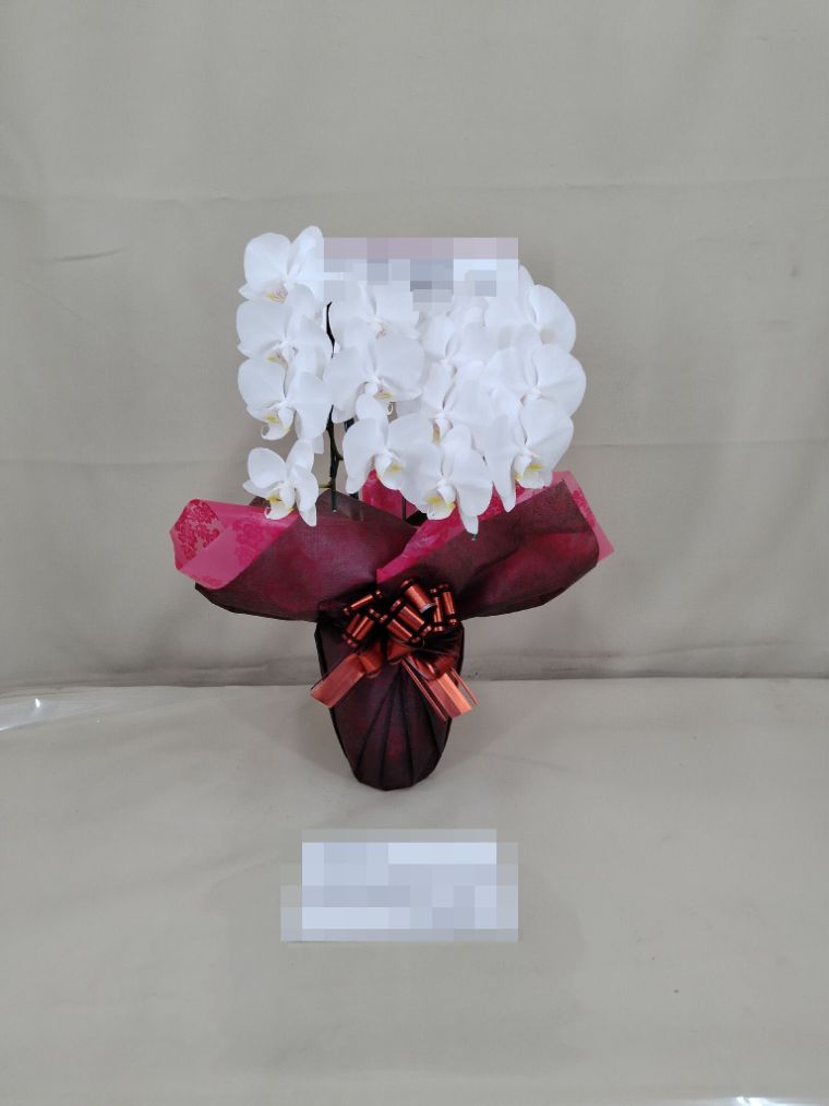 胡蝶蘭の実際にお届けした写真です。花秘書では発送前に写真をメールで送信致しますので安心して大切な顧客や取引様へのギフトにご利用頂けます。