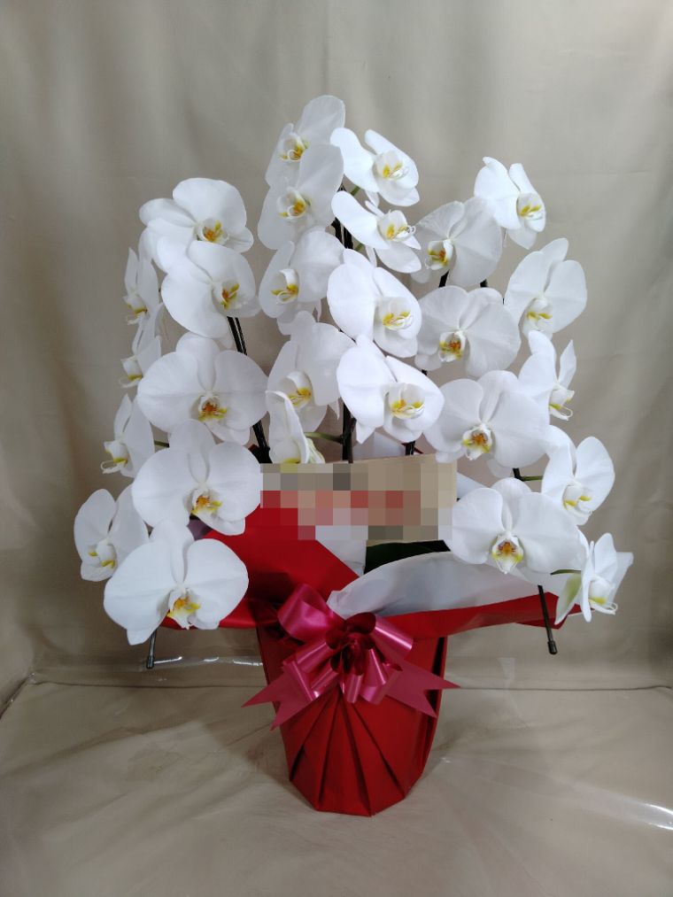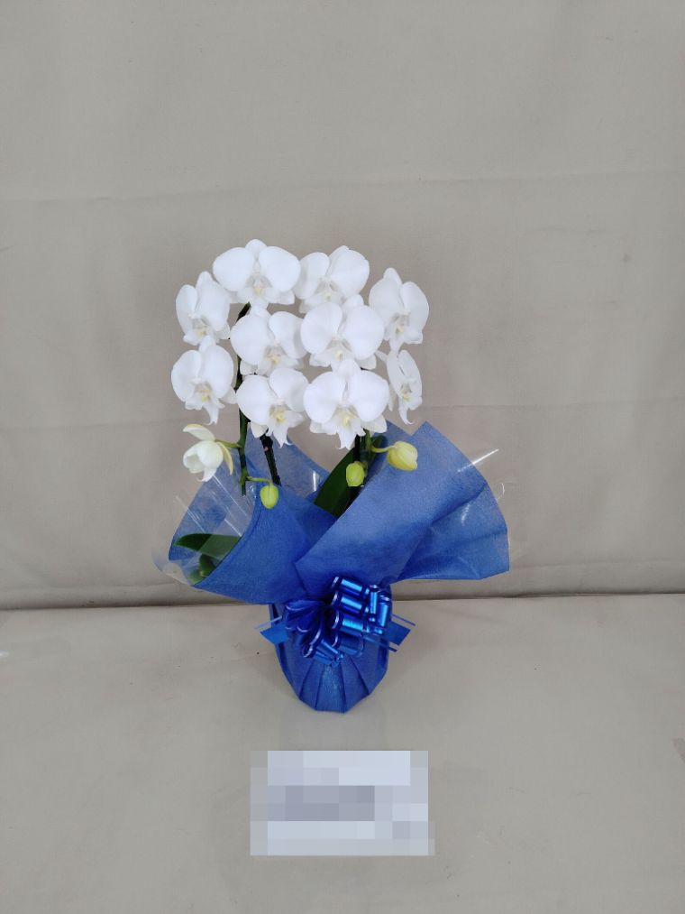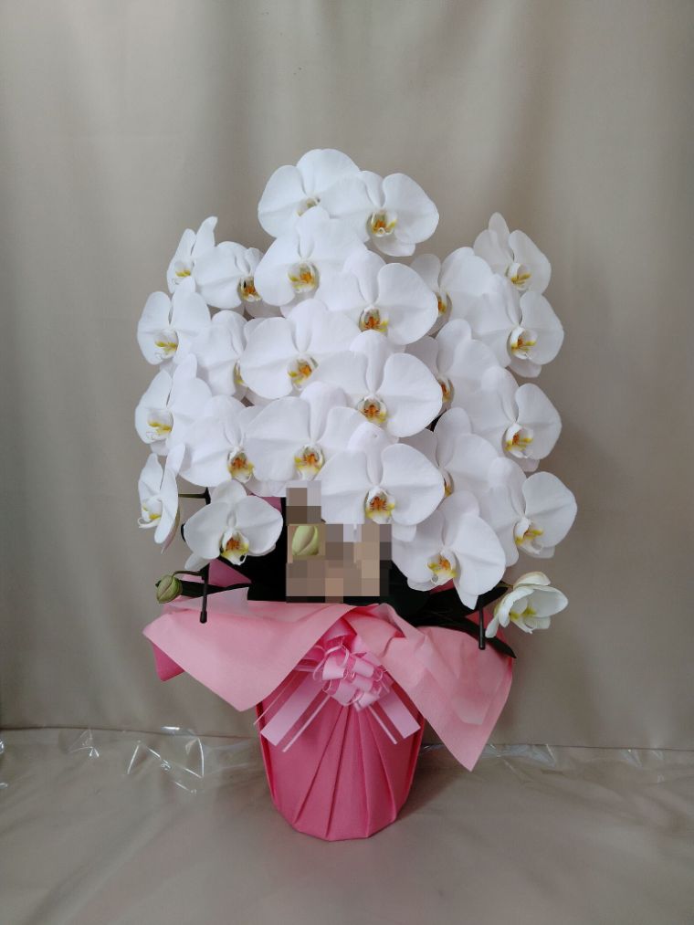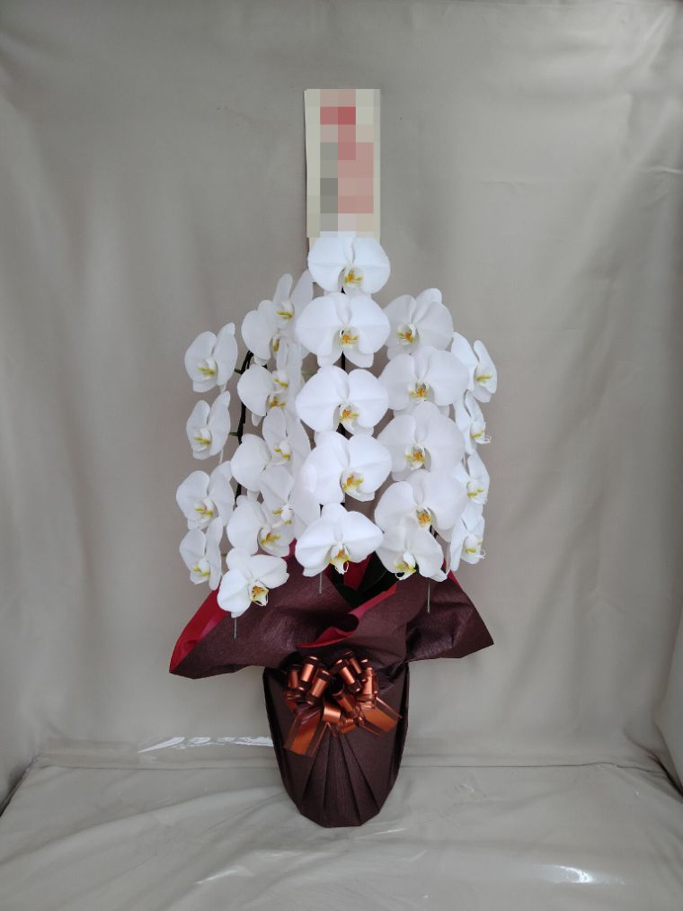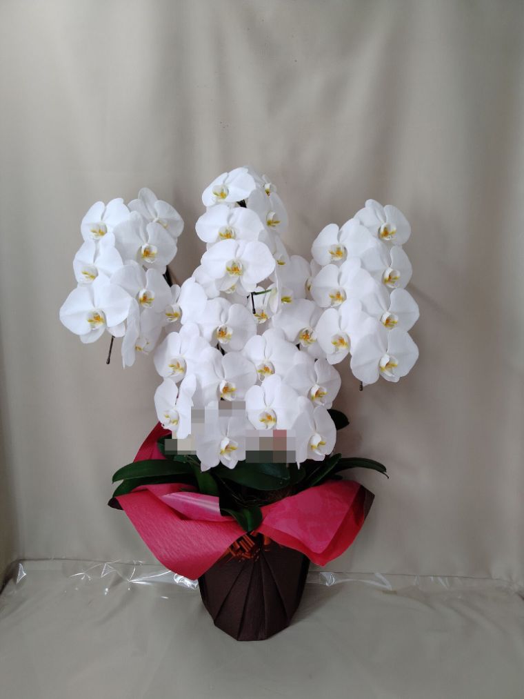 胡蝶蘭の実際にお届けした写真です。花秘書では発送前に写真をメールで送信致しますので安心して大切な顧客や取引様へのギフトにご利用頂けます。