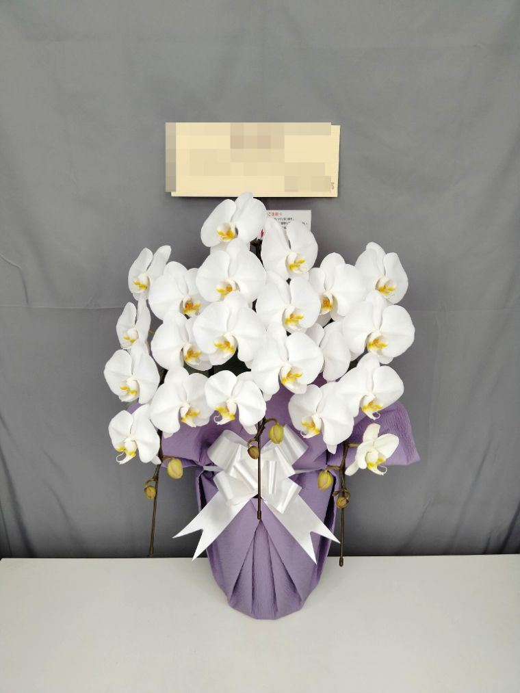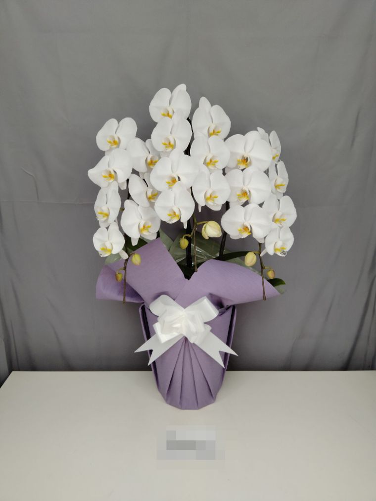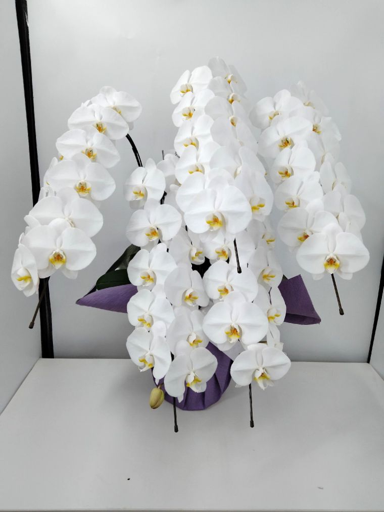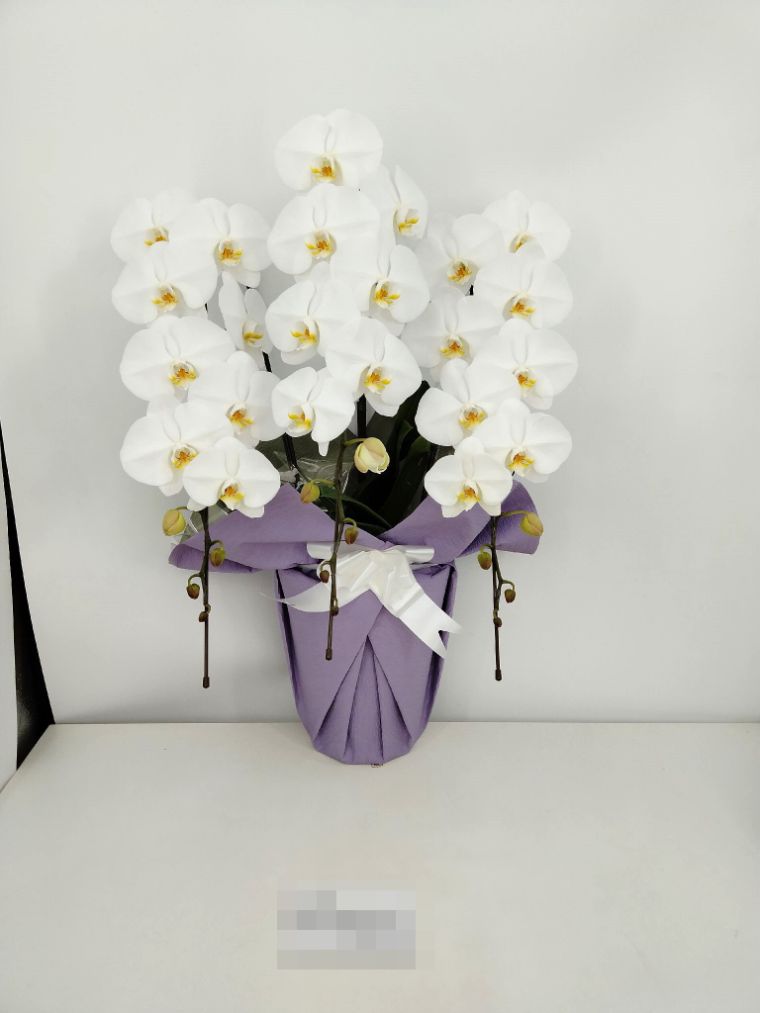 胡蝶蘭の実際にお届けした写真です。花秘書では発送前に写真をメールで送信致しますので安心して大切な顧客や取引様へのギフトにご利用頂けます。