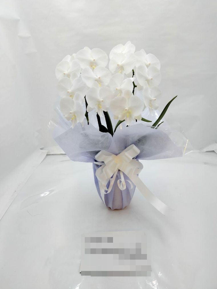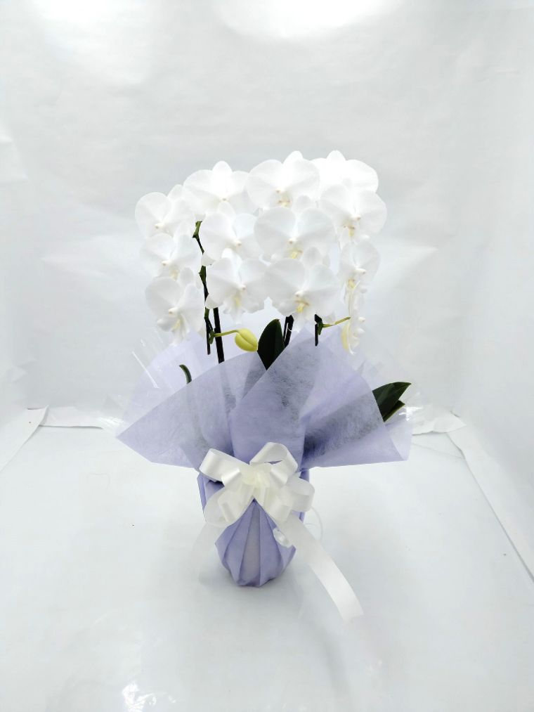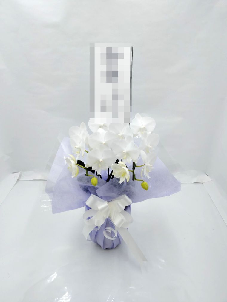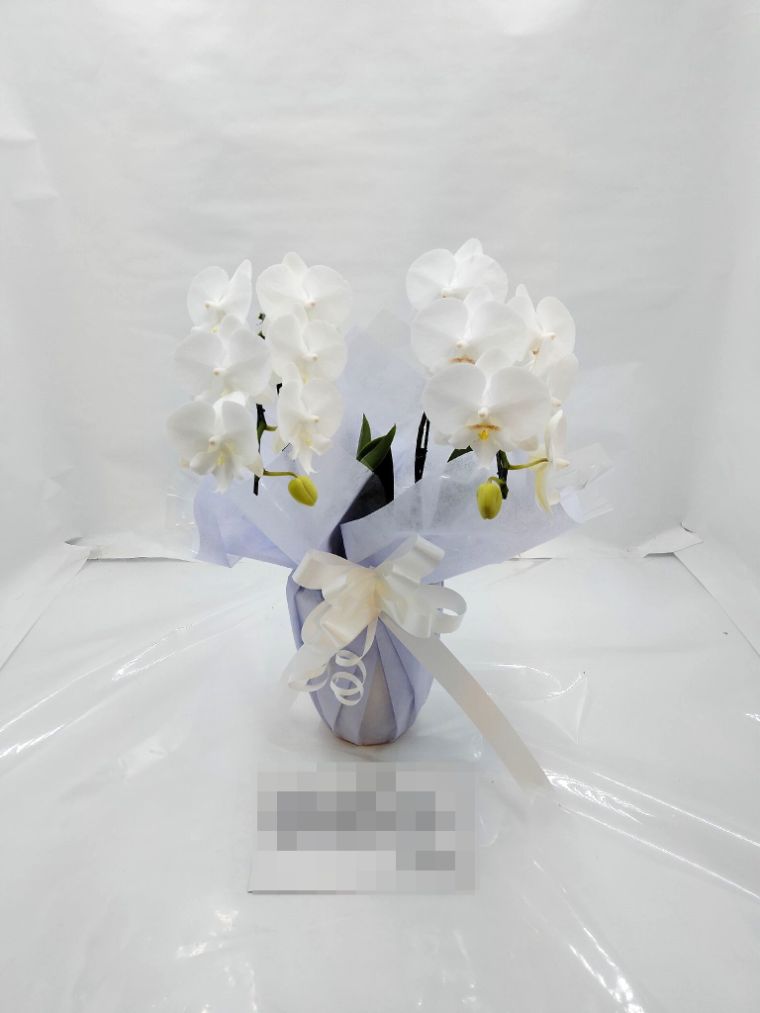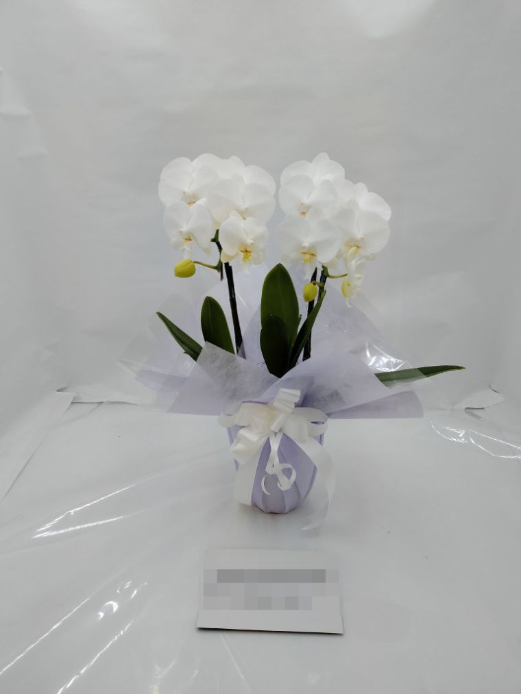 胡蝶蘭の実際にお届けした写真です。花秘書では発送前に写真をメールで送信致しますので安心して大切な顧客や取引様へのギフトにご利用頂けます。