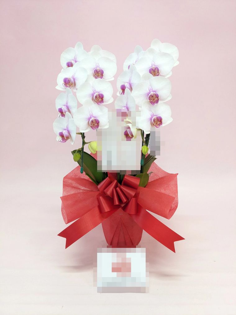 胡蝶蘭の実際にお届けした写真です。花秘書では発送前に写真をメールで送信致しますので安心して大切な顧客や取引様へのギフトにご利用頂けます。