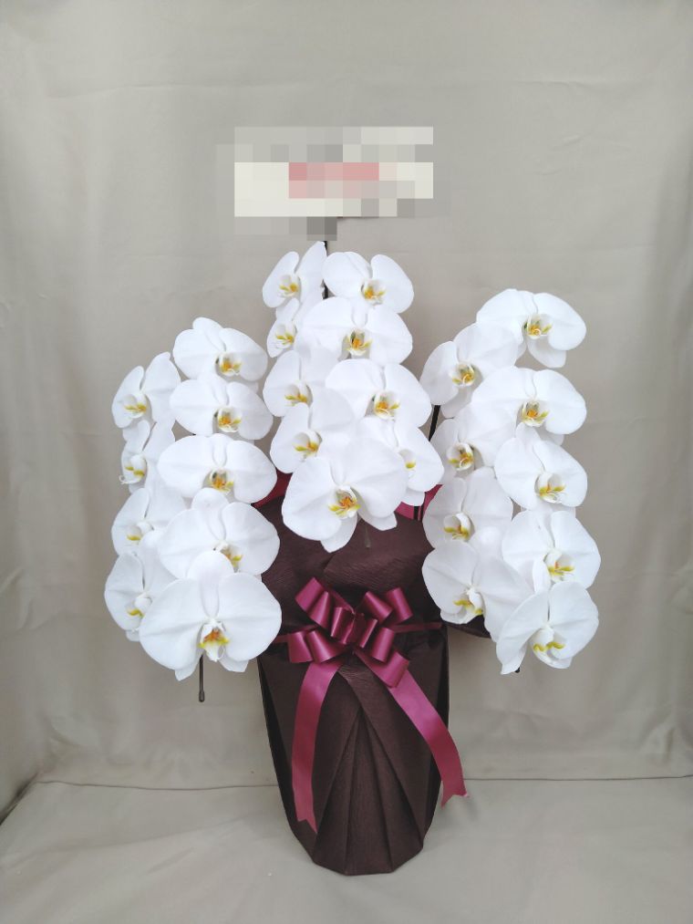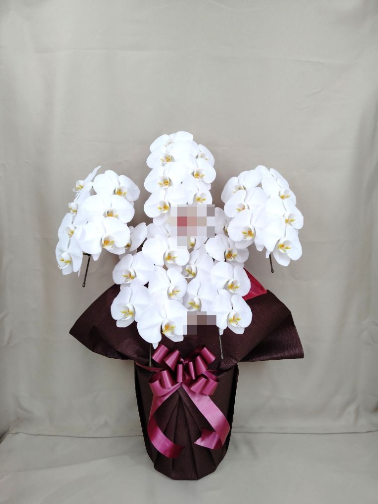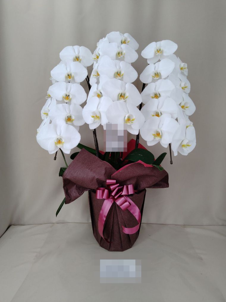 胡蝶蘭の実際にお届けした写真です。花秘書では発送前に写真をメールで送信致しますので安心して大切な顧客や取引様へのギフトにご利用頂けます。
