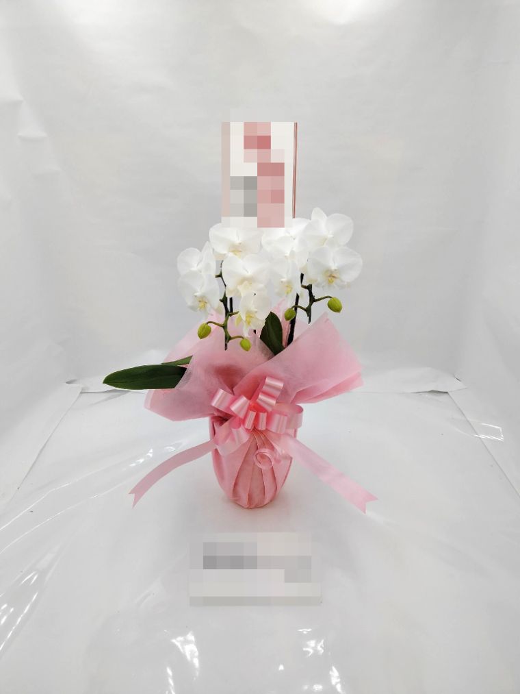 胡蝶蘭の実際にお届けした写真です。花秘書では発送前に写真をメールで送信致しますので安心して大切な顧客や取引様へのギフトにご利用頂けます。