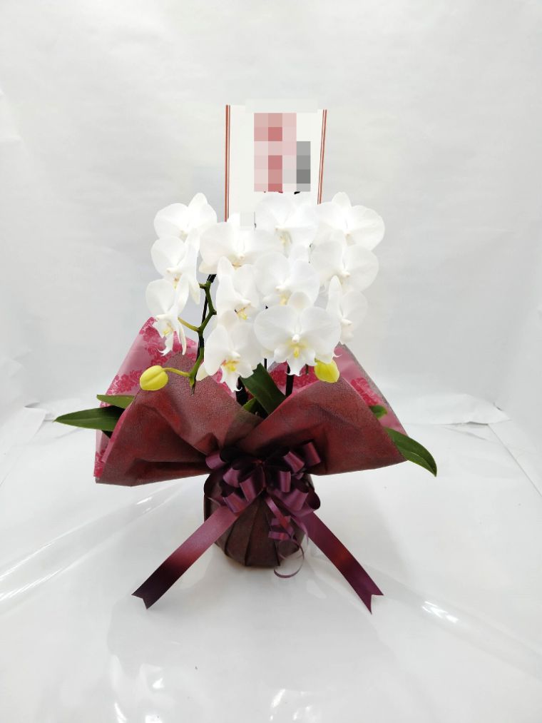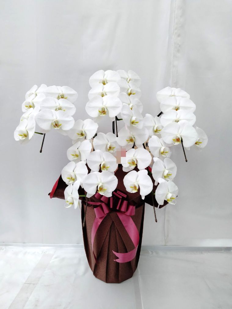 胡蝶蘭の実際にお届けした写真です。花秘書では発送前に写真をメールで送信致しますので安心して大切な顧客や取引様へのギフトにご利用頂けます。