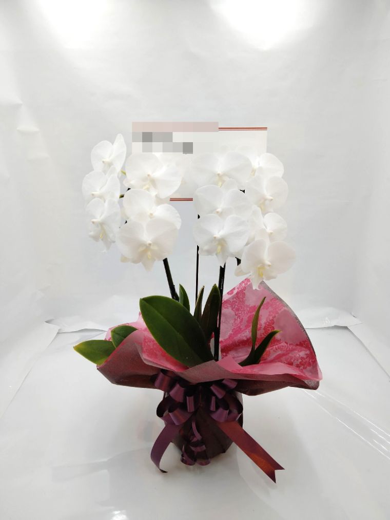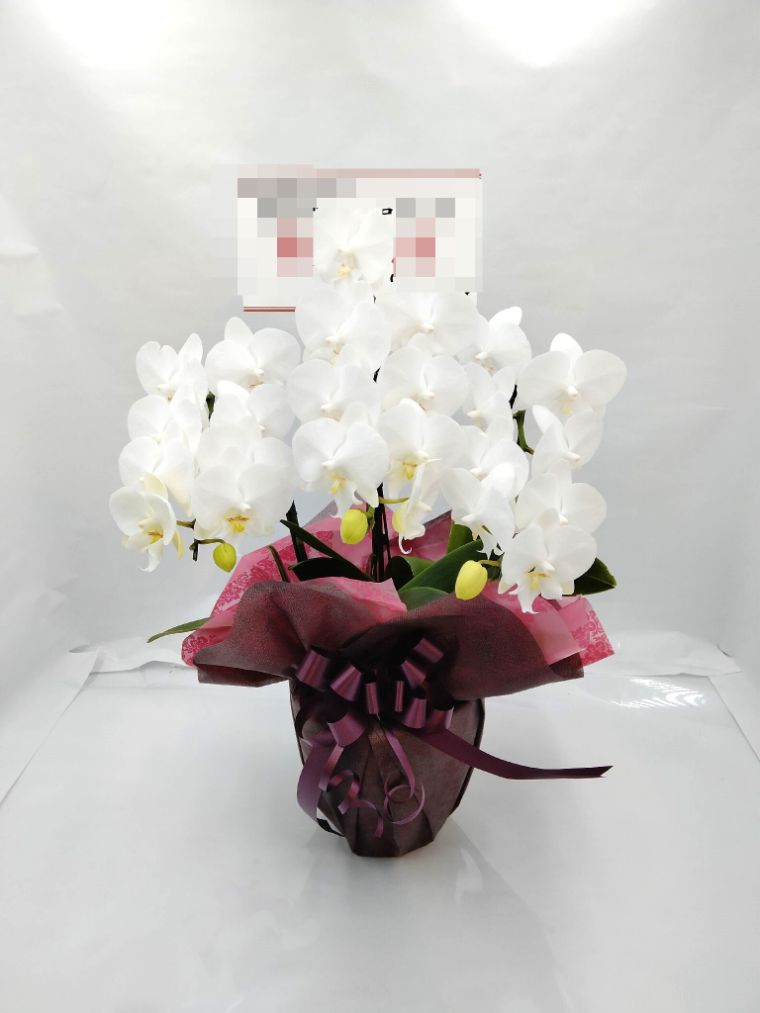 胡蝶蘭の実際にお届けした写真です。花秘書では発送前に写真をメールで送信致しますので安心して大切な顧客や取引様へのギフトにご利用頂けます。