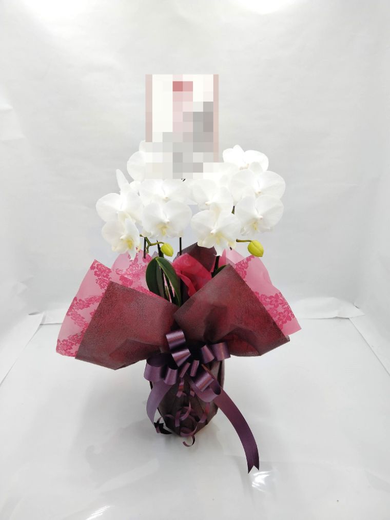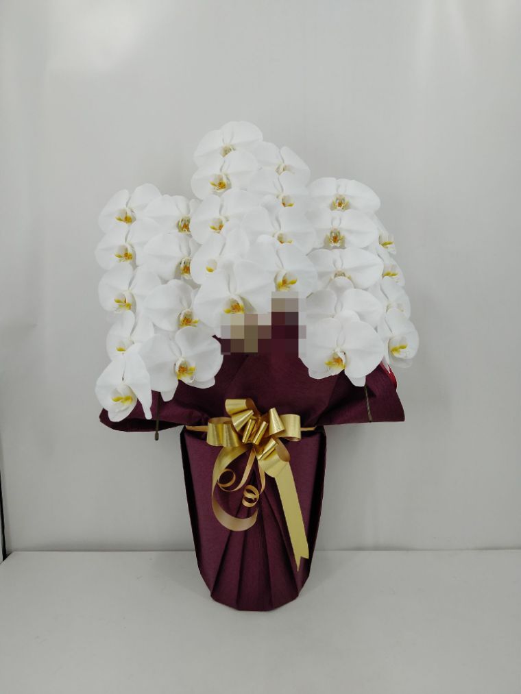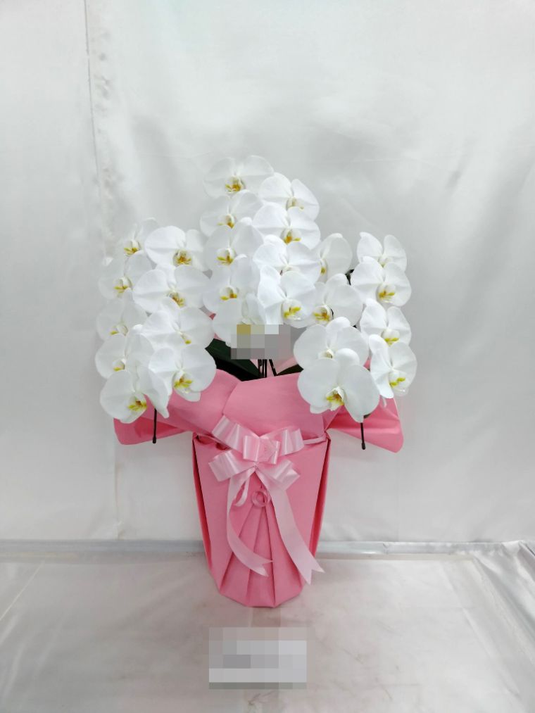 胡蝶蘭の実際にお届けした写真です。花秘書では発送前に写真をメールで送信致しますので安心して大切な顧客や取引様へのギフトにご利用頂けます。