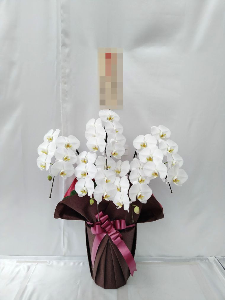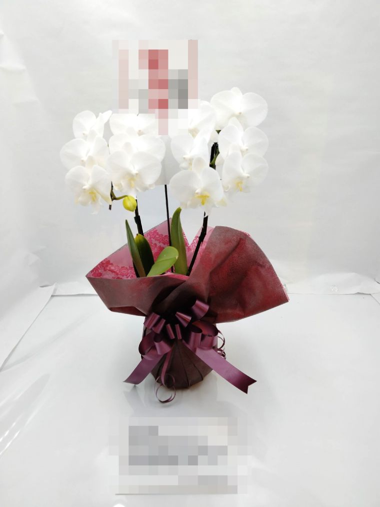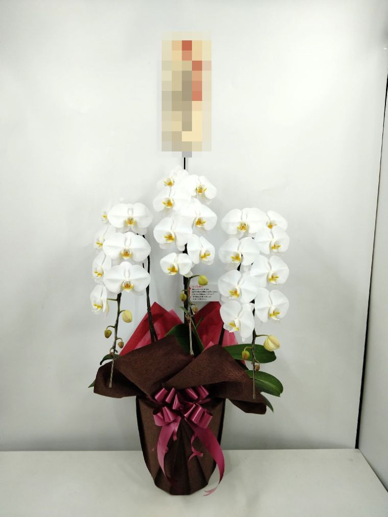 胡蝶蘭の実際にお届けした写真です。花秘書では発送前に写真をメールで送信致しますので安心して大切な顧客や取引様へのギフトにご利用頂けます。