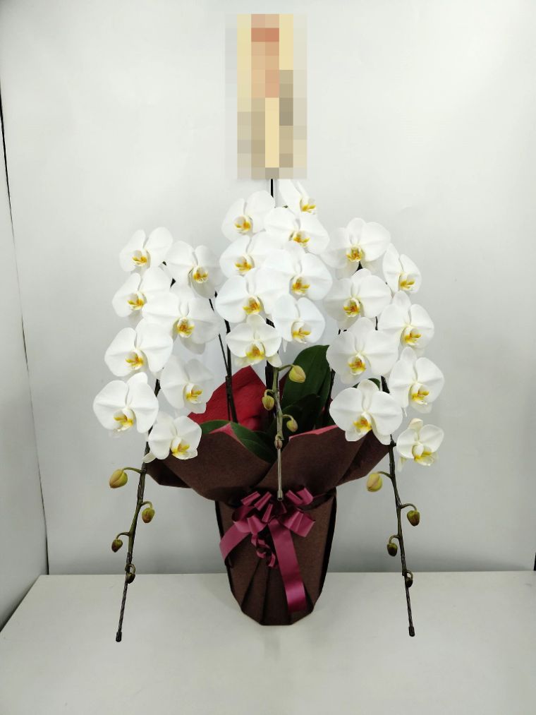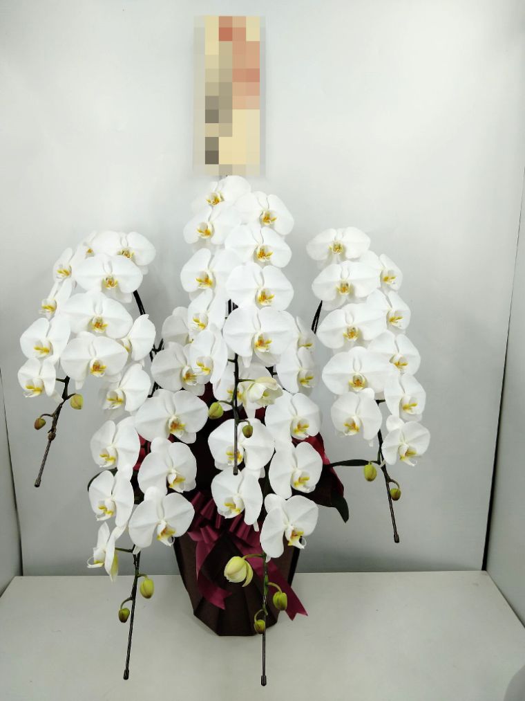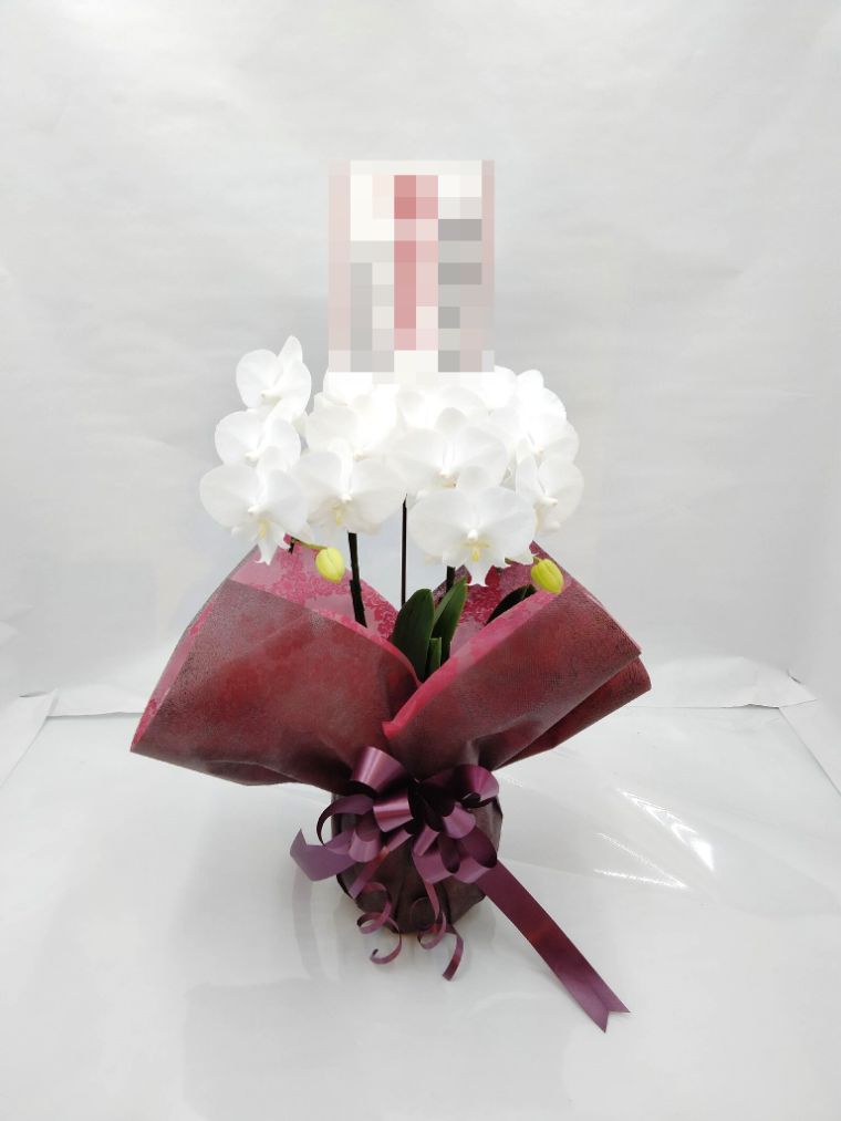 胡蝶蘭の実際にお届けした写真です。花秘書では発送前に写真をメールで送信致しますので安心して大切な顧客や取引様へのギフトにご利用頂けます。