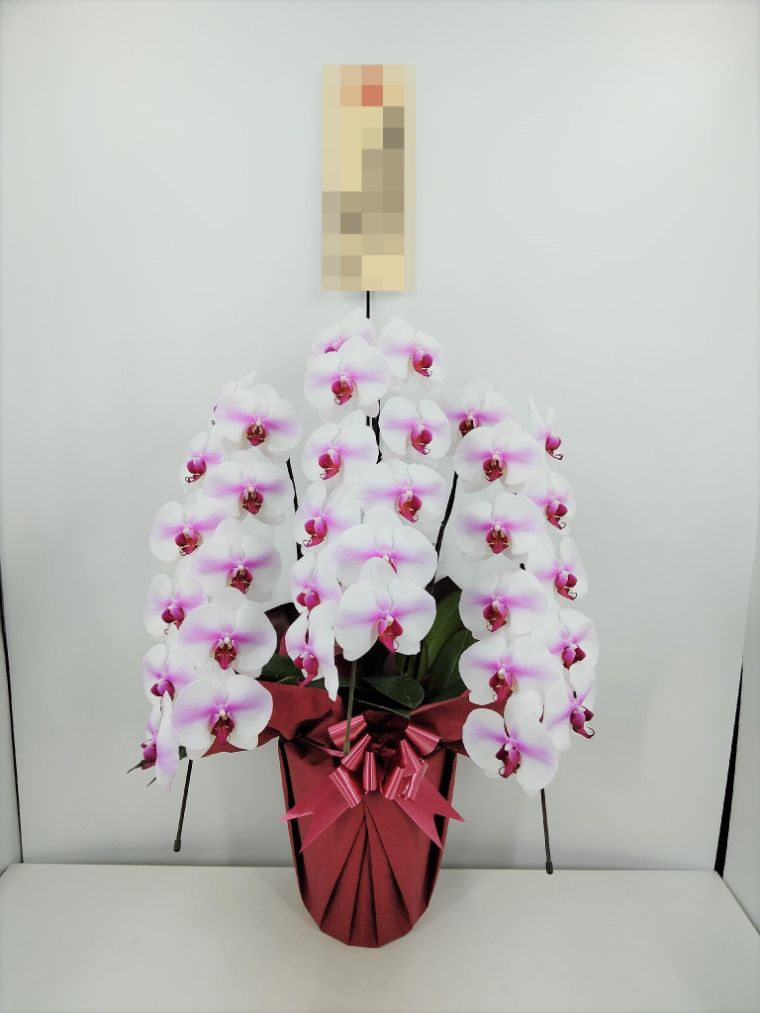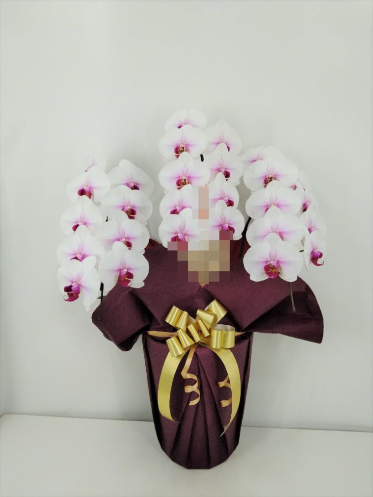 胡蝶蘭の実際にお届けした写真です。花秘書では発送前に写真をメールで送信致しますので安心して大切な顧客や取引様へのギフトにご利用頂けます。