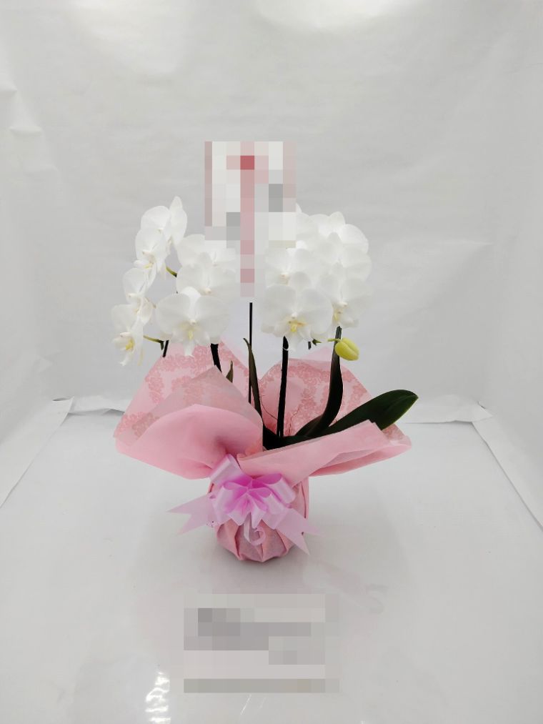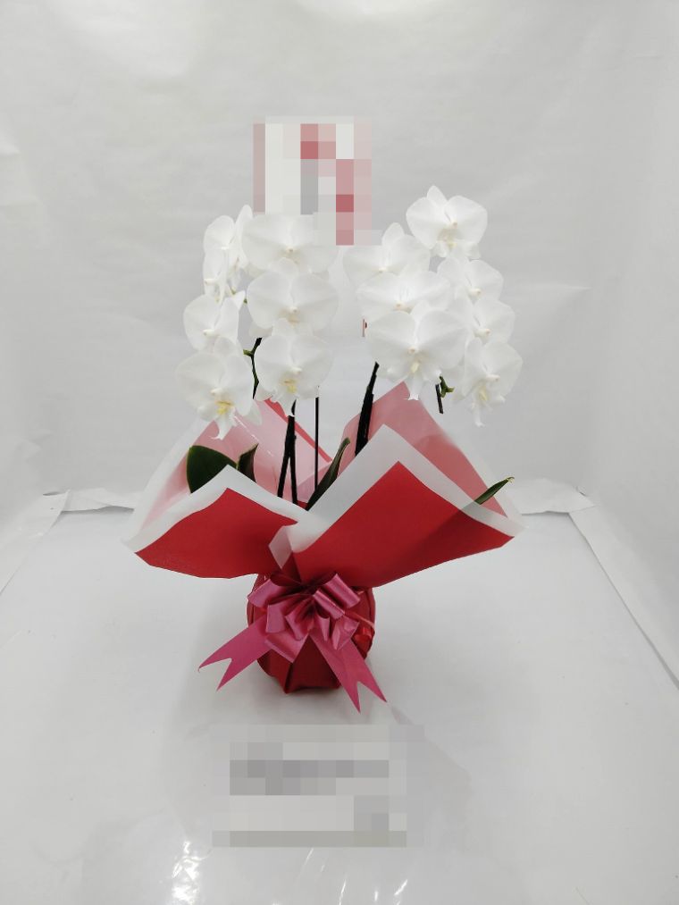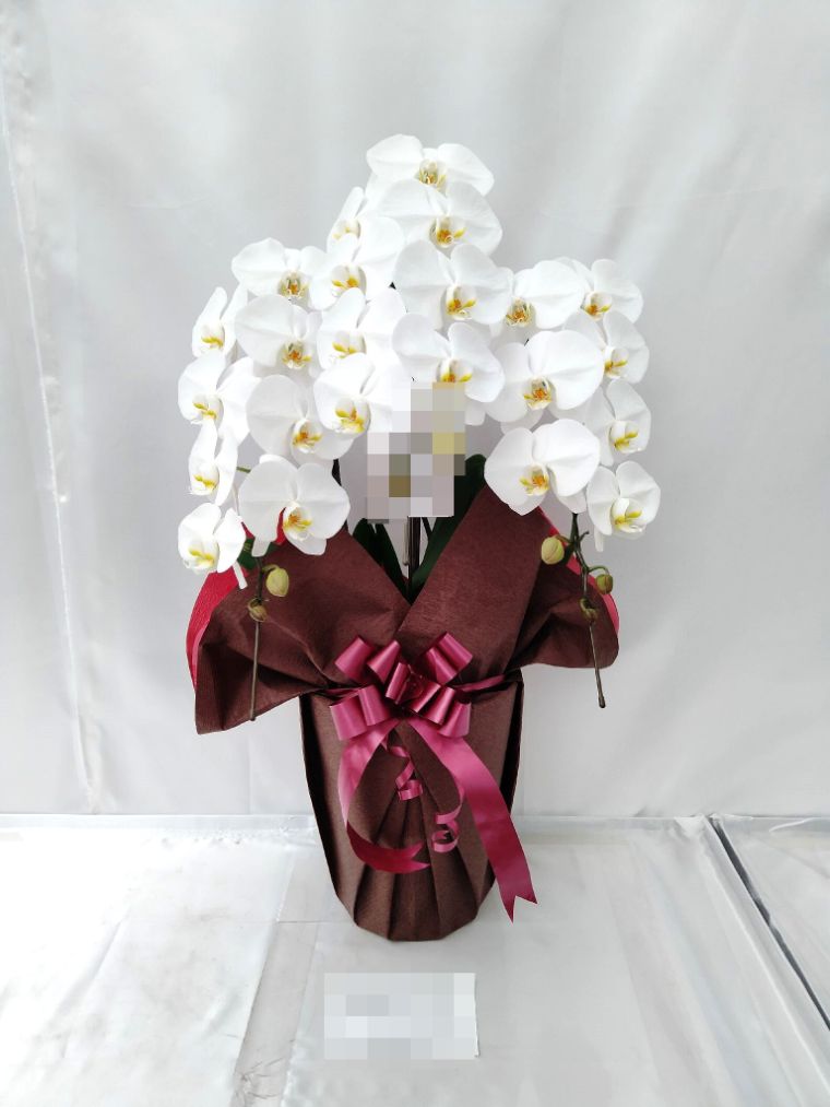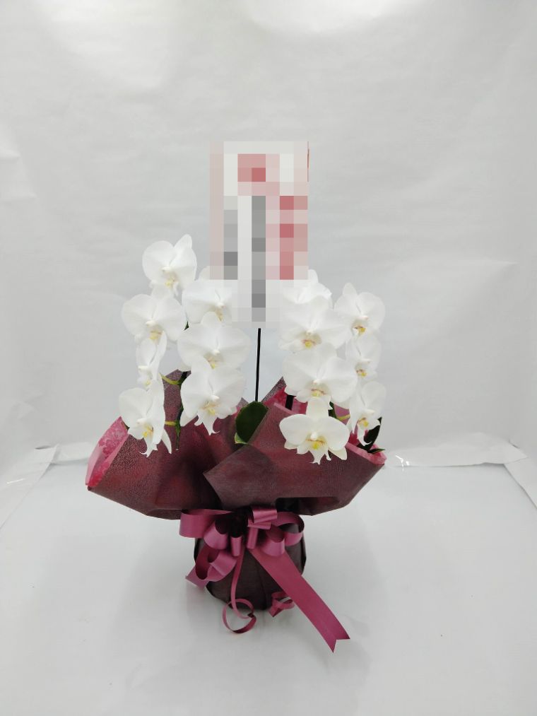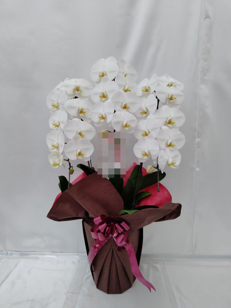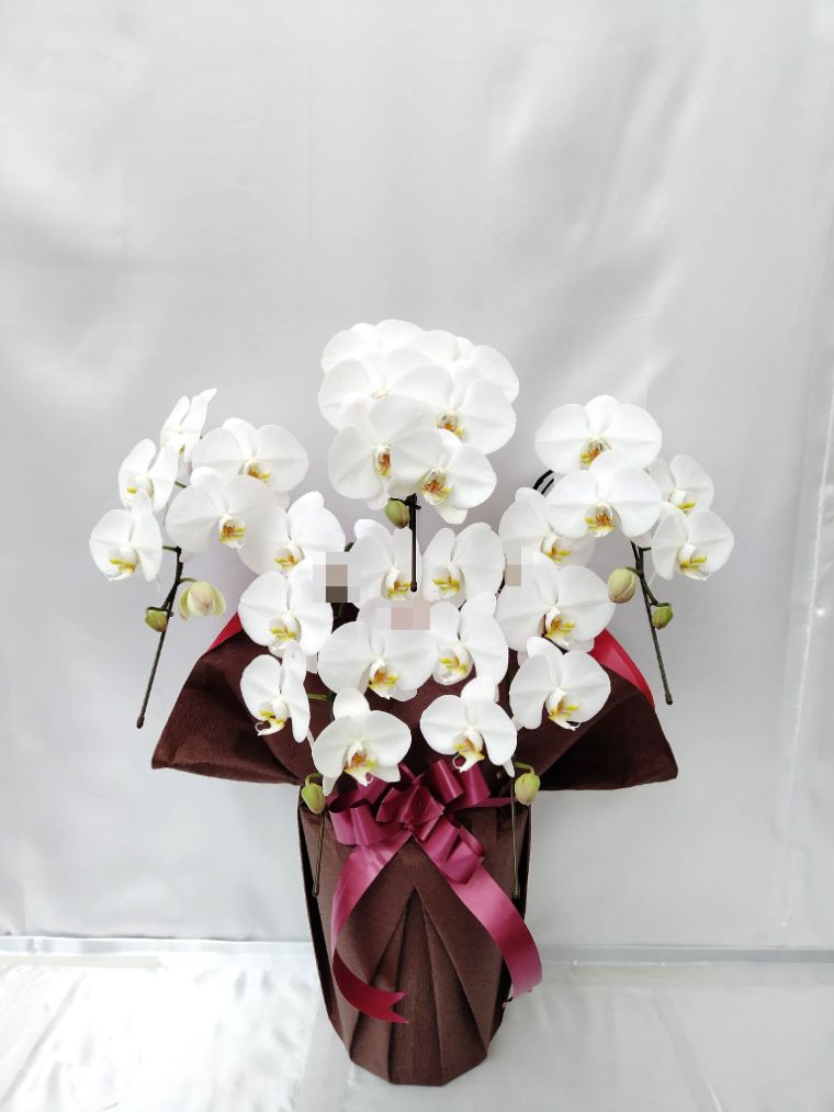 胡蝶蘭の実際にお届けした写真です。花秘書では発送前に写真をメールで送信致しますので安心して大切な顧客や取引様へのギフトにご利用頂けます。