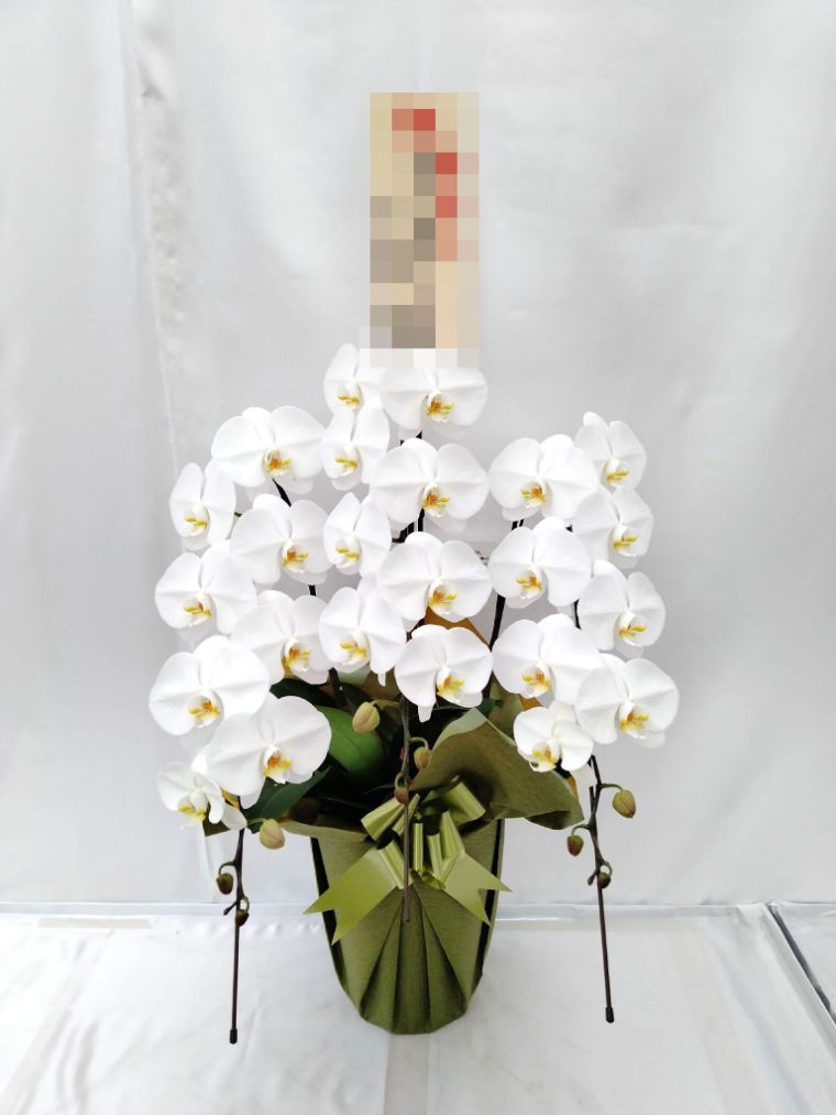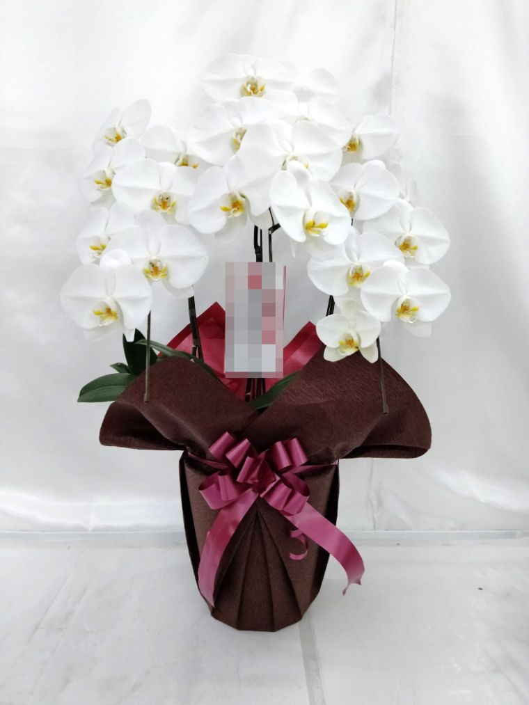 胡蝶蘭の実際にお届けした写真です。花秘書では発送前に写真をメールで送信致しますので安心して大切な顧客や取引様へのギフトにご利用頂けます。
