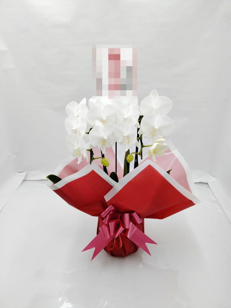 胡蝶蘭の実際にお届けした写真です。花秘書では発送前に写真をメールで送信致しますので安心して大切な顧客や取引様へのギフトにご利用頂けます。