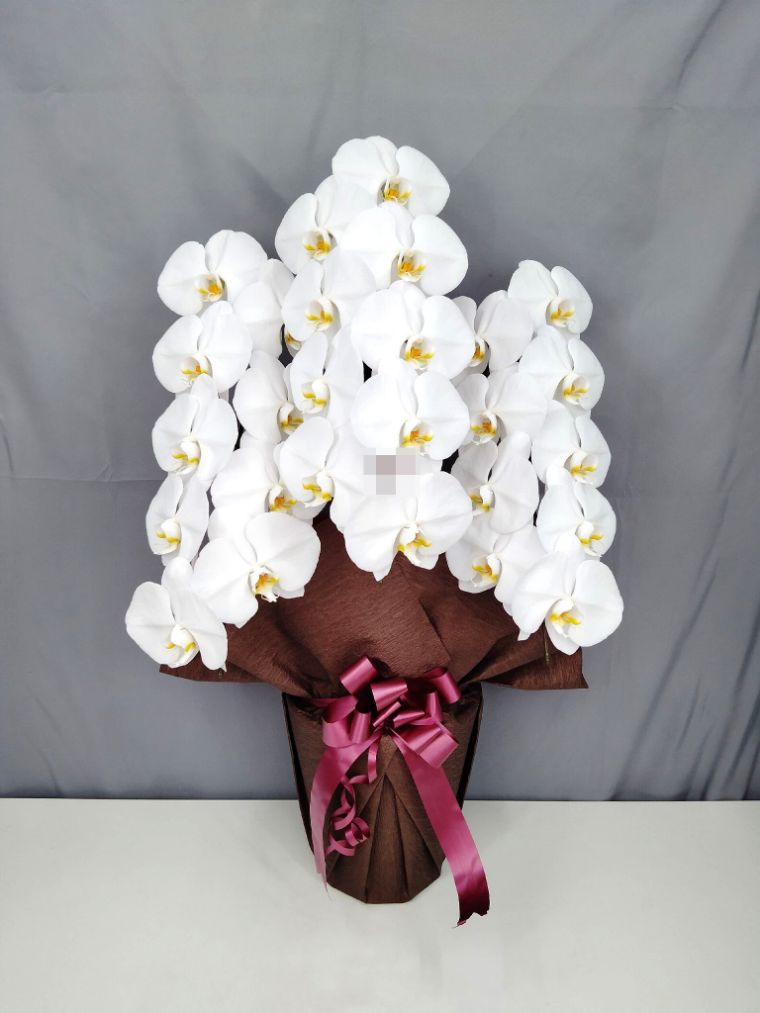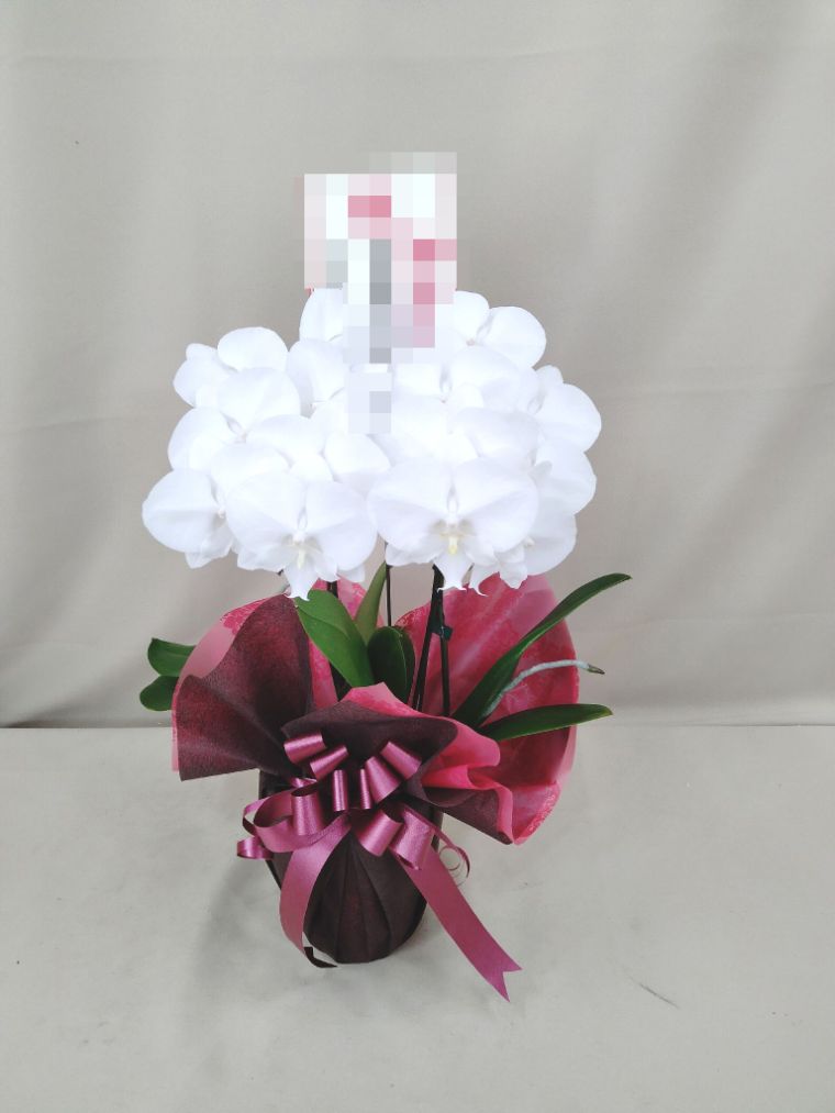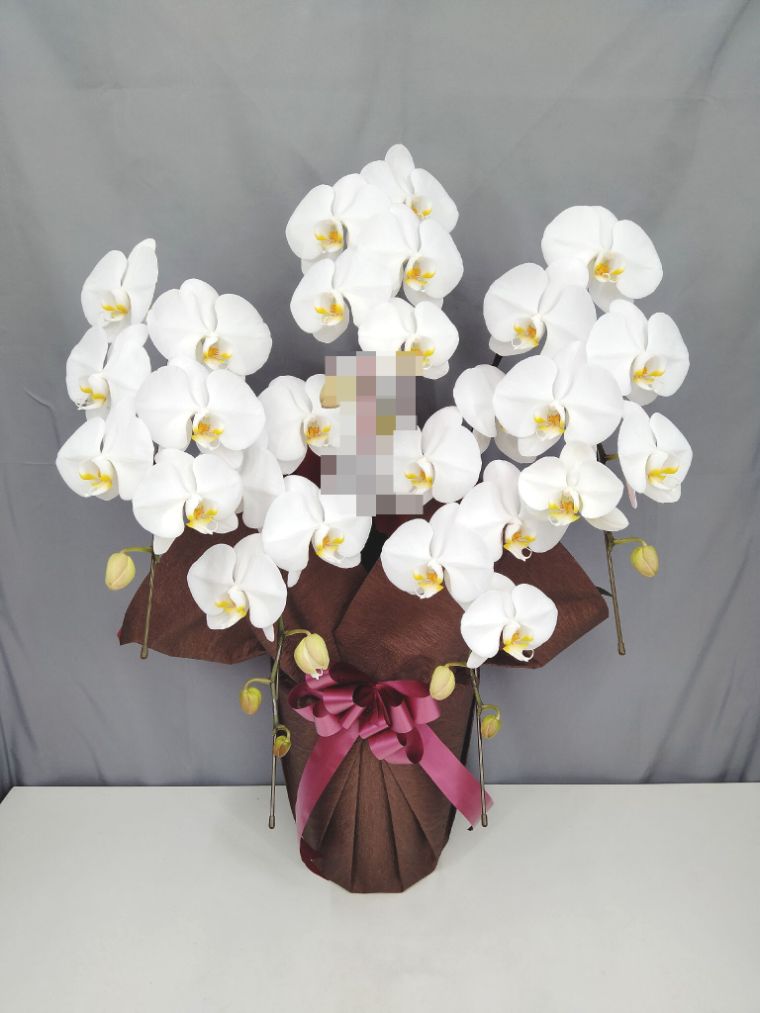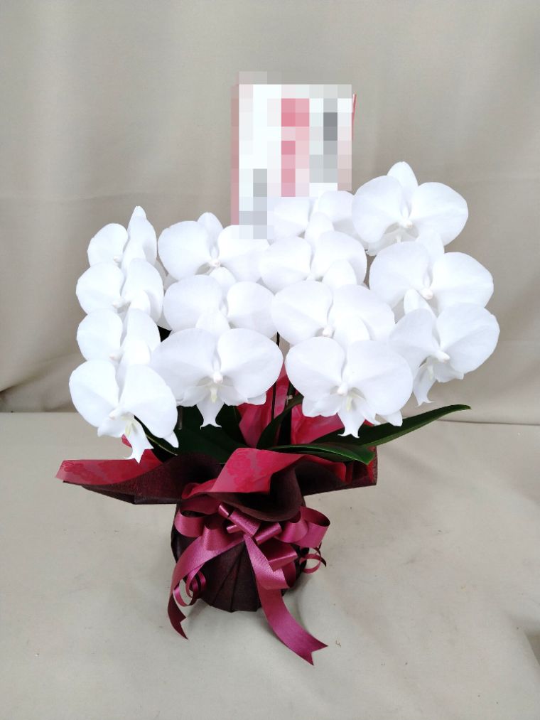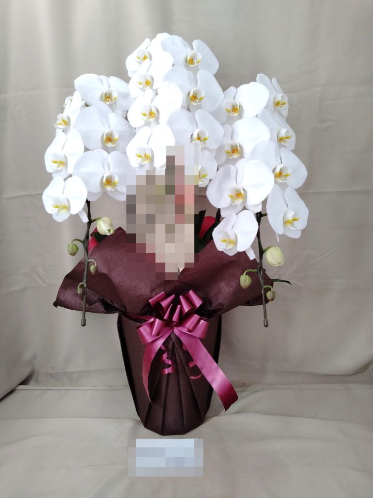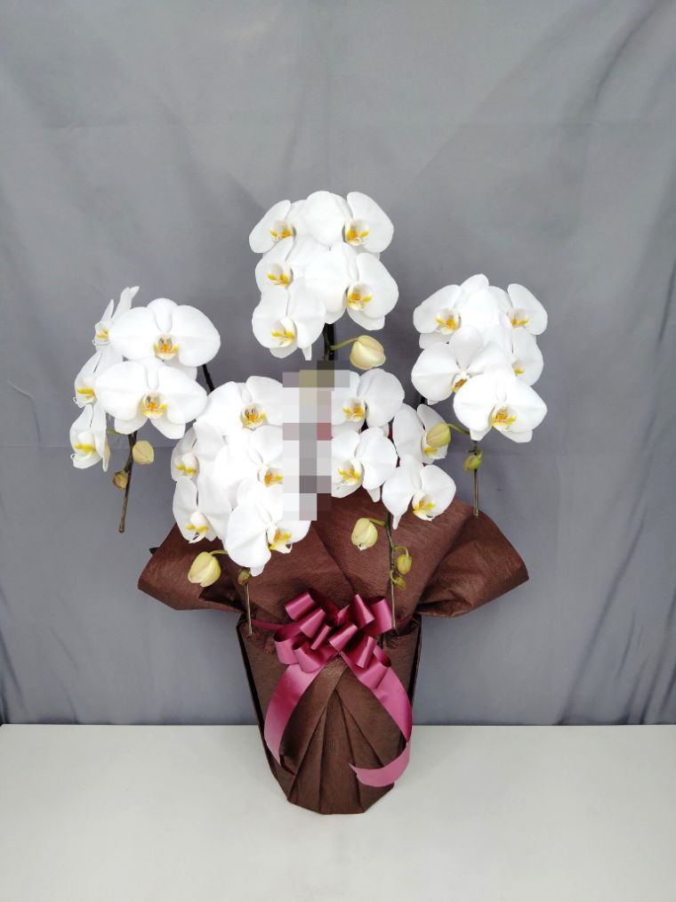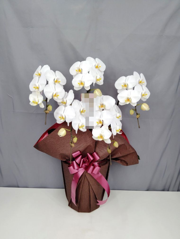 胡蝶蘭の実際にお届けした写真です。花秘書では発送前に写真をメールで送信致しますので安心して大切な顧客や取引様へのギフトにご利用頂けます。