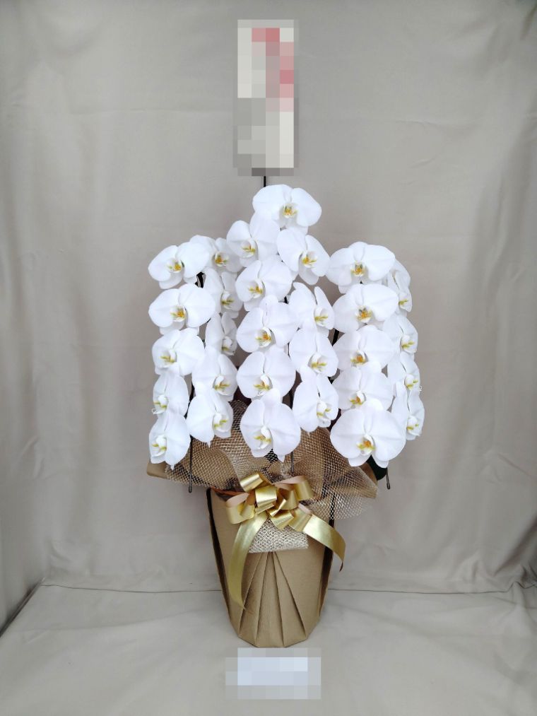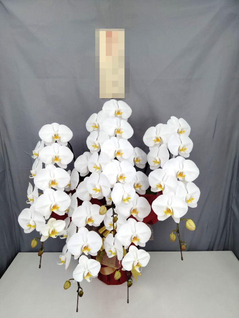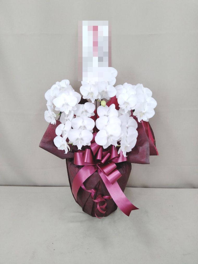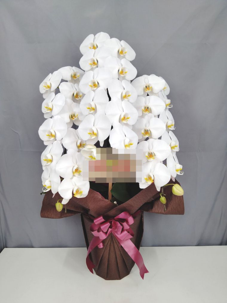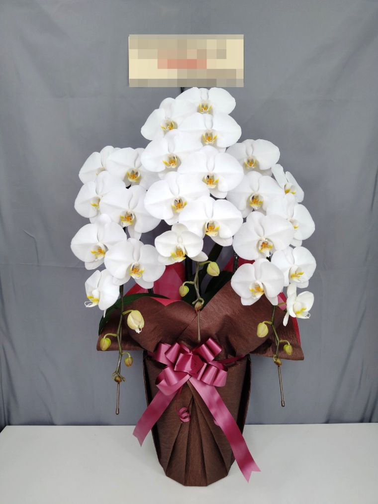 胡蝶蘭の実際にお届けした写真です。花秘書では発送前に写真をメールで送信致しますので安心して大切な顧客や取引様へのギフトにご利用頂けます。