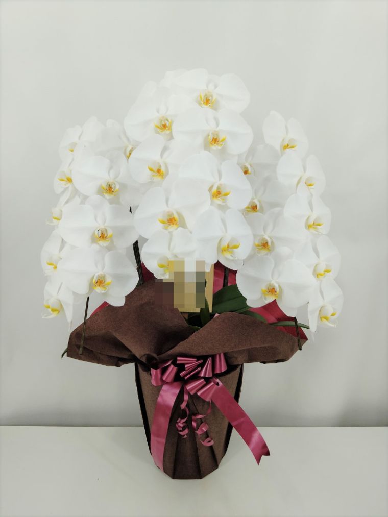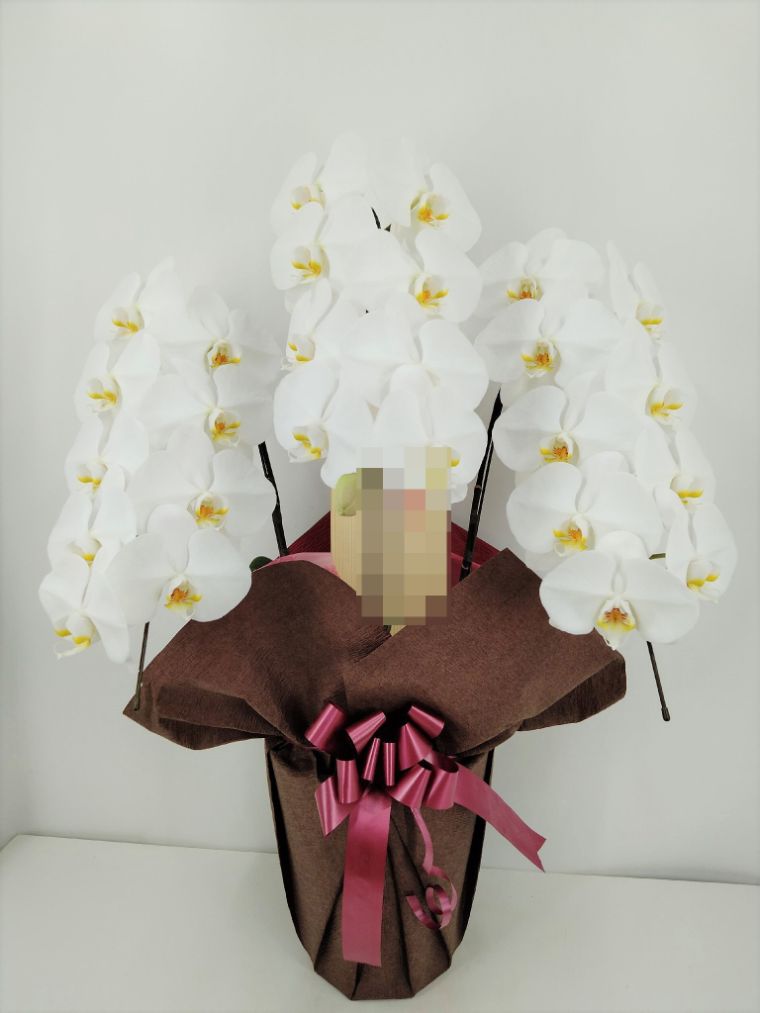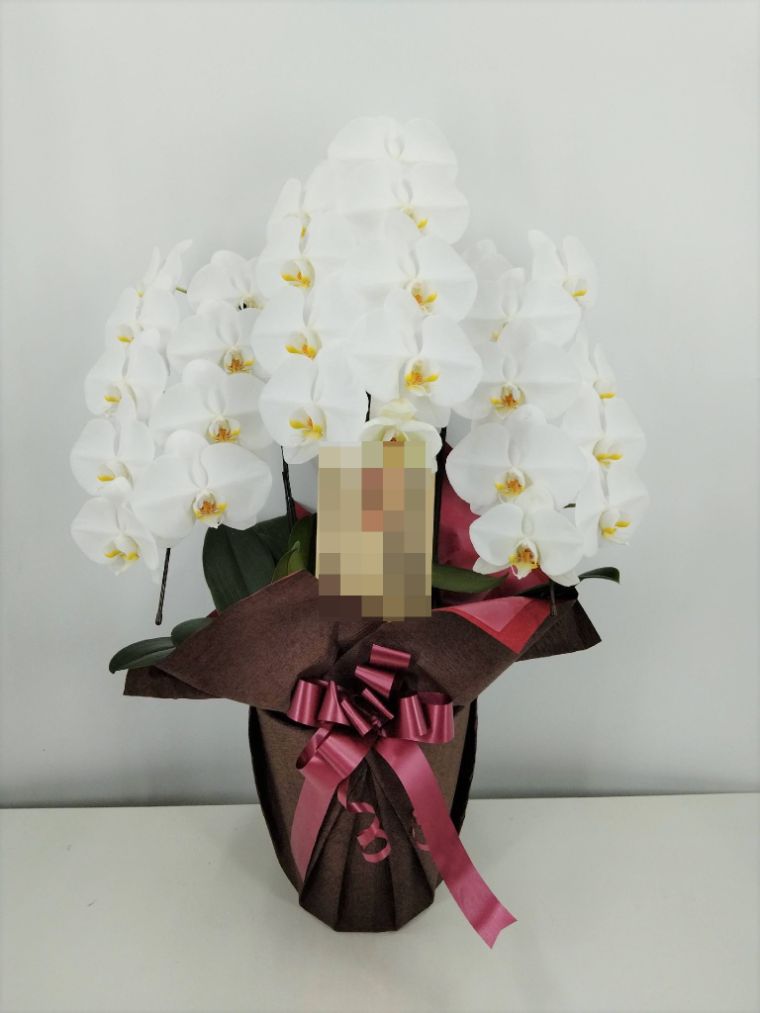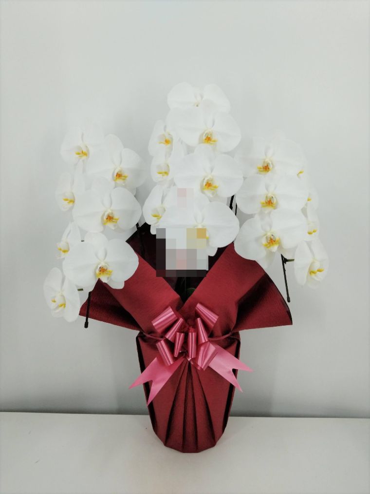胡蝶蘭の実際にお届けした写真です。花秘書では発送前に写真をメールで送信致しますので安心して大切な顧客や取引様へのギフトにご利用頂けます。