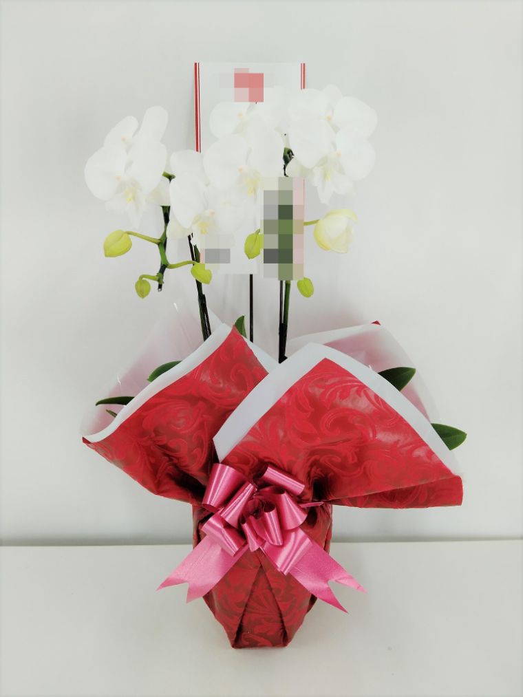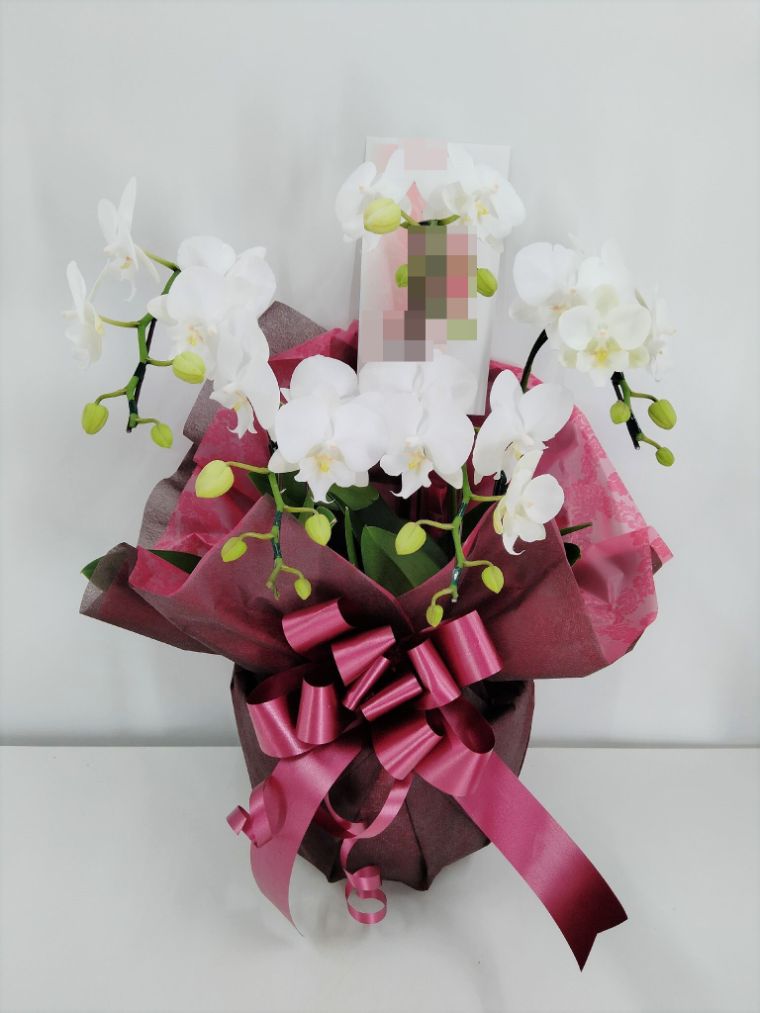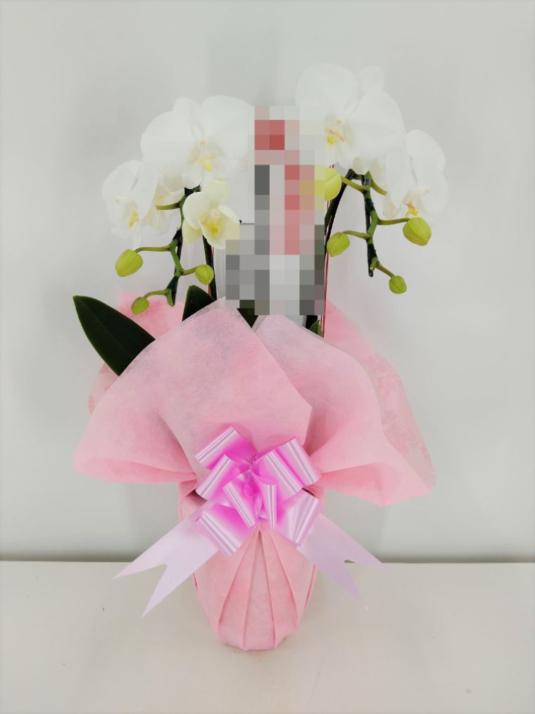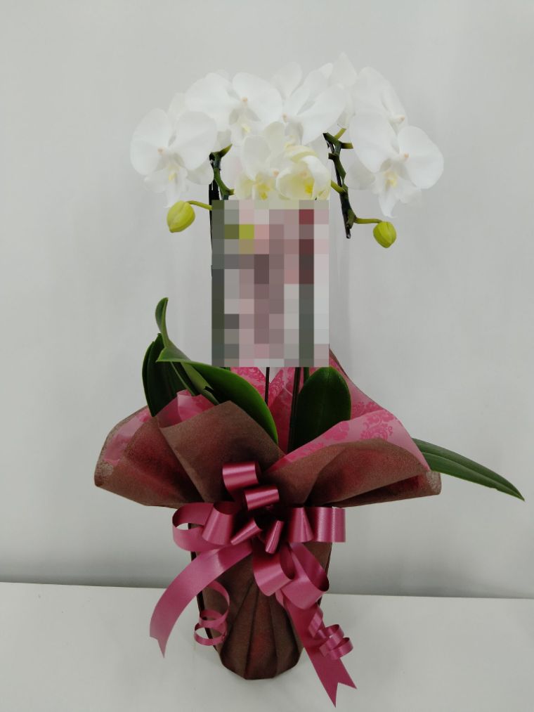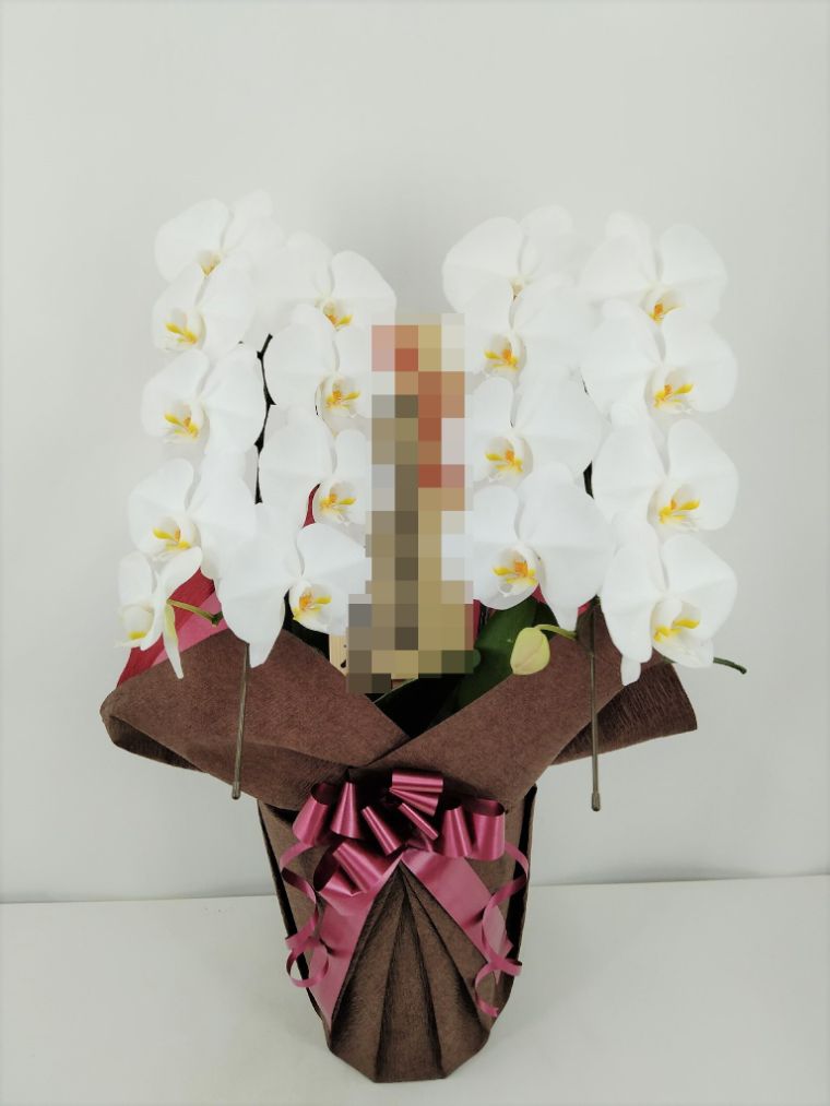胡蝶蘭の実際にお届けした写真です。花秘書では発送前に写真をメールで送信致しますので安心して大切な顧客や取引様へのギフトにご利用頂けます。