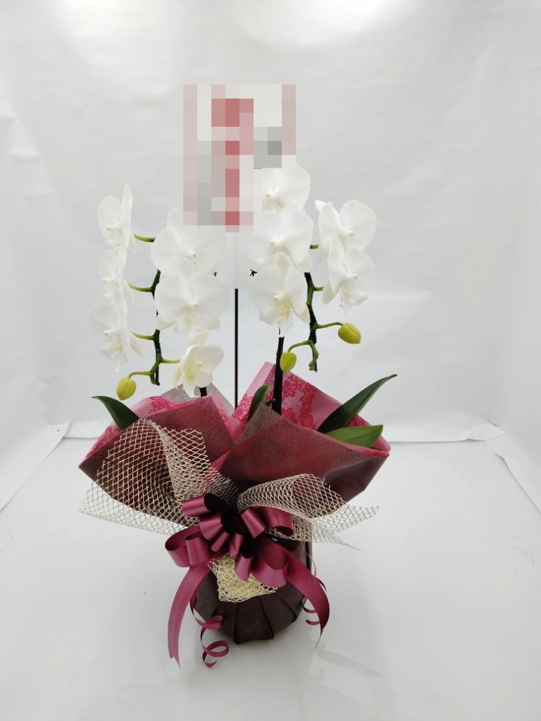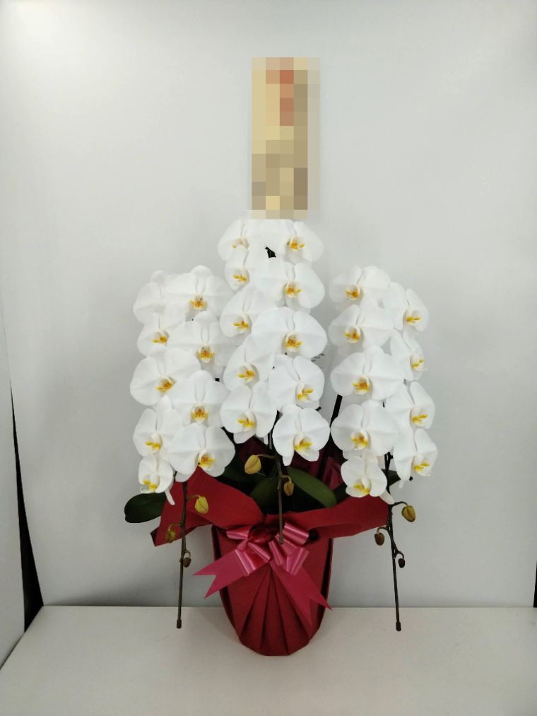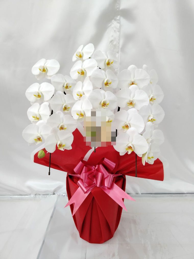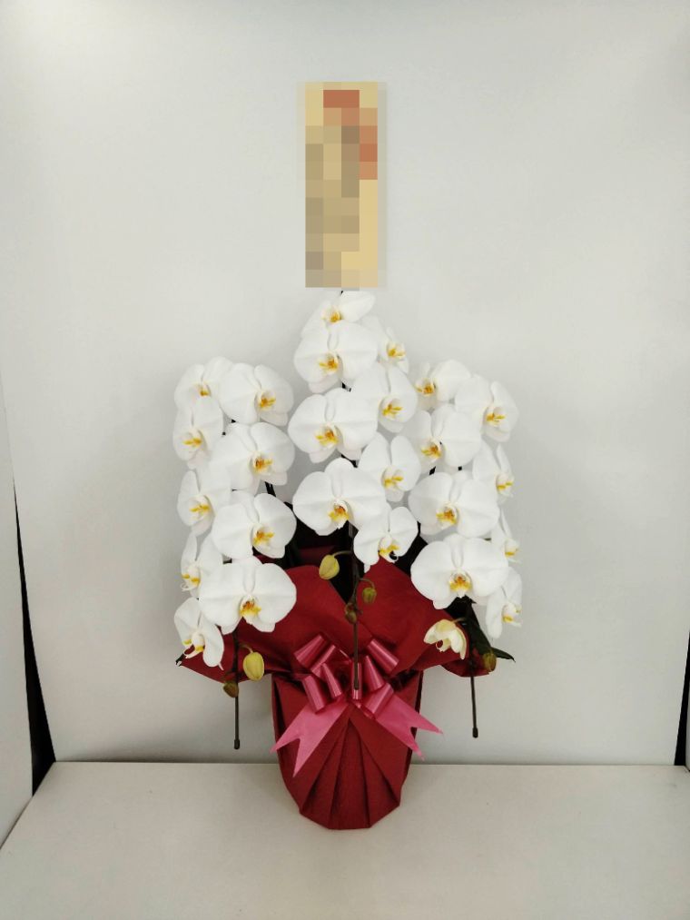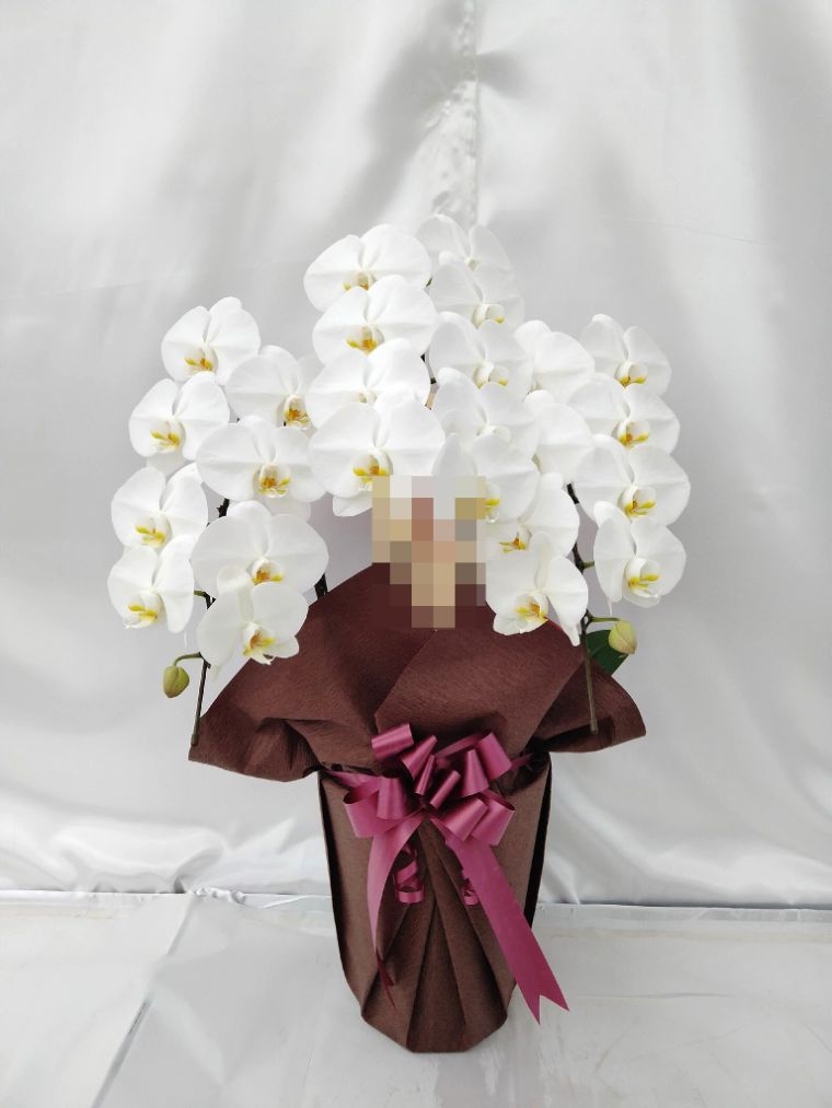 胡蝶蘭の実際にお届けした写真です。花秘書では発送前に写真をメールで送信致しますので安心して大切な顧客や取引様へのギフトにご利用頂けます。