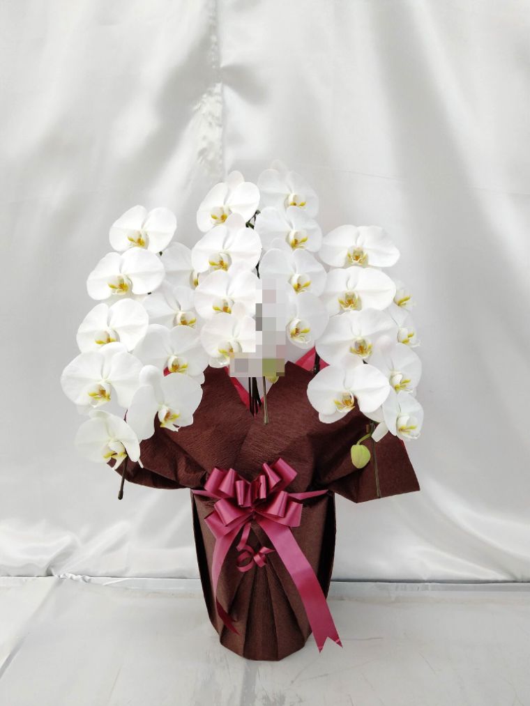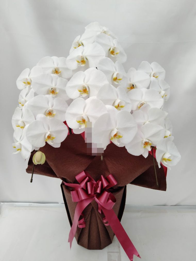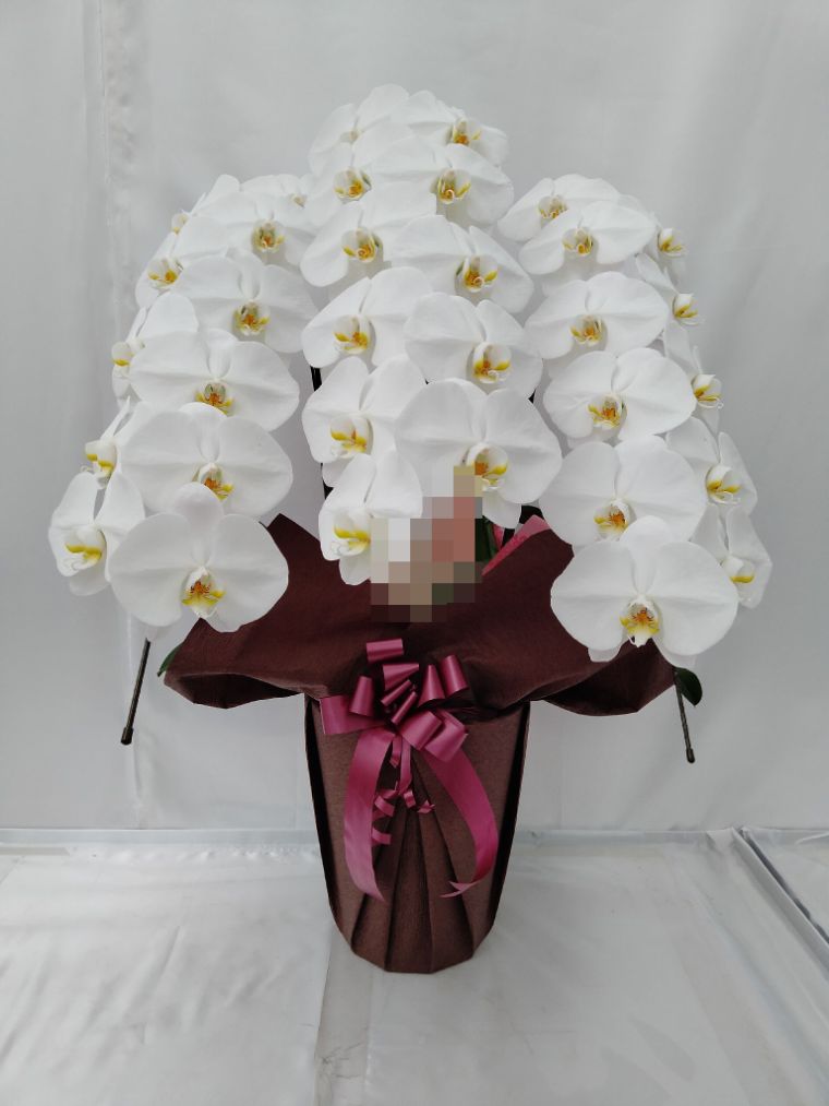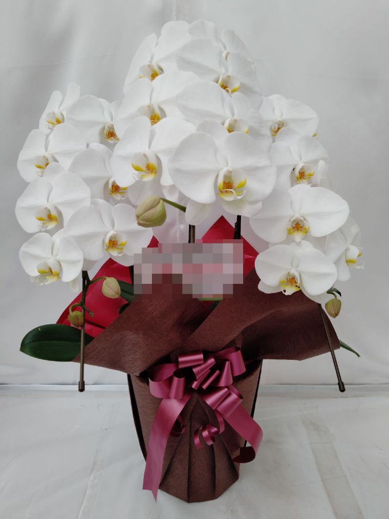 胡蝶蘭の実際にお届けした写真です。花秘書では発送前に写真をメールで送信致しますので安心して大切な顧客や取引様へのギフトにご利用頂けます。