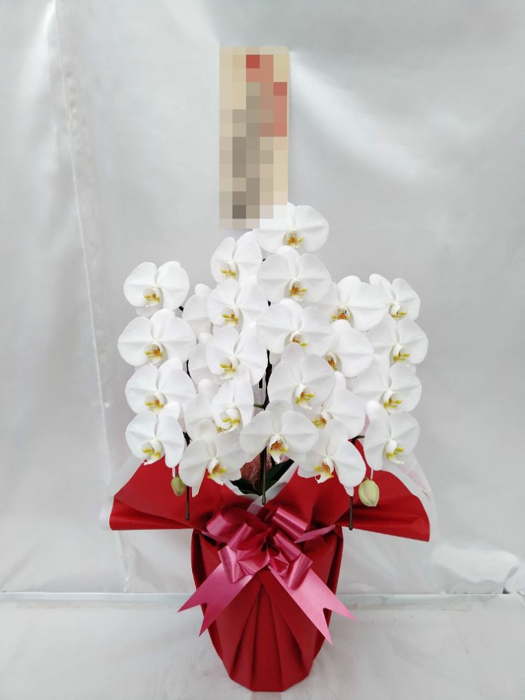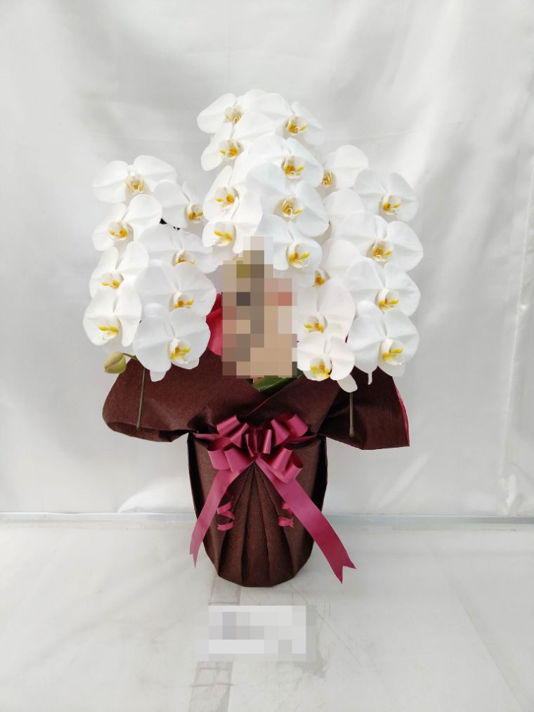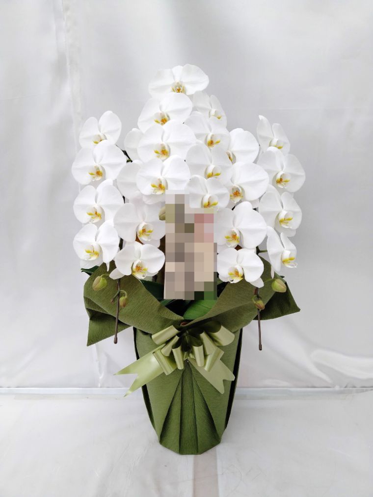 胡蝶蘭の実際にお届けした写真です。花秘書では発送前に写真をメールで送信致しますので安心して大切な顧客や取引様へのギフトにご利用頂けます。