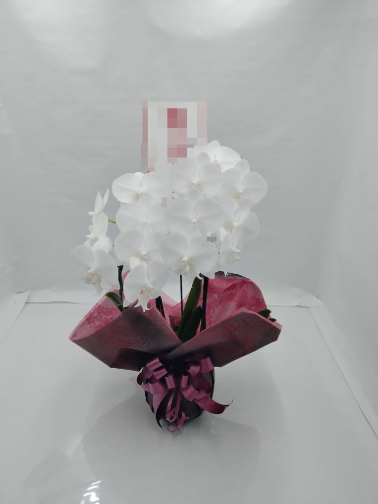 胡蝶蘭の実際にお届けした写真です。花秘書では発送前に写真をメールで送信致しますので安心して大切な顧客や取引様へのギフトにご利用頂けます。