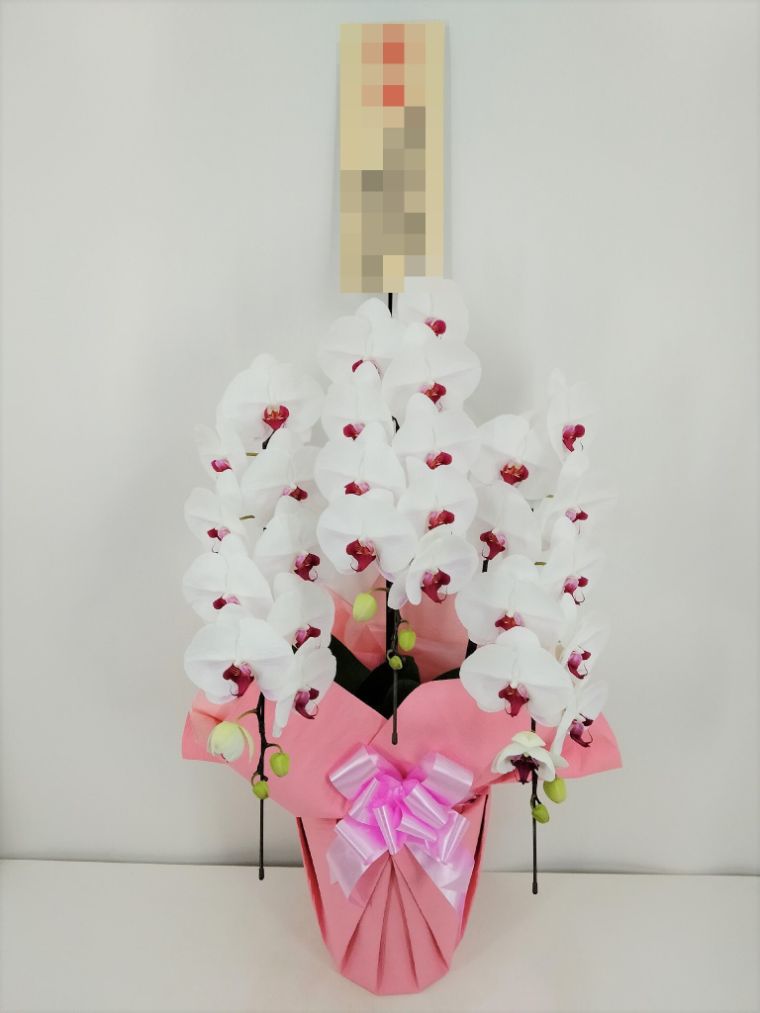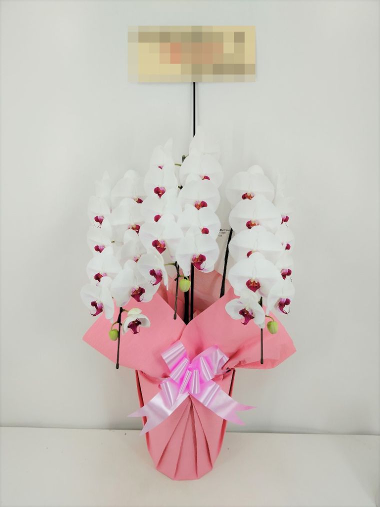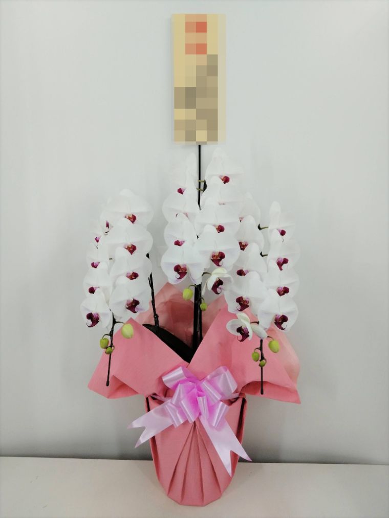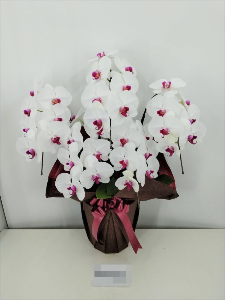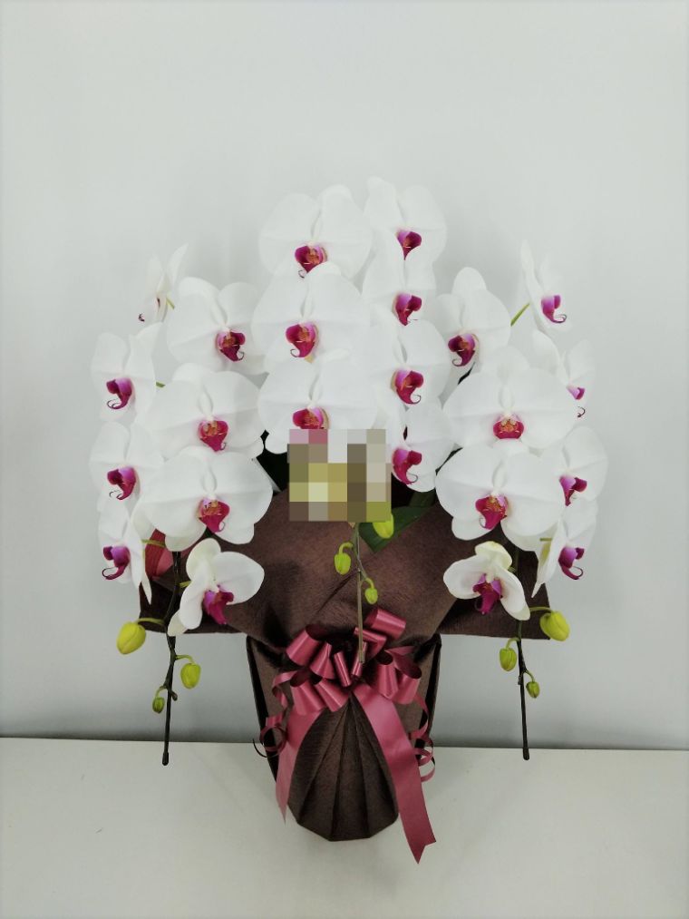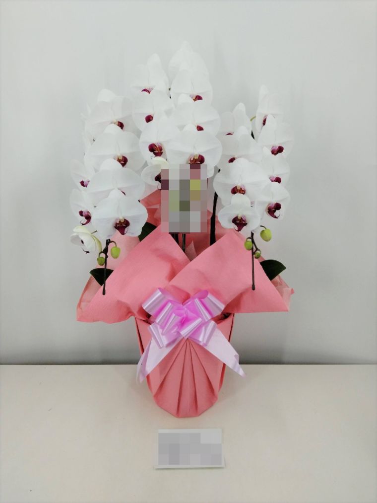 胡蝶蘭の実際にお届けした写真です。花秘書では発送前に写真をメールで送信致しますので安心して大切な顧客や取引様へのギフトにご利用頂けます。