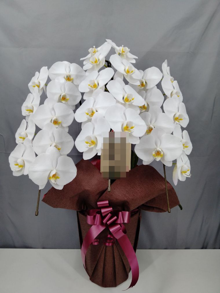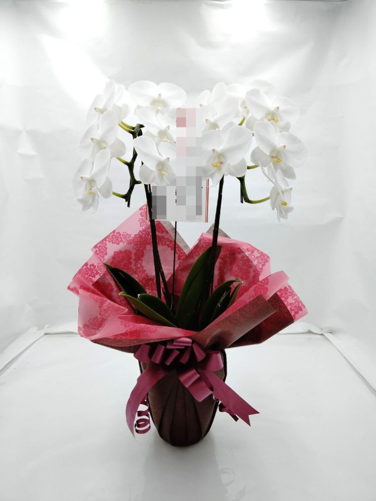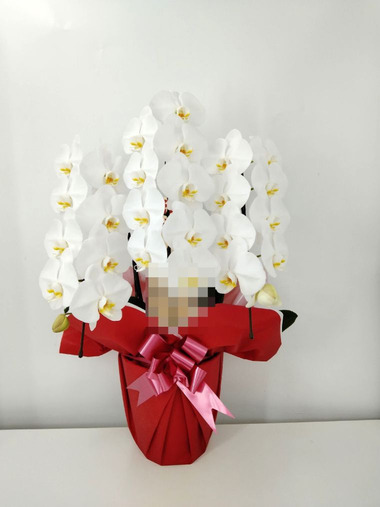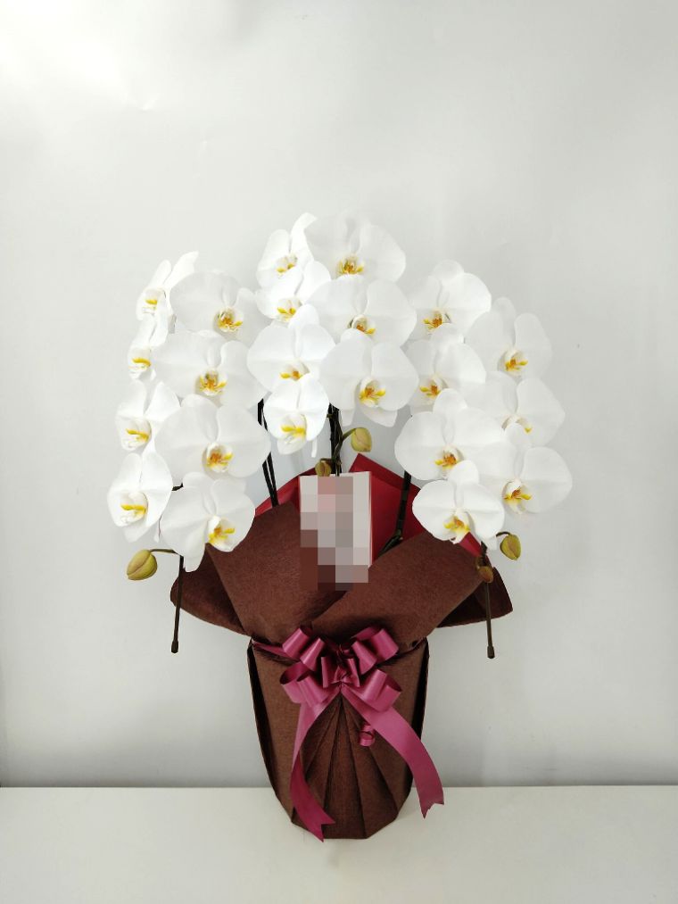 胡蝶蘭の実際にお届けした写真です。花秘書では発送前に写真をメールで送信致しますので安心して大切な顧客や取引様へのギフトにご利用頂けます。