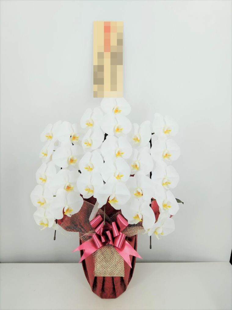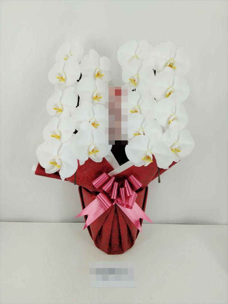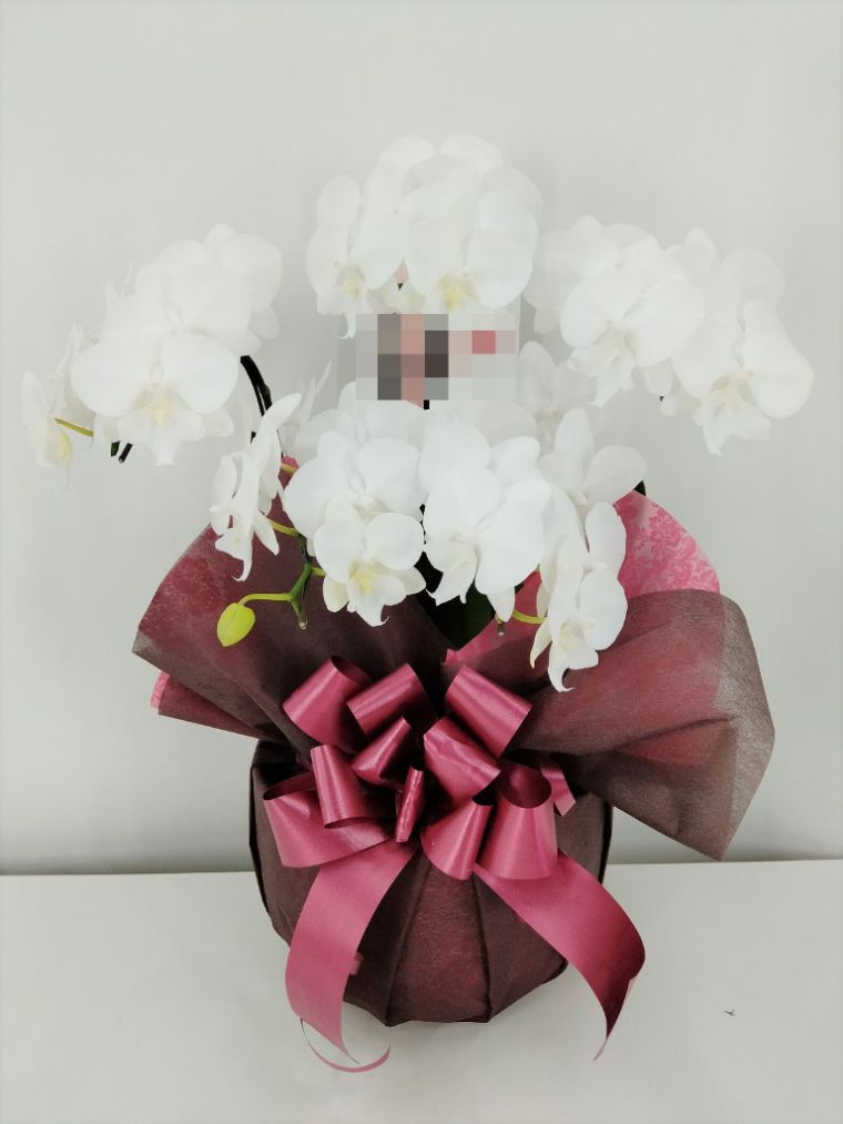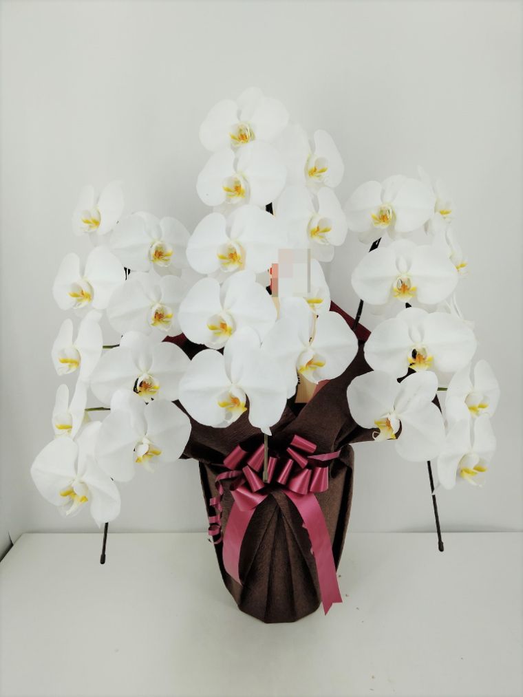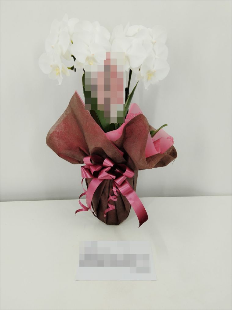 胡蝶蘭の実際にお届けした写真です。花秘書では発送前に写真をメールで送信致しますので安心して大切な顧客や取引様へのギフトにご利用頂けます。