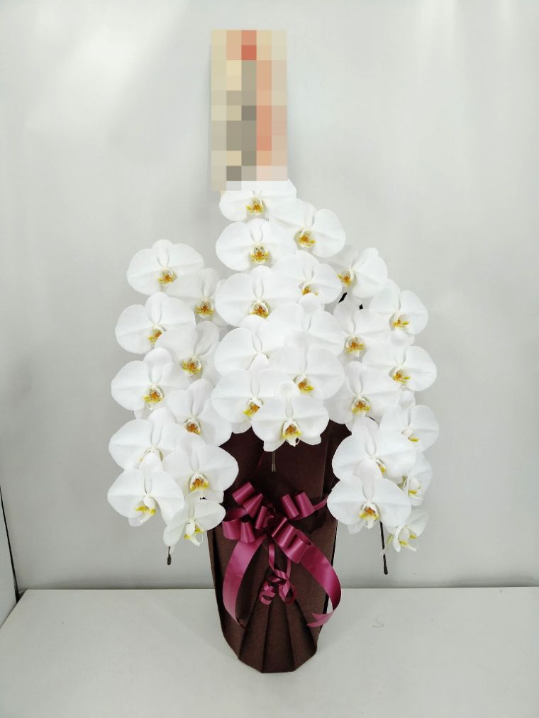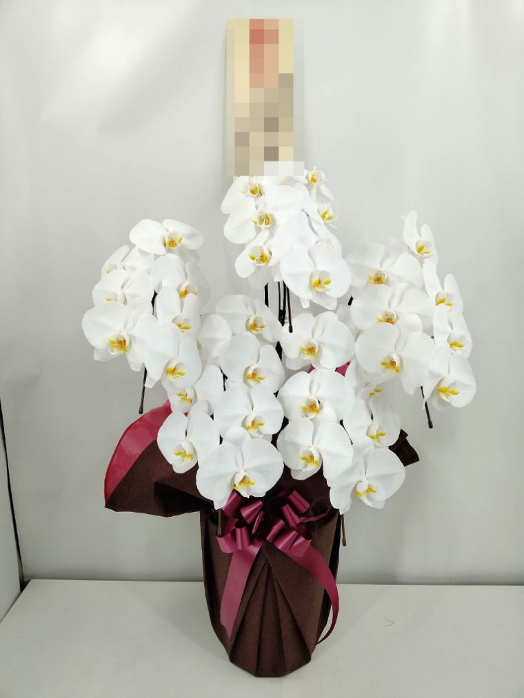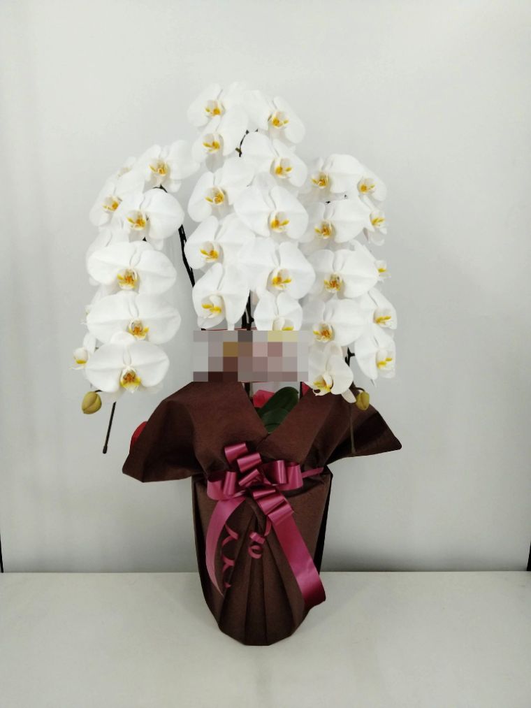 胡蝶蘭の実際にお届けした写真です。花秘書では発送前に写真をメールで送信致しますので安心して大切な顧客や取引様へのギフトにご利用頂けます。