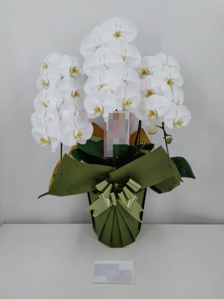 胡蝶蘭の実際にお届けした写真です。花秘書では発送前に写真をメールで送信致しますので安心して大切な顧客や取引様へのギフトにご利用頂けます。
