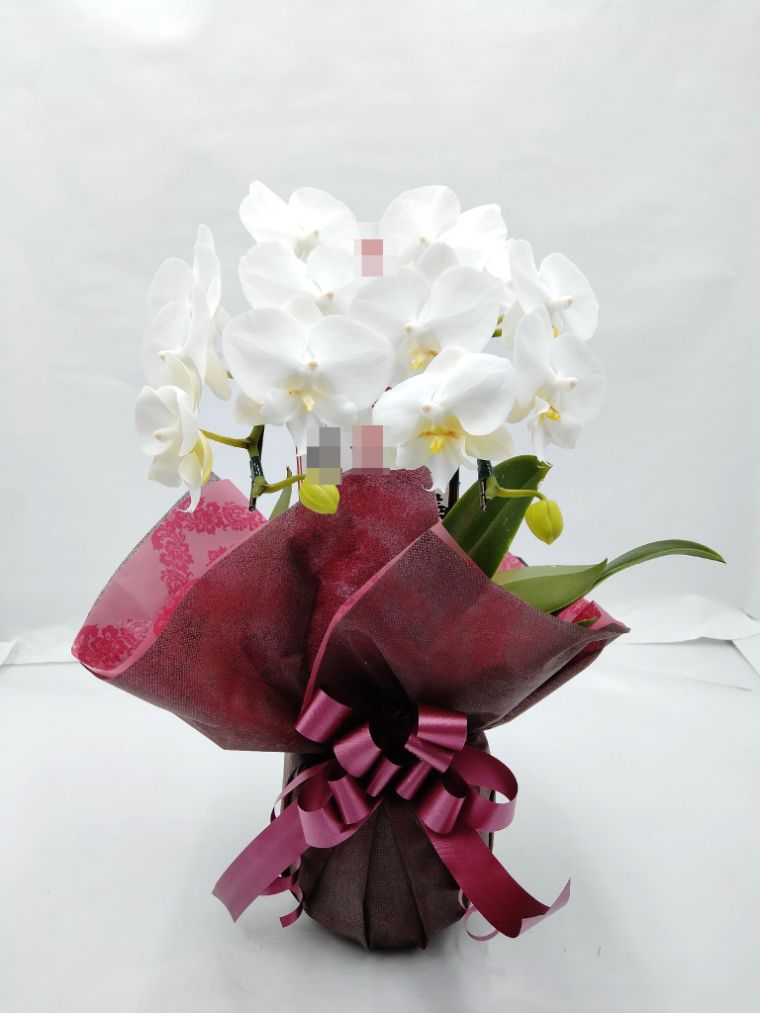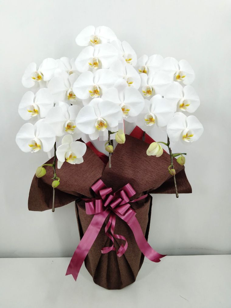 胡蝶蘭の実際にお届けした写真です。花秘書では発送前に写真をメールで送信致しますので安心して大切な顧客や取引様へのギフトにご利用頂けます。